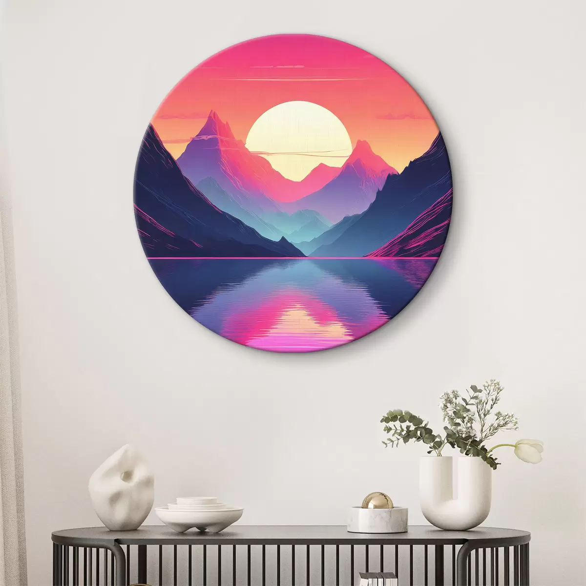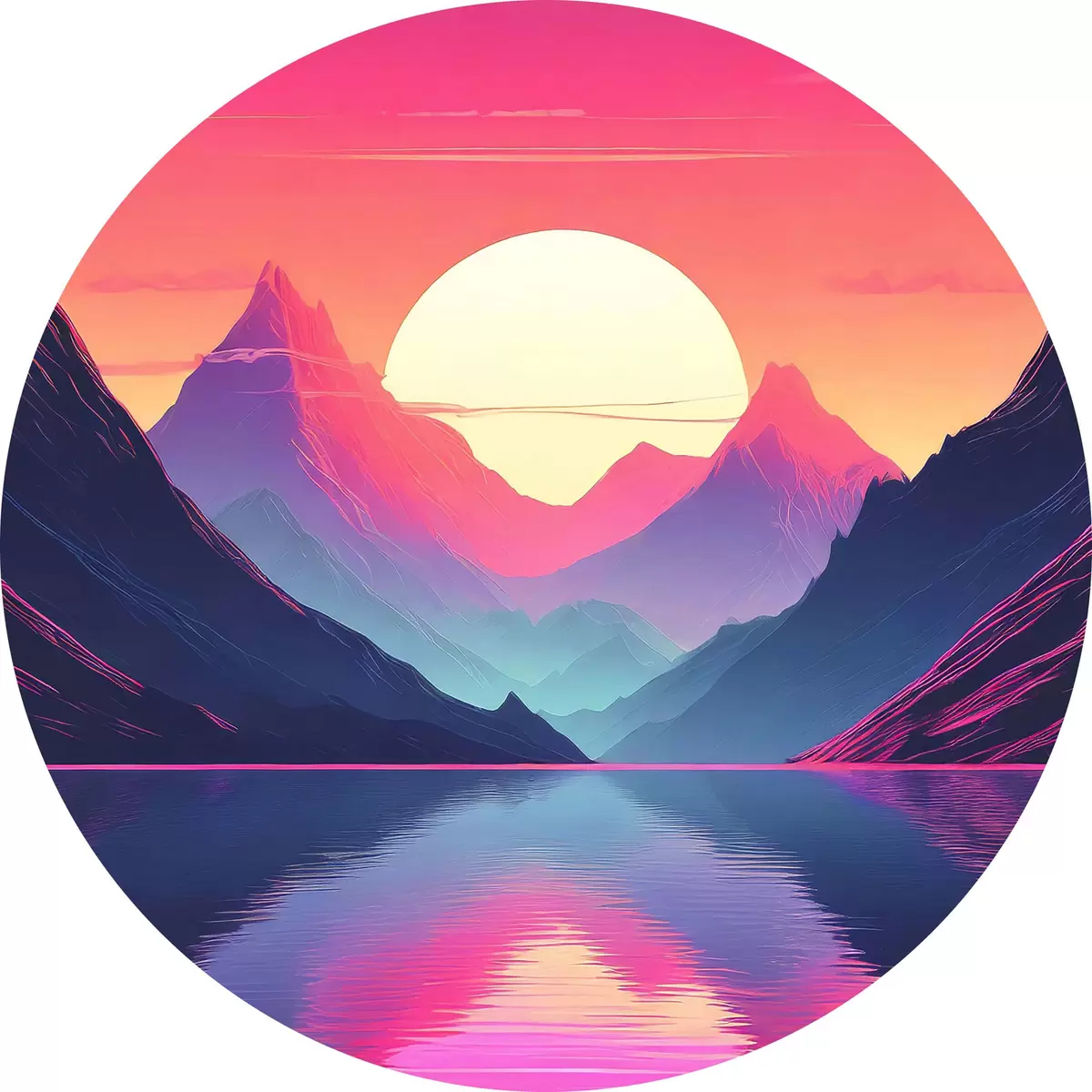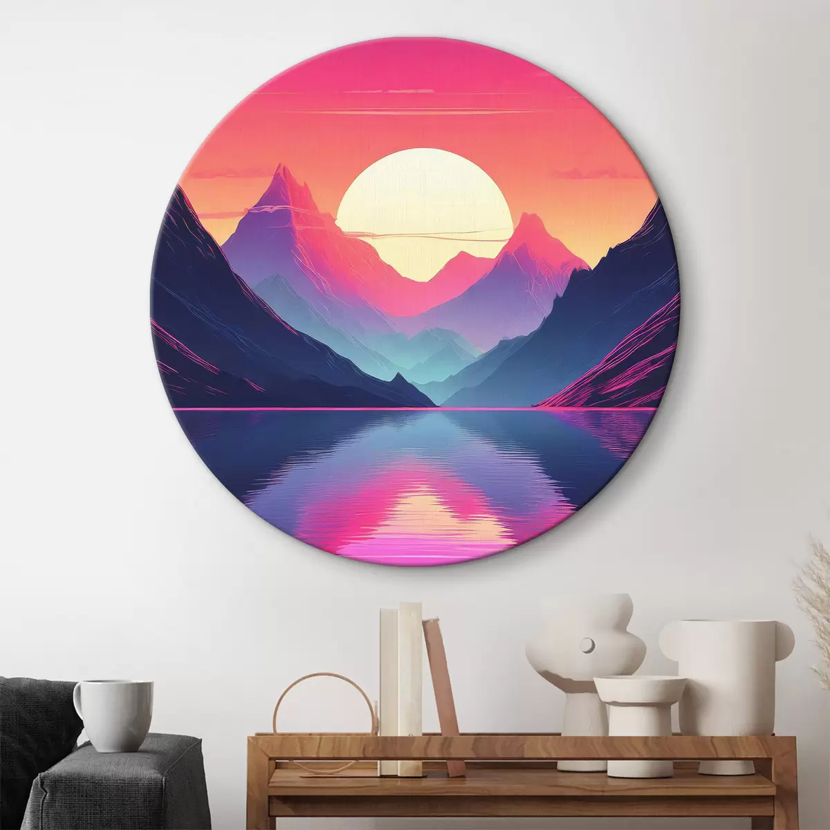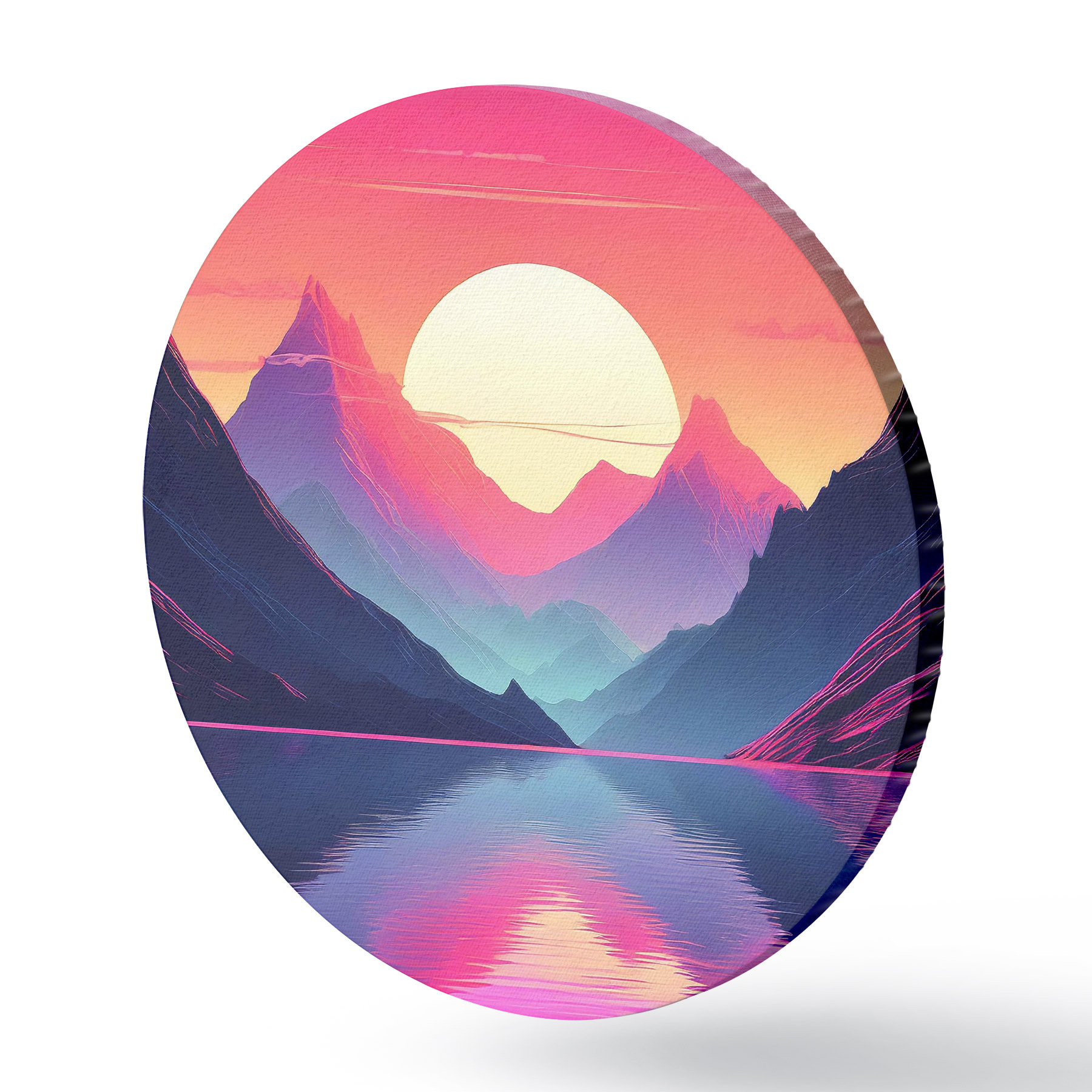Tableaux ronds Montagnes majestueuses au coucher du soleil r38002