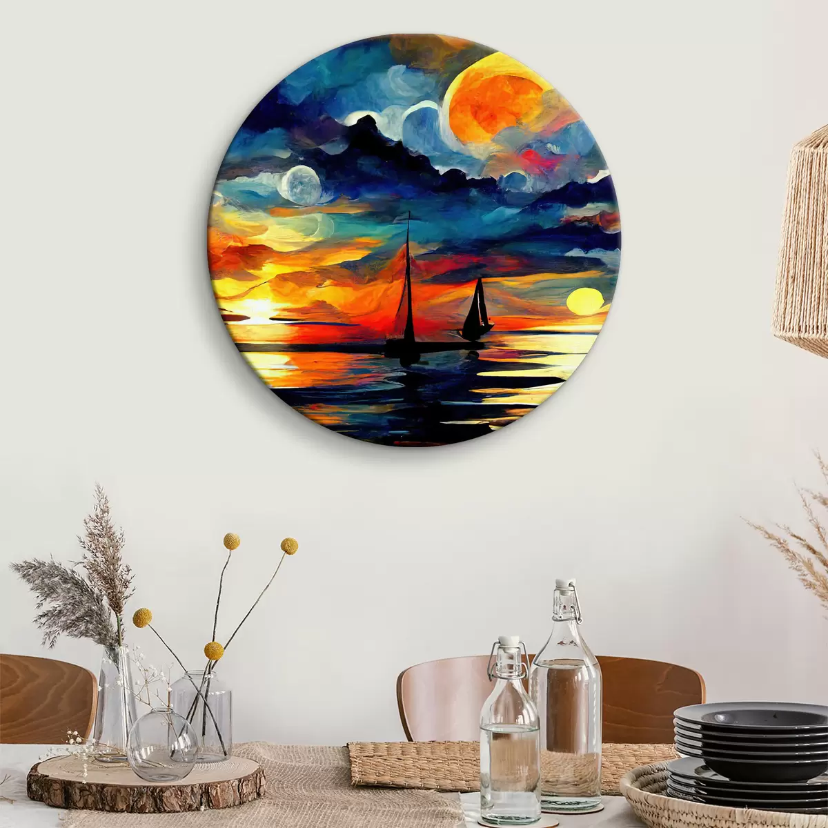 Tableaux ronds Coucher de soleil lumineux r38053