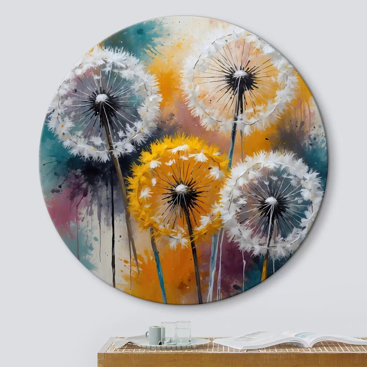Tableaux ronds Pissenlits sur fond coloré r38060