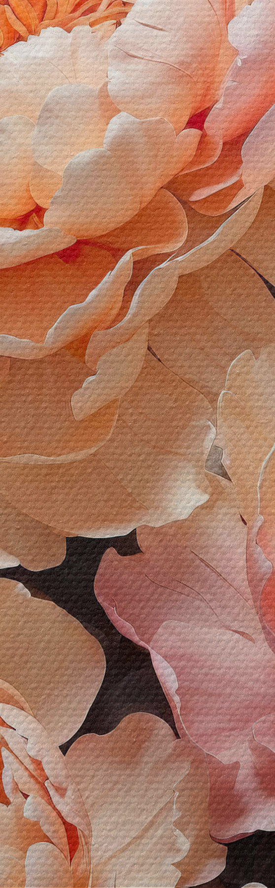 Trois types de matériaux peuvent être commandés : Economic Canvas - matériau dense et durable pour l'impression numérique, identique à la toile de peintre, surface imperméable, reproduction réaliste des détails, matériau à grain moyen. Premium Canvas - la texture ressemble à celle d'une toile de peintre (petits fils entrelacés). Reproduction douce et détaillée de l'image sur une surface mate. Eco-Premium - tissu 100 % coton de haute qualité. Grâce aux fibres naturelles de coton, le matériau est durable et résistant à l'usure. Excellente reproduction des couleurs et des détails.