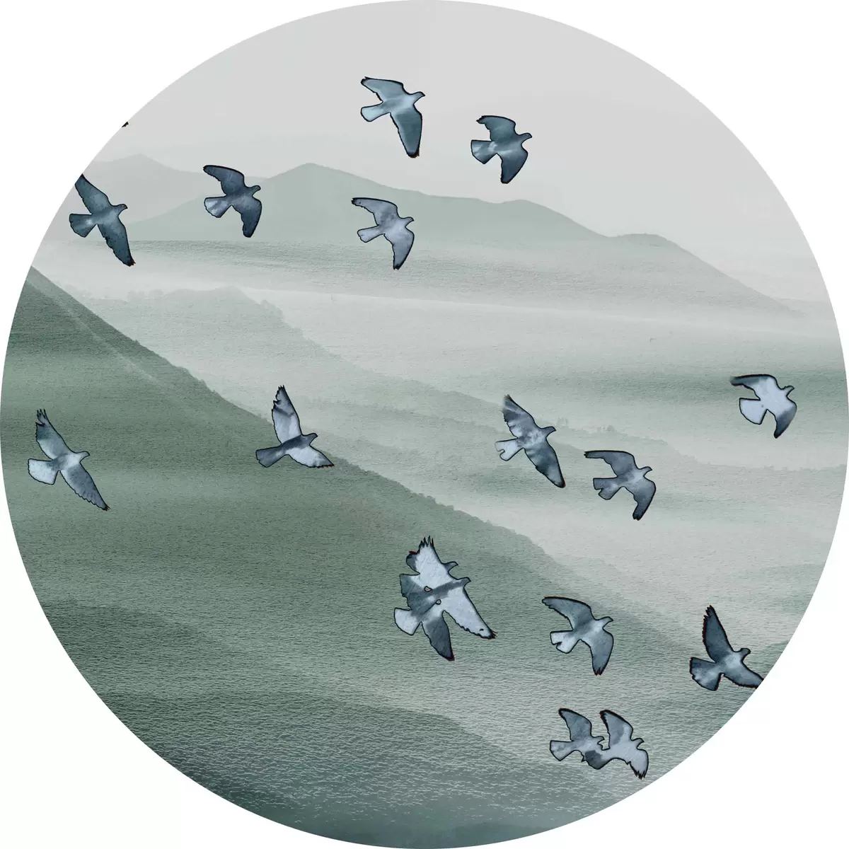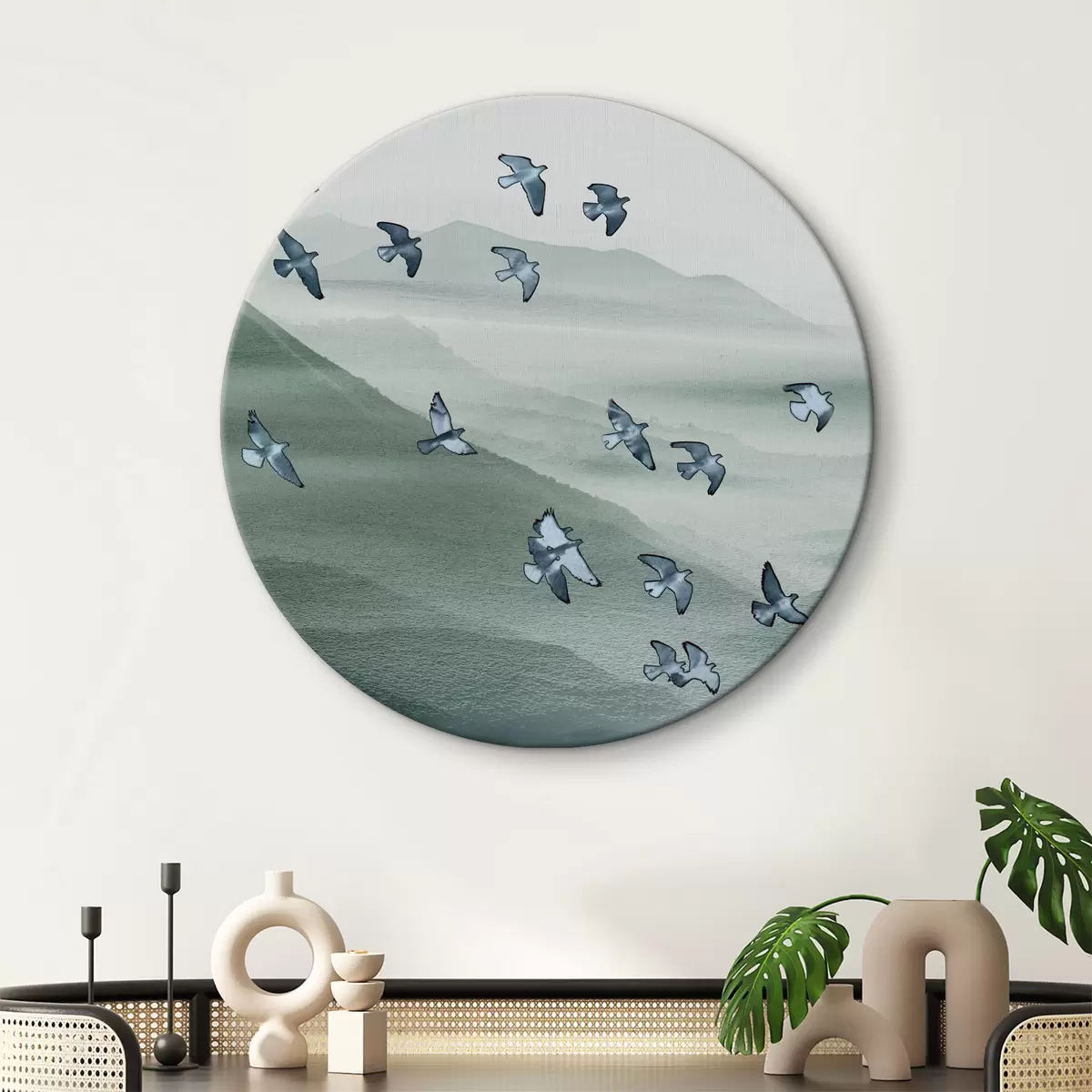 Tableaux ronds Une volée d'oiseaux survolant les montagnes r38069
