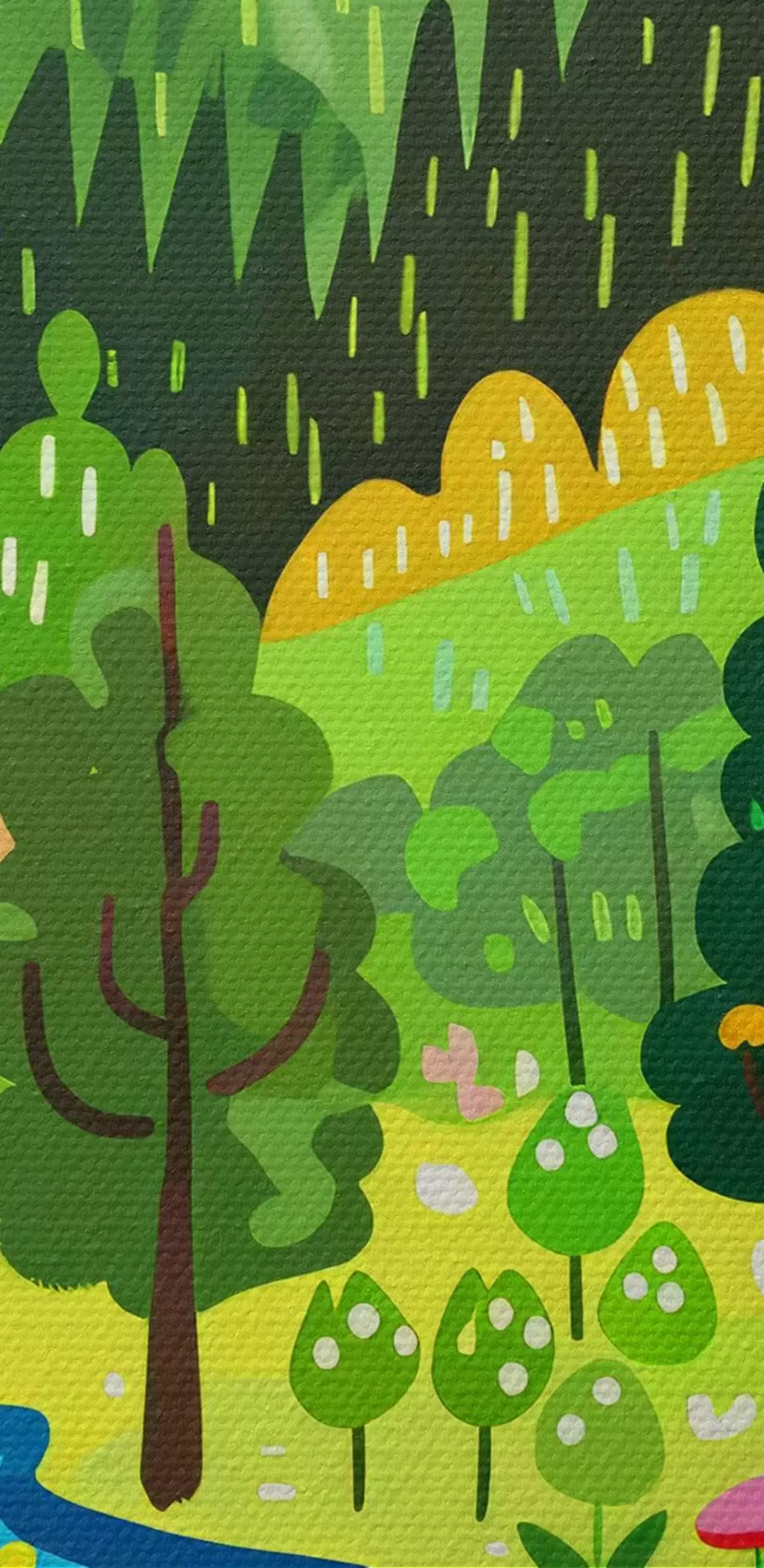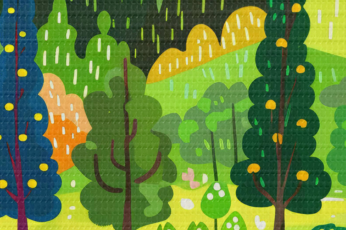 Image Paysage de dessin animé avec des arbres et des fleurs Nr r38140