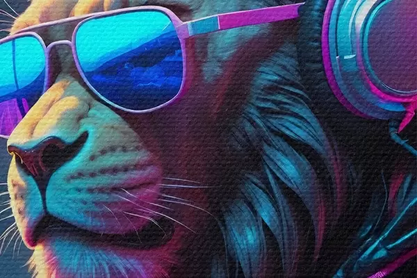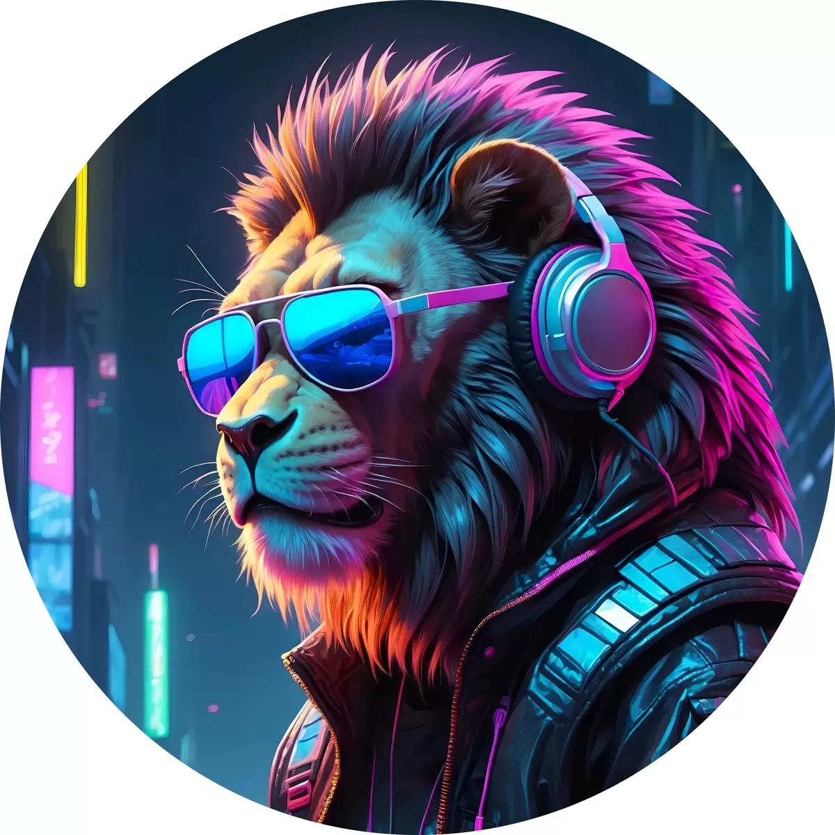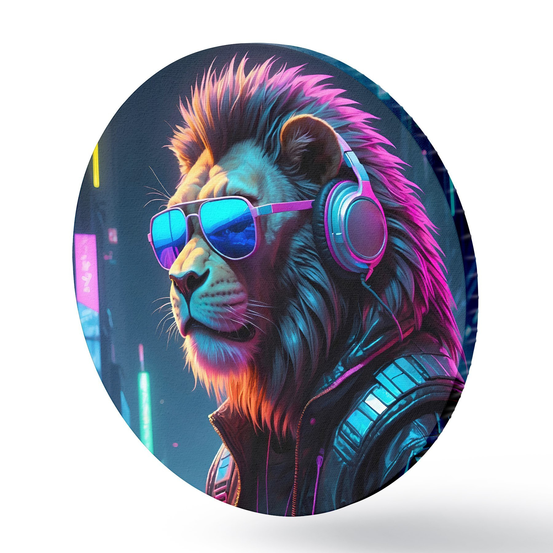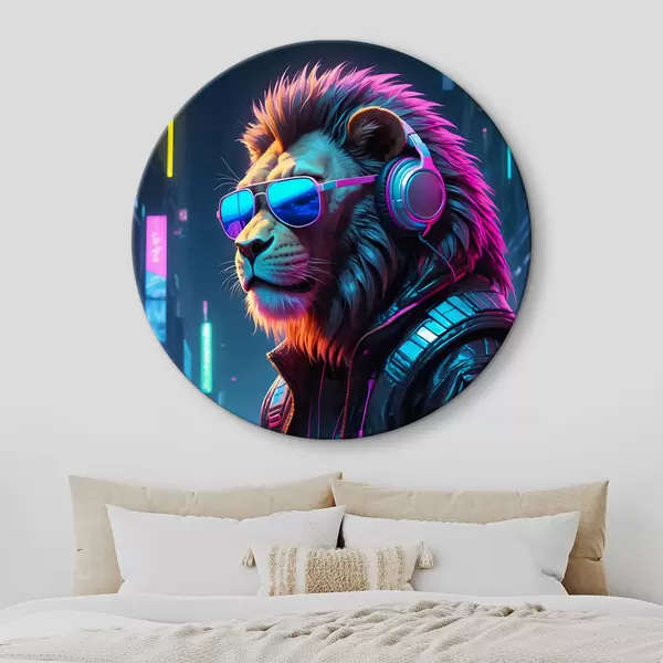 Tableaux ronds Lion sur fond de ville lumineuse r38169