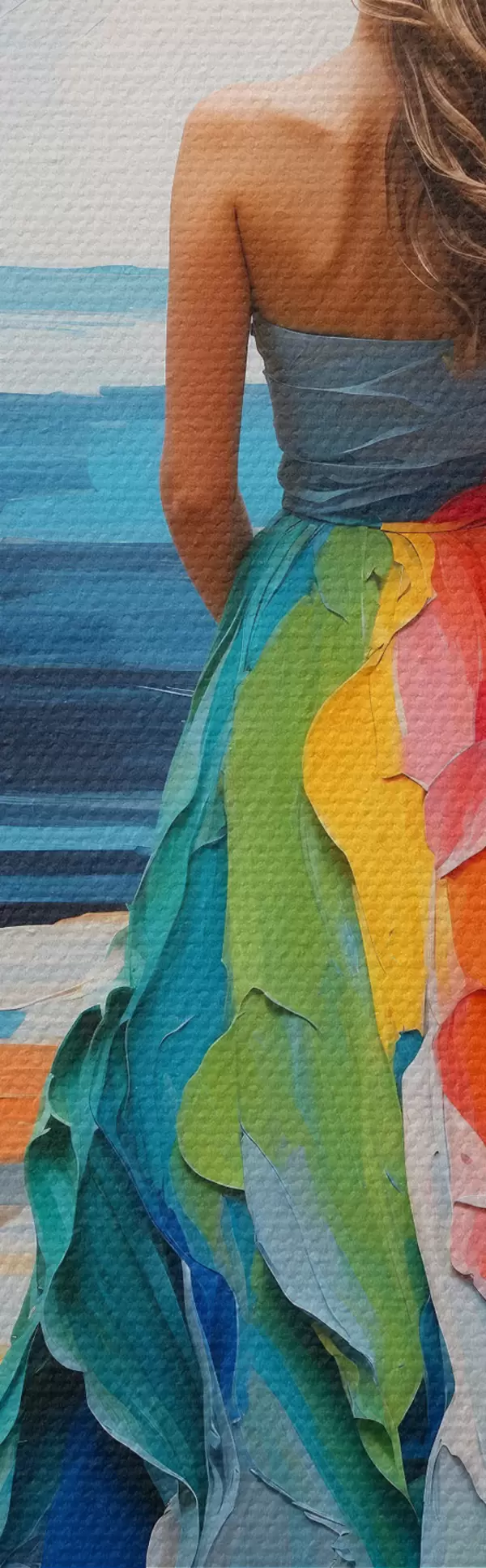 Trois types de matériaux peuvent être commandés : Economic Canvas - matériau dense et durable pour l'impression numérique, identique à la toile de peintre, surface imperméable, reproduction réaliste des détails, matériau à grain moyen. Premium Canvas - la texture ressemble à celle d'une toile de peintre (petits fils entrelacés). Reproduction douce et détaillée de l'image sur une surface mate. Eco-Premium - tissu 100 % coton de haute qualité. Grâce aux fibres naturelles de coton, le matériau est durable et résistant à l'usure. Excellente reproduction des couleurs et des détails.