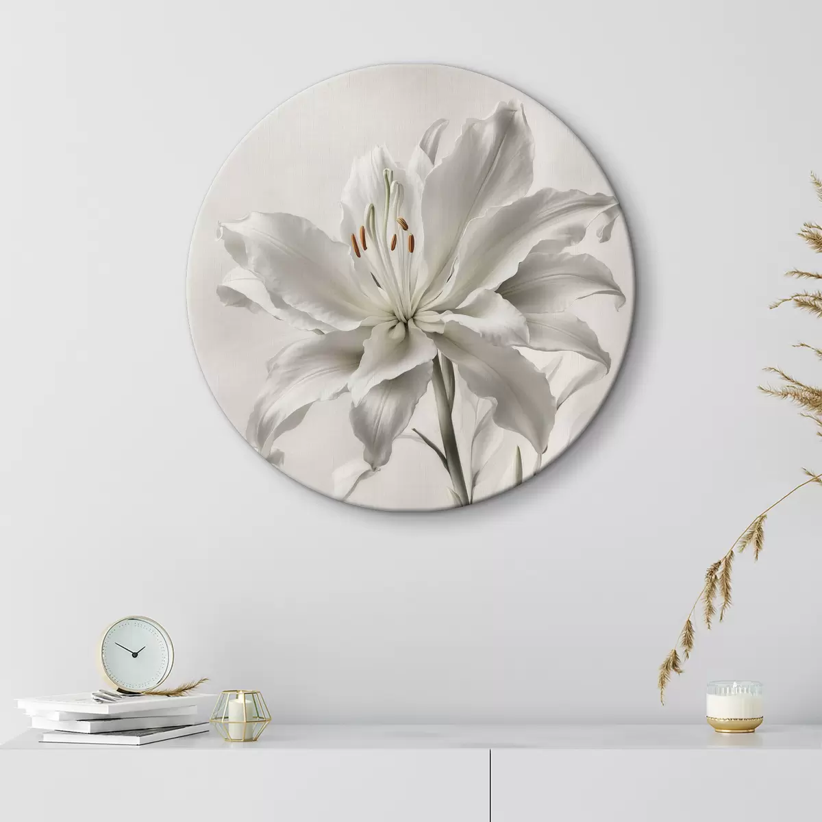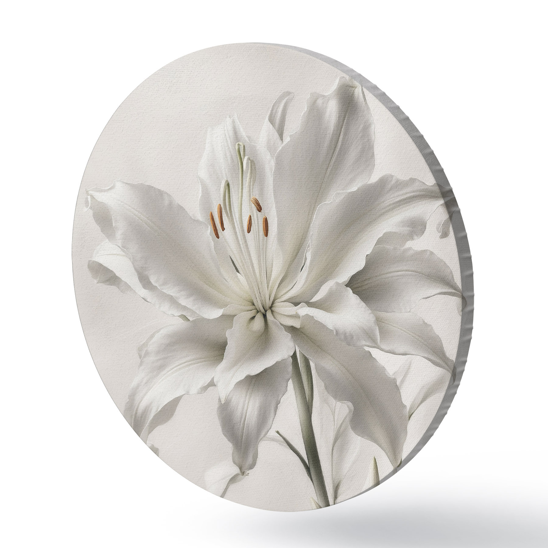 Tableaux ronds Fleur blanche avec des feuilles vertes r38190