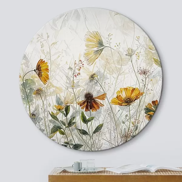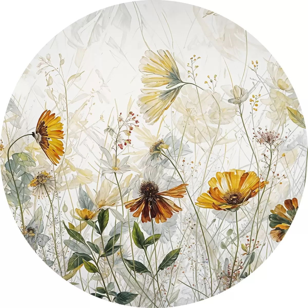Tableaux ronds Fleurs délicates de champ sur la peinture à l'huile de fond blanc r38197