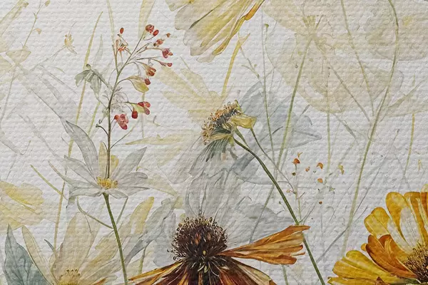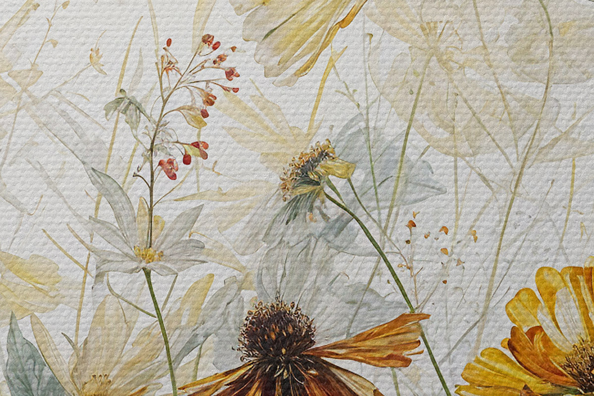Image Fleurs délicates de champ sur la peinture à l'huile de fond blanc Nr r38197