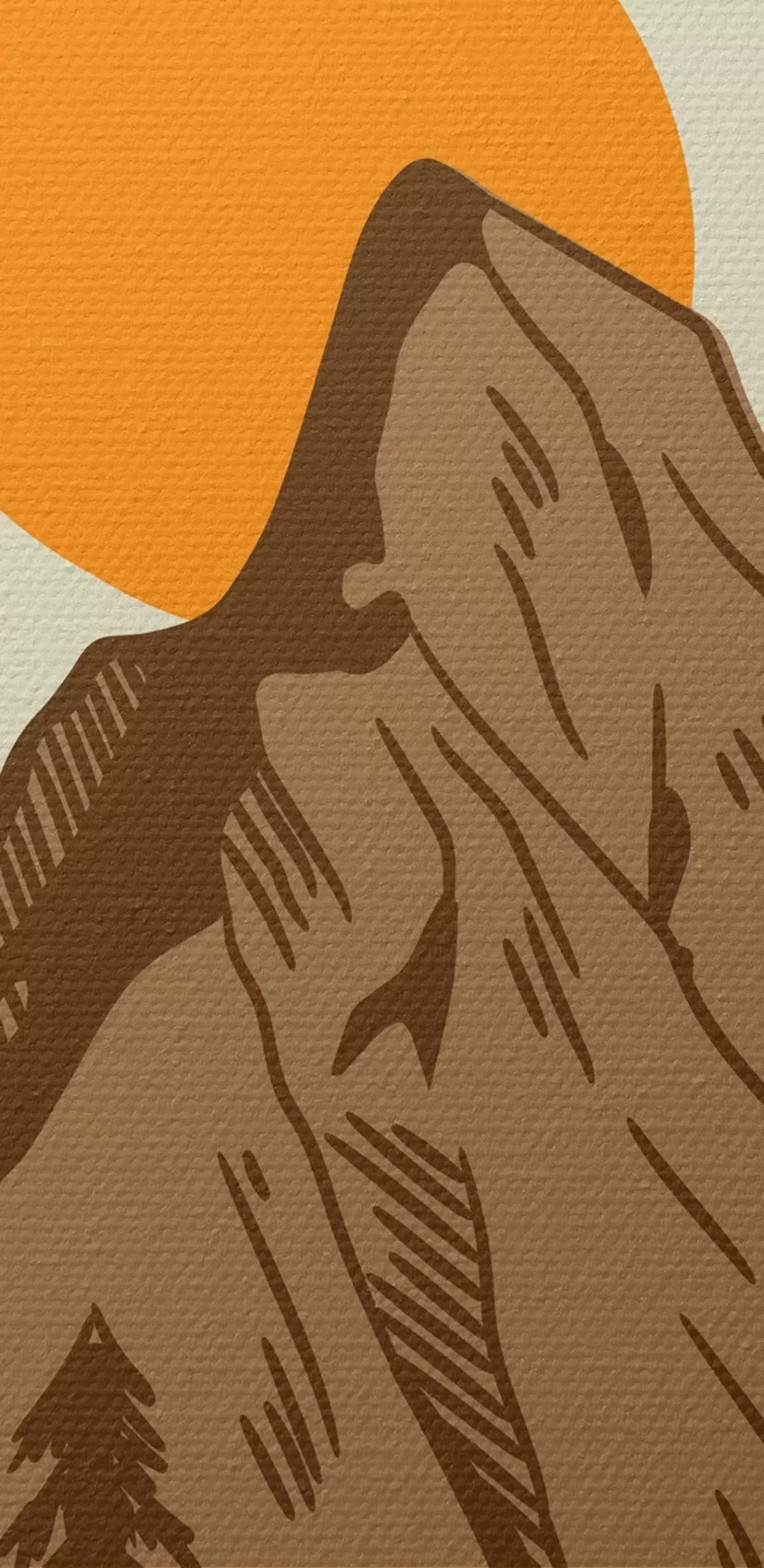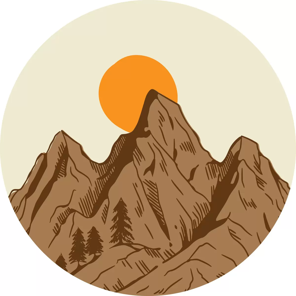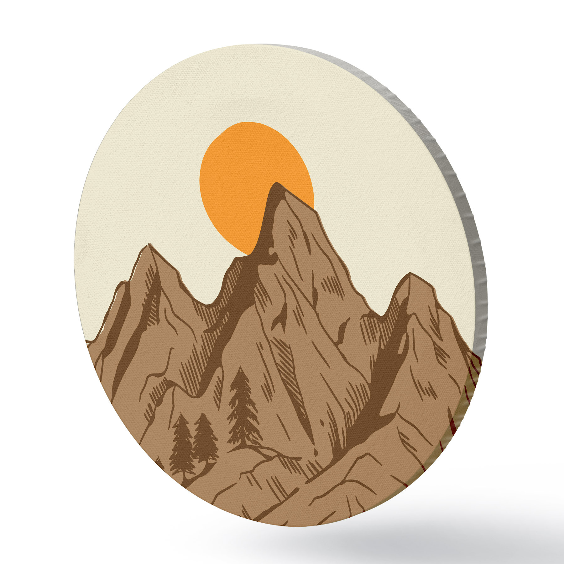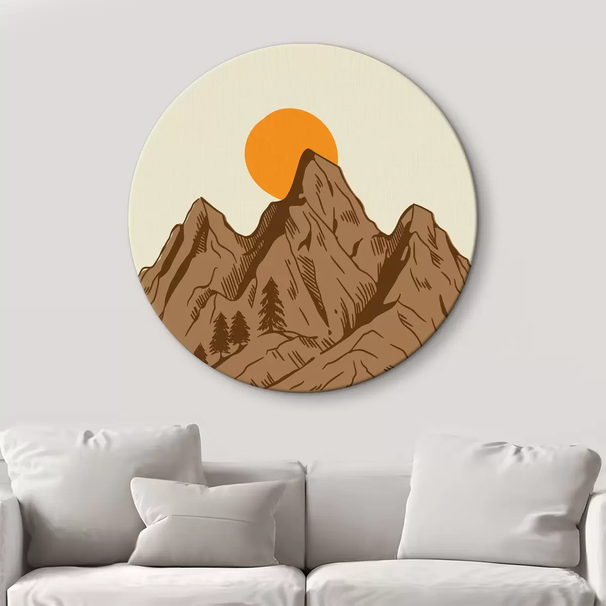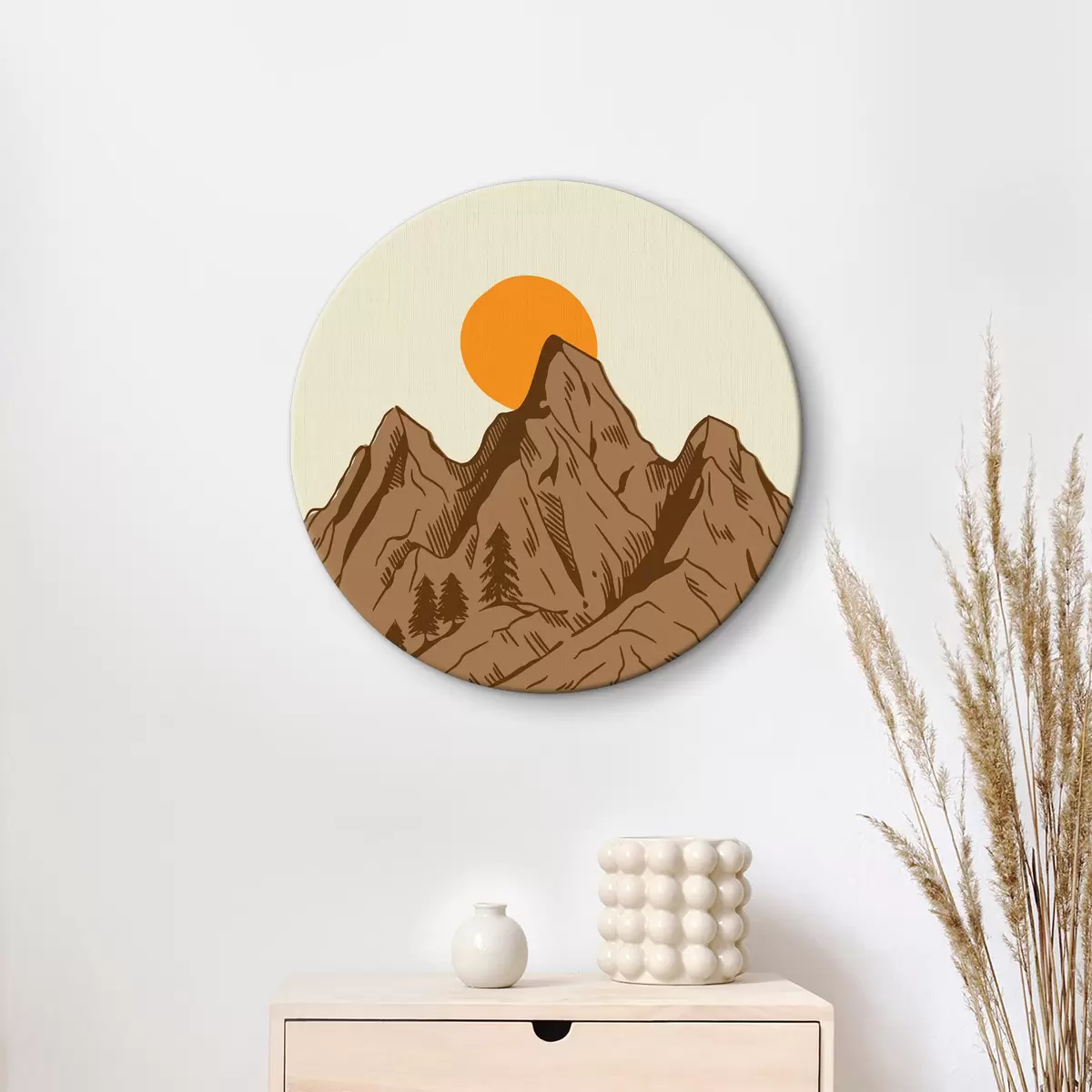 Tableaux ronds Montagne avec arbres et soleil r38228