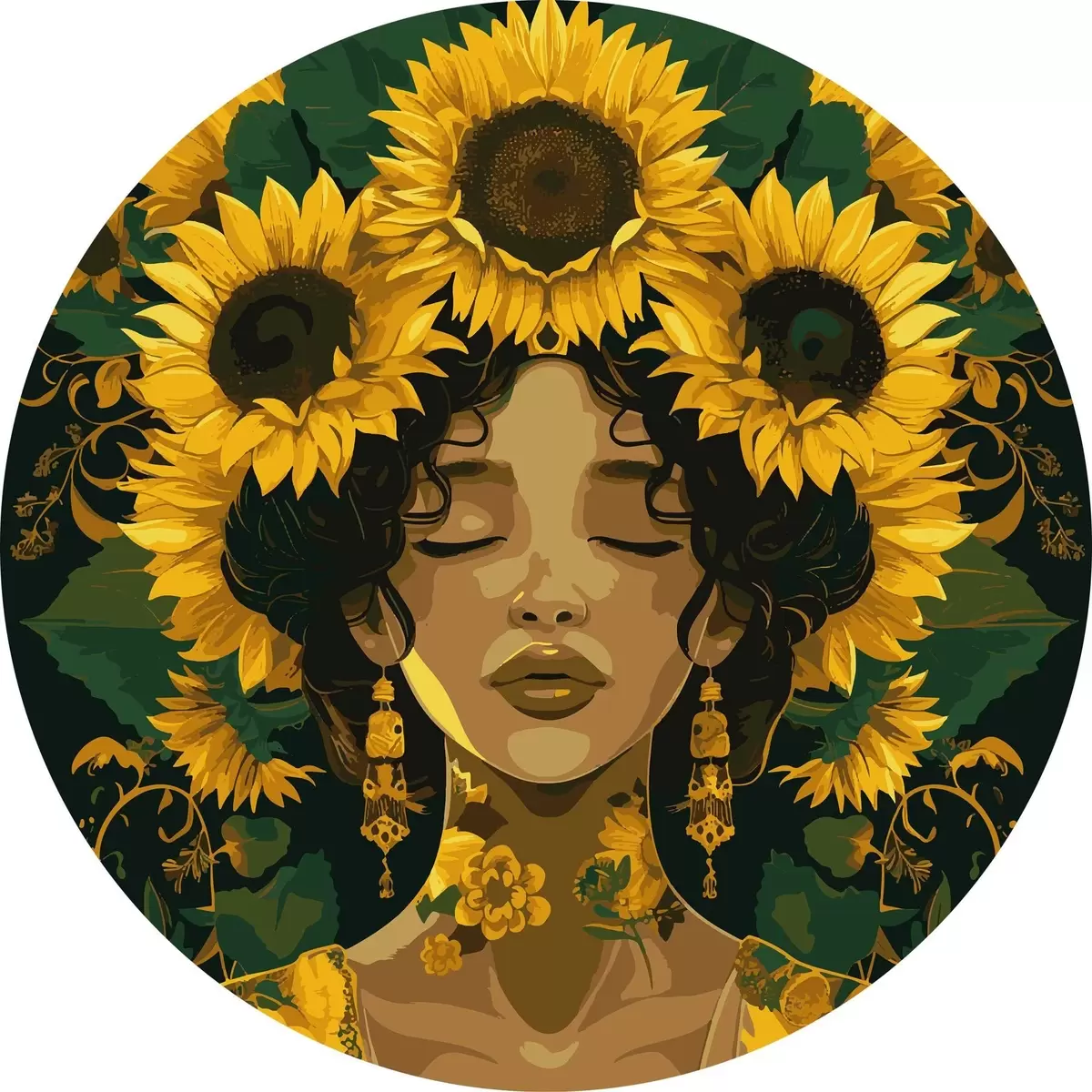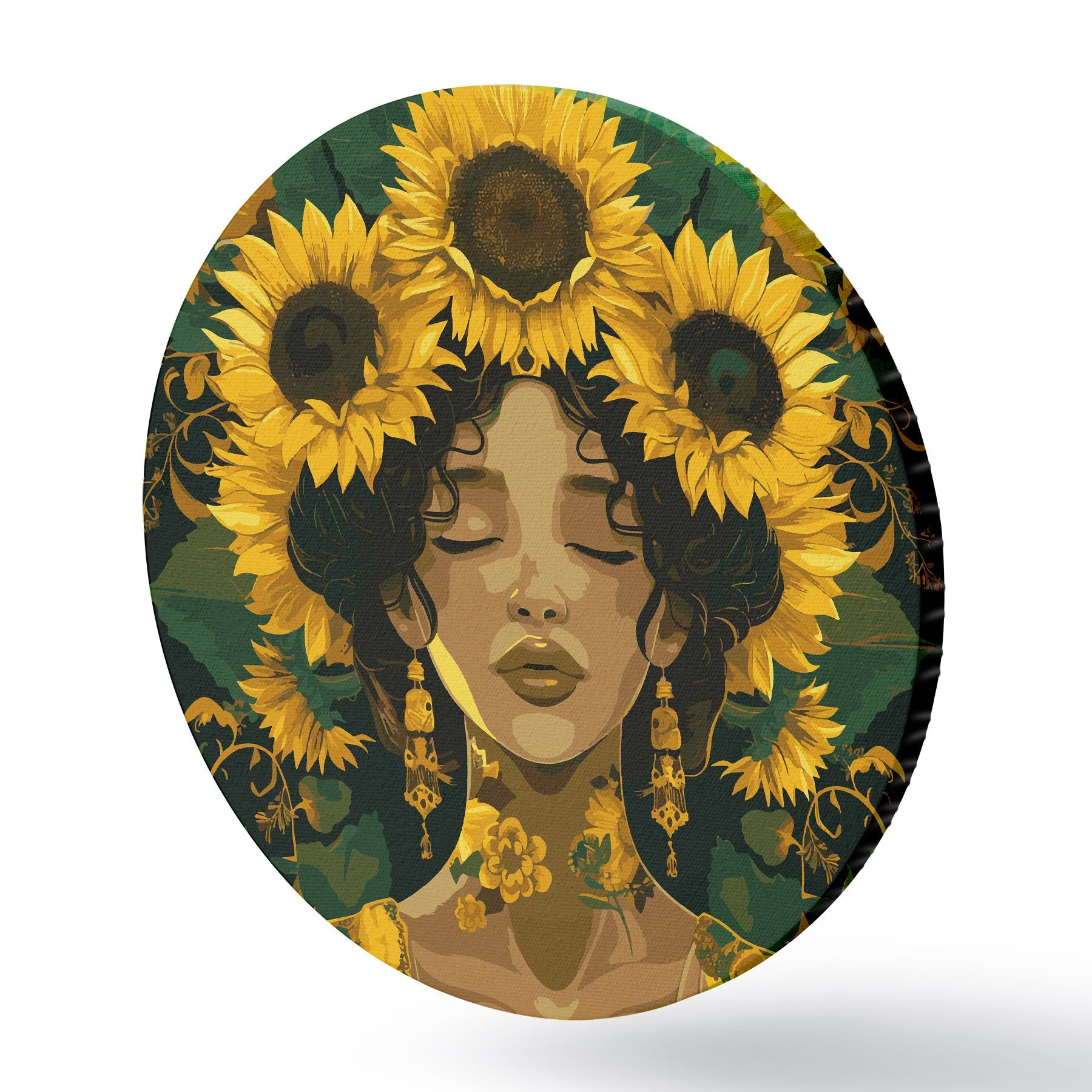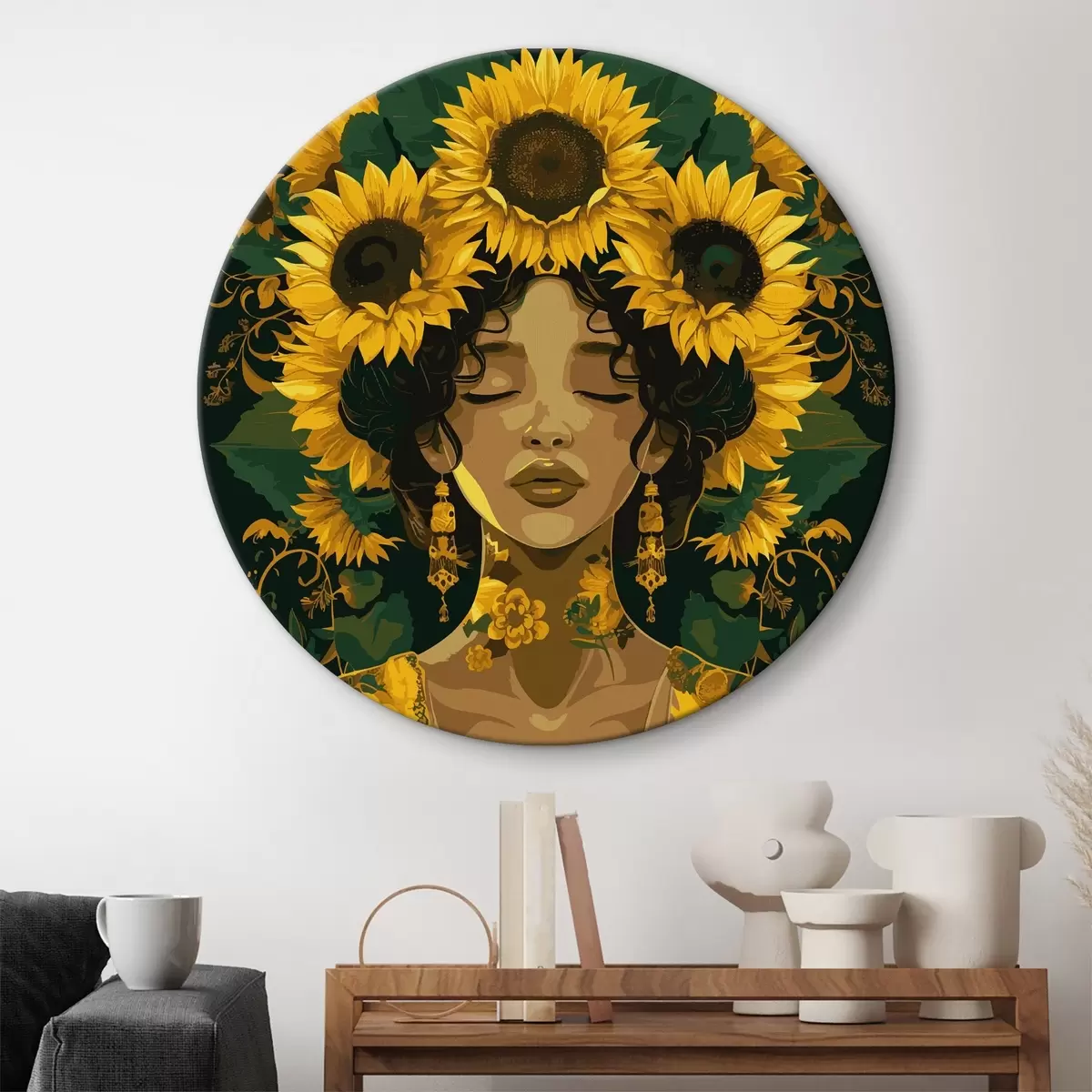 Tableaux ronds Femme avec des tournesols dans les cheveux r38263