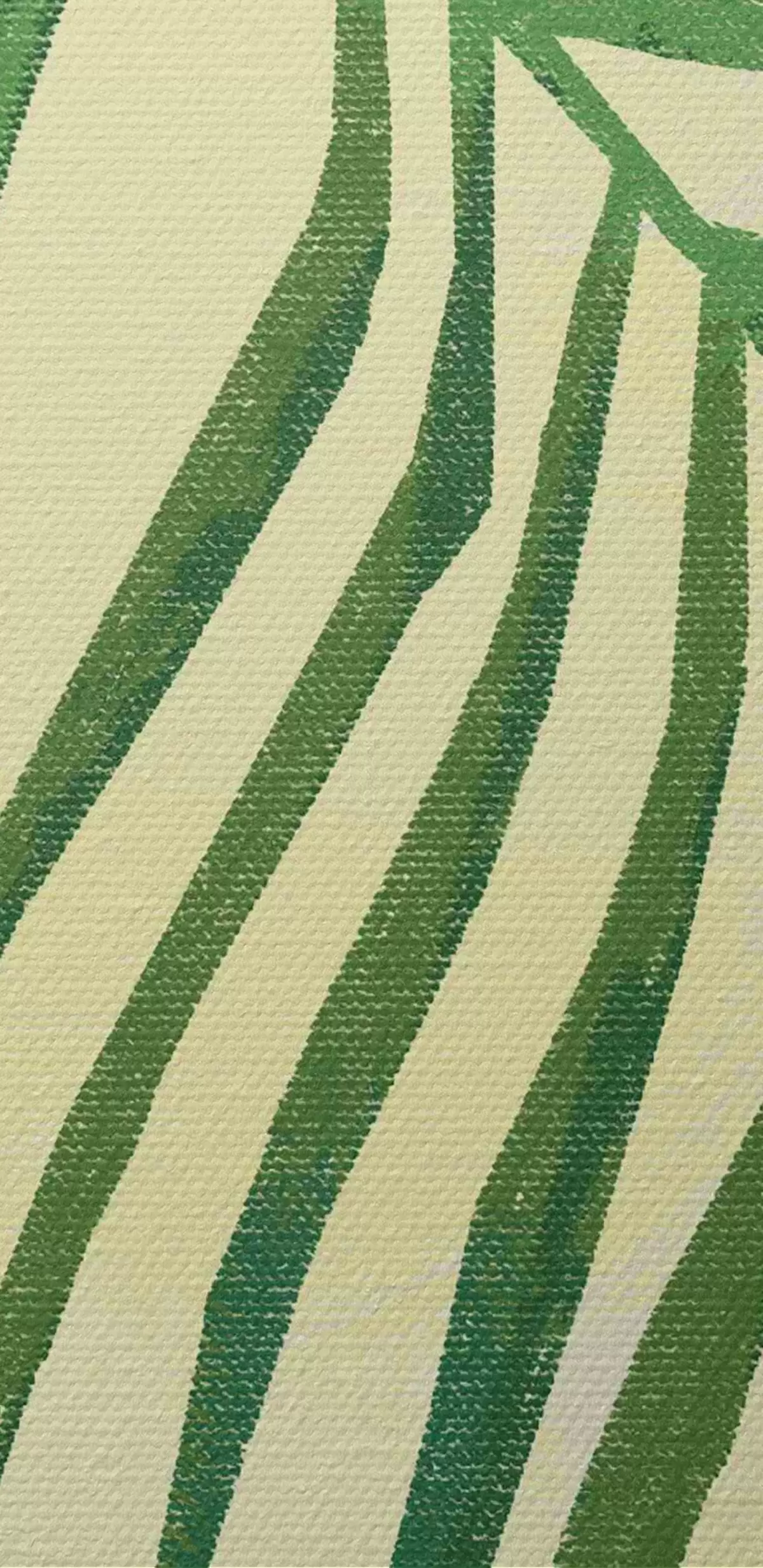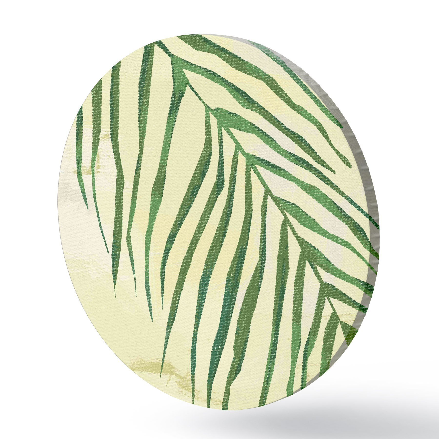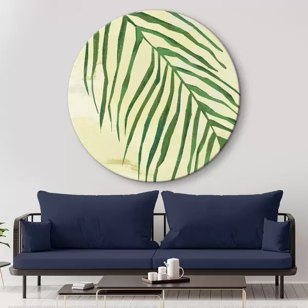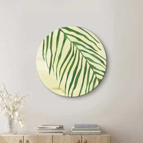 Tableaux ronds Branche de palmier, tropical, gros plan, plante, feuilles minces, vertes et jaunes r38282