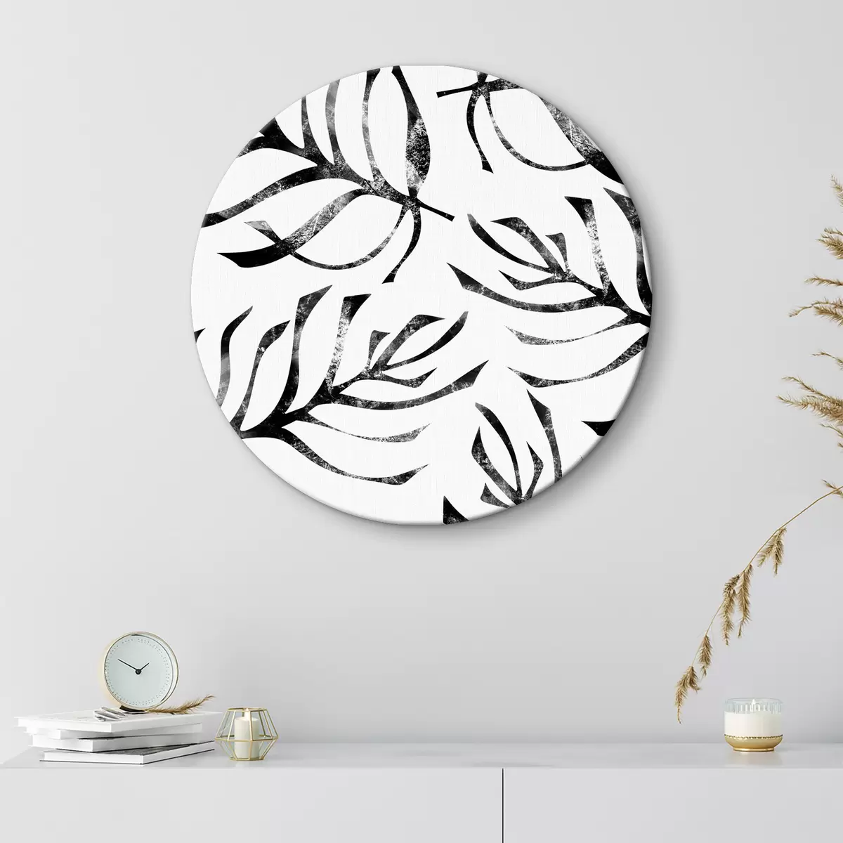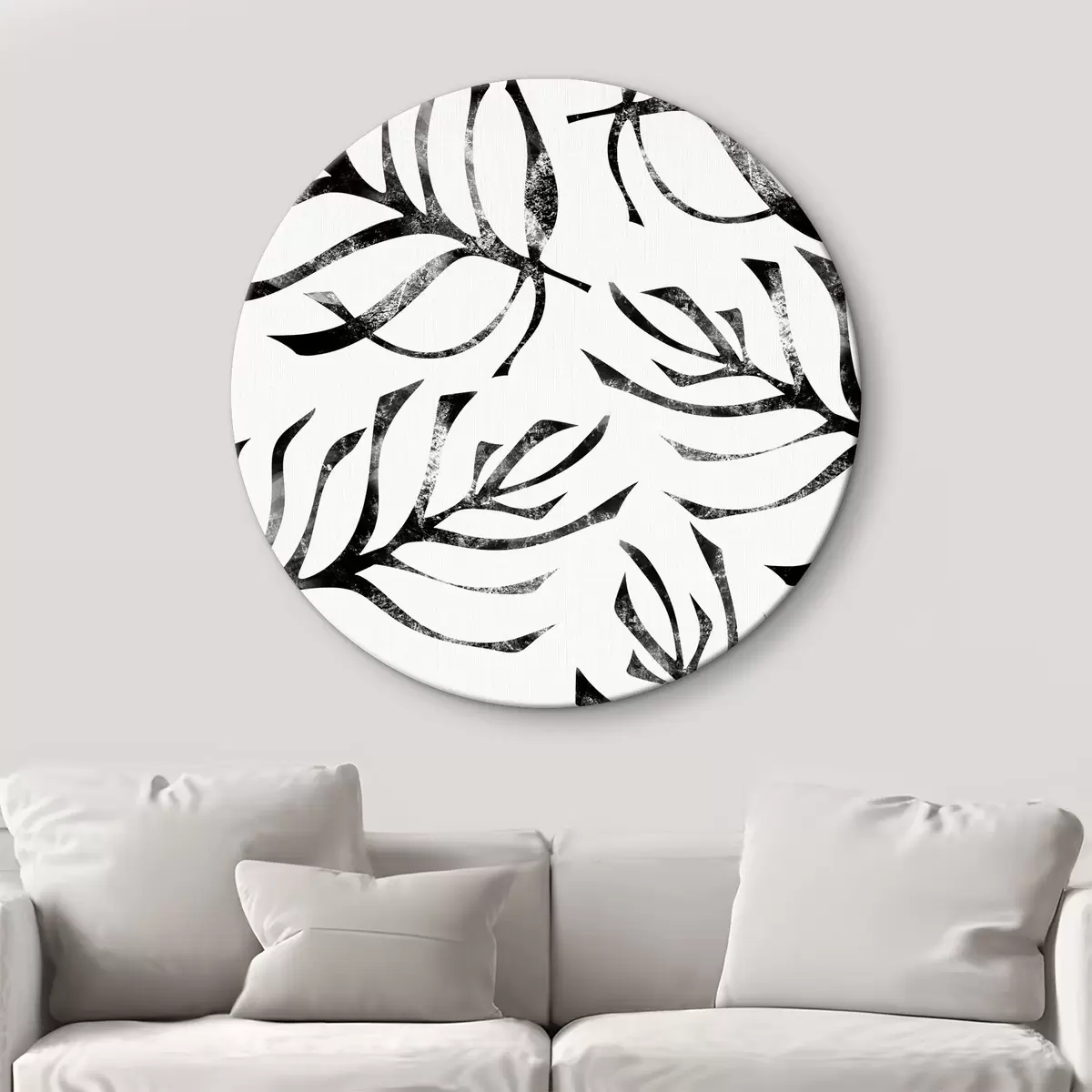 Tableaux ronds Motif de feuilles sur fond blanc r38340