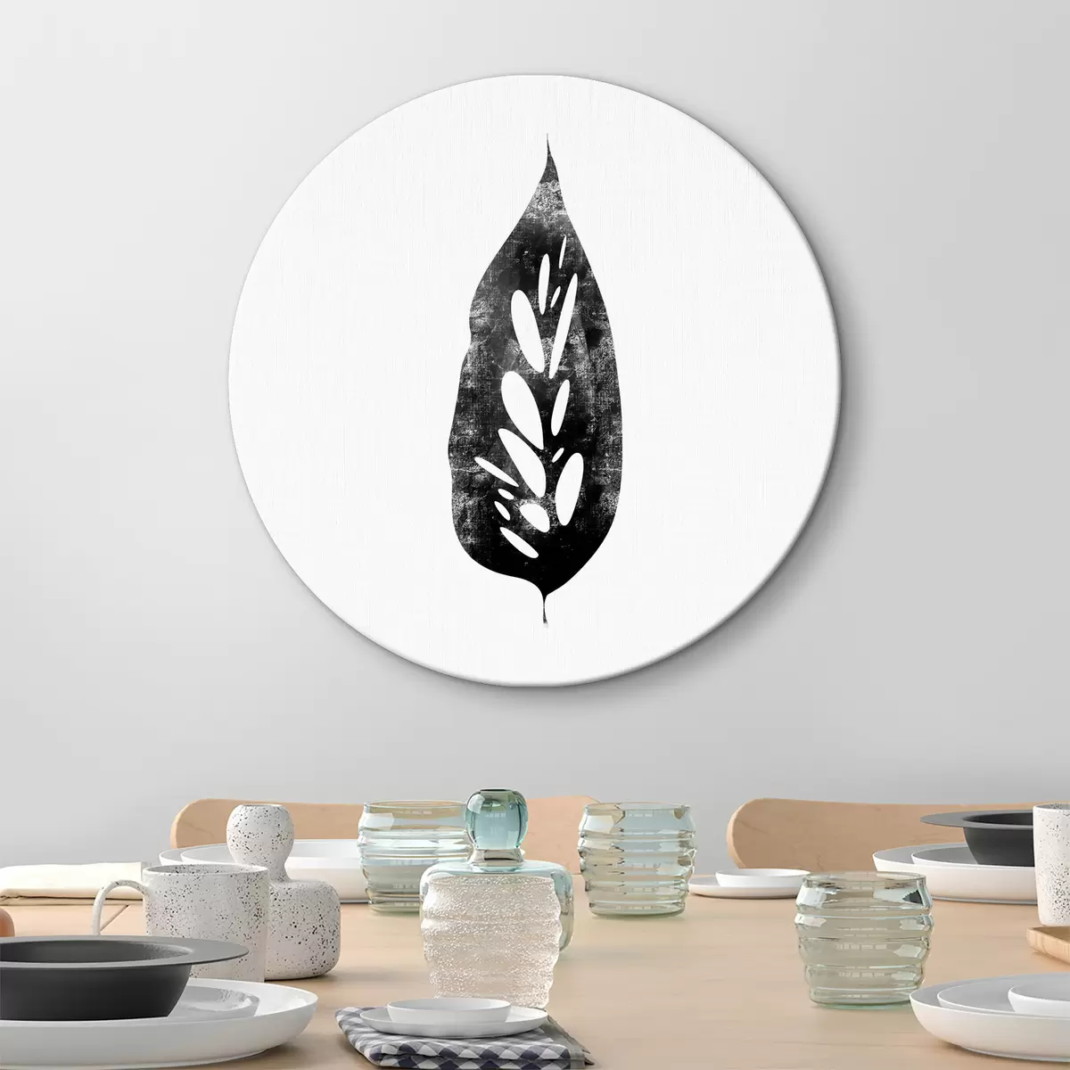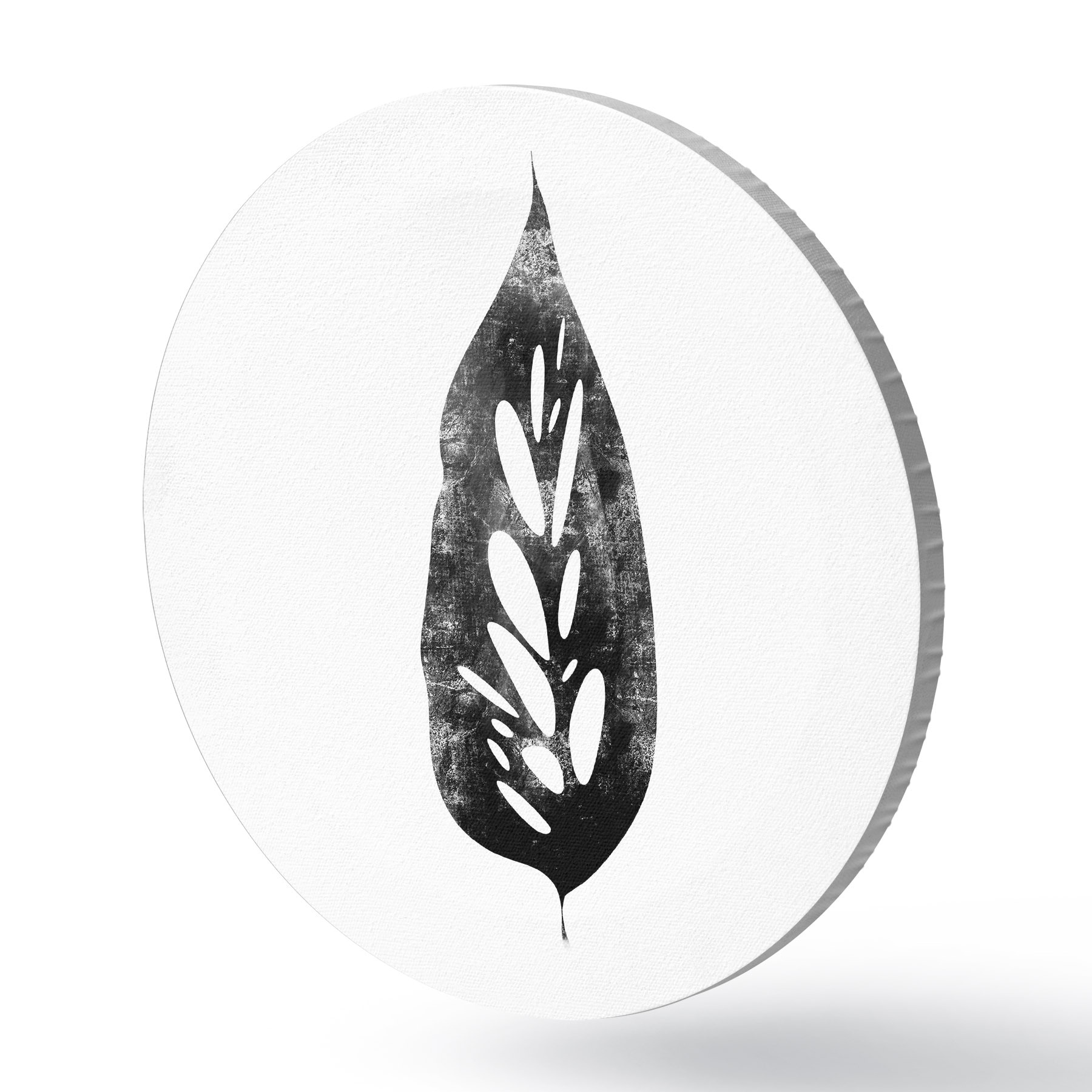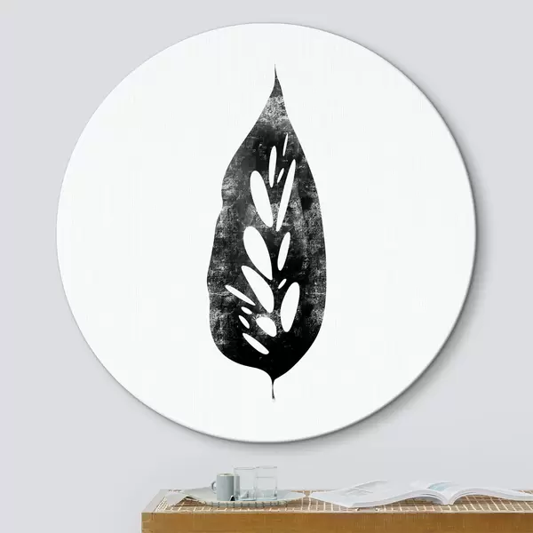 Tableaux ronds Feuille en noir et blanc r38343