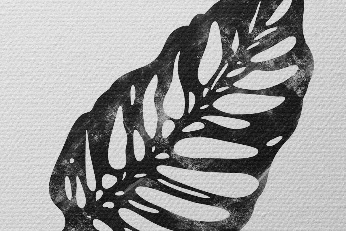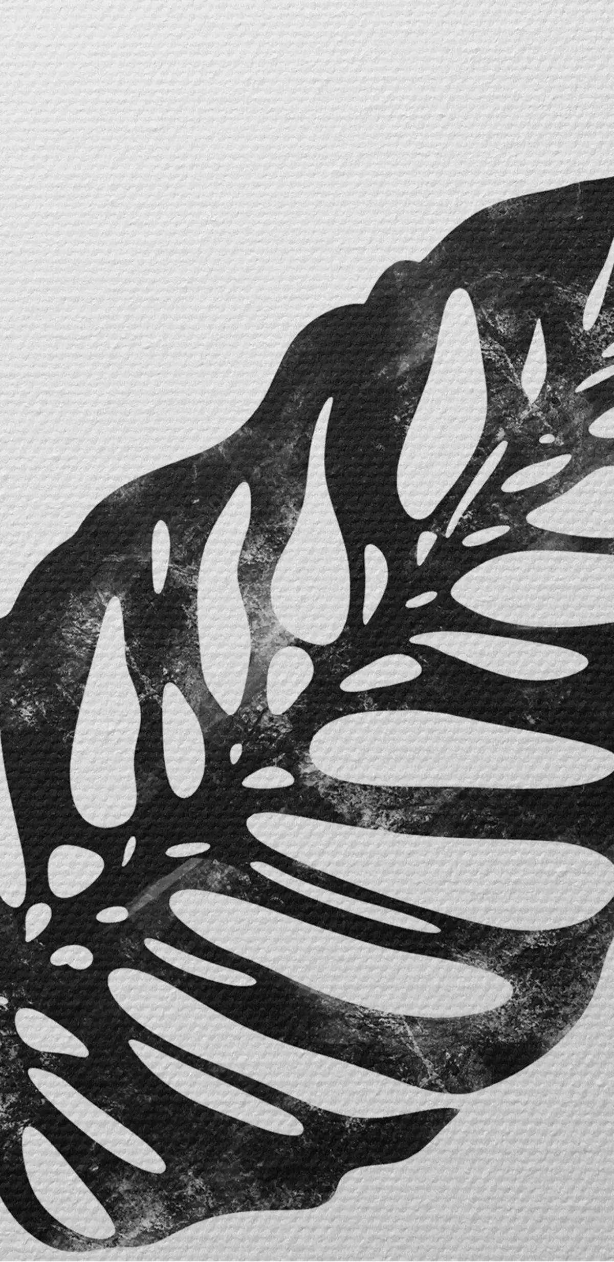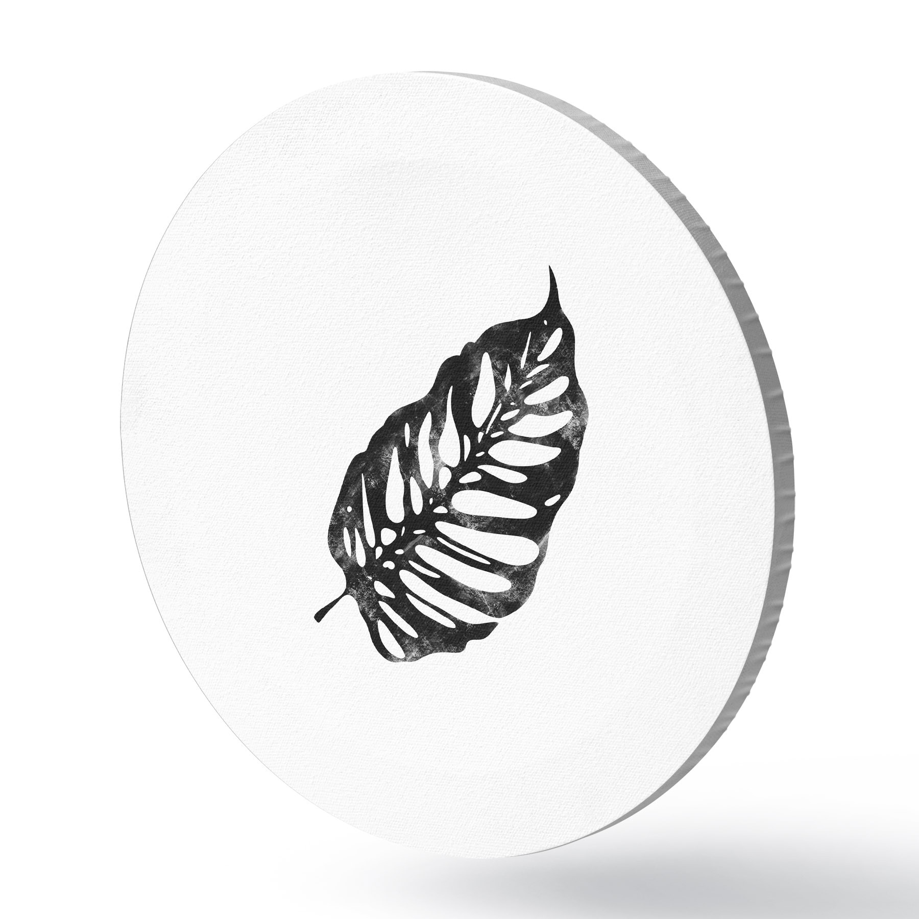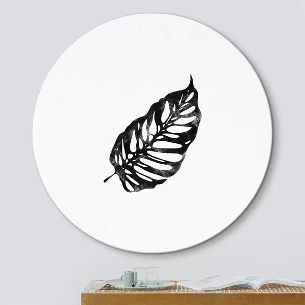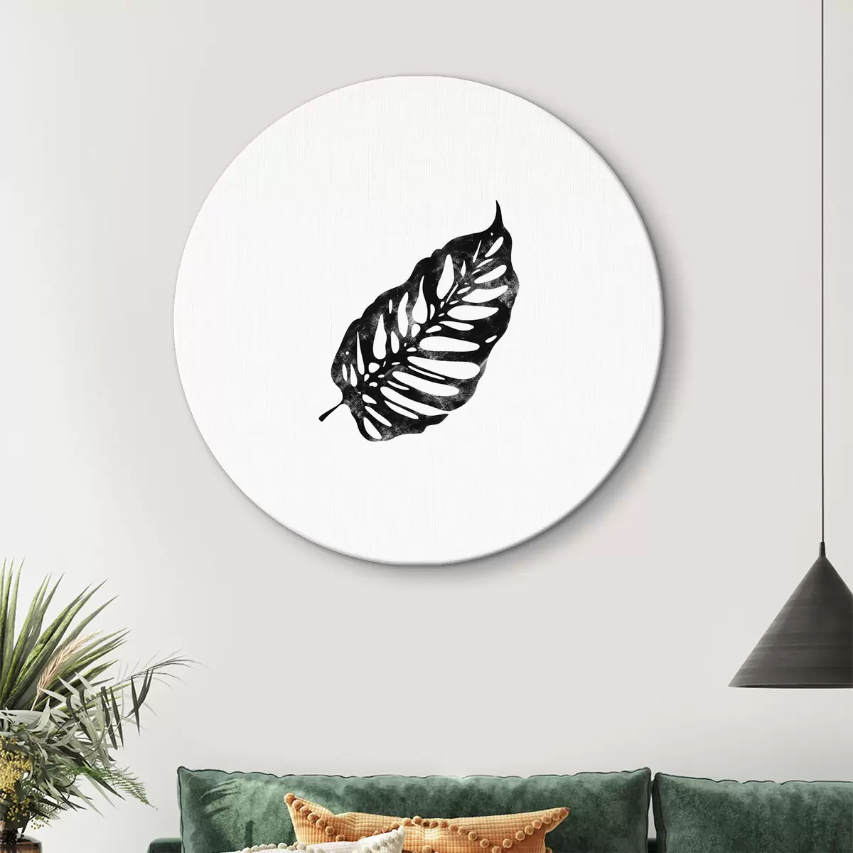 Tableaux ronds Feuille noire sur fond blanc r38347