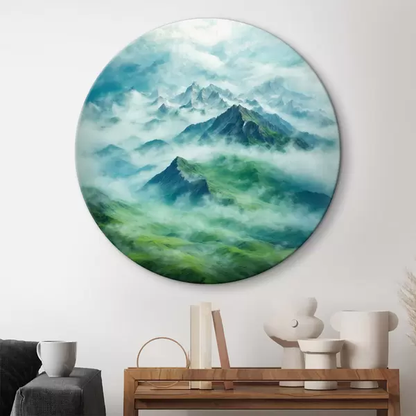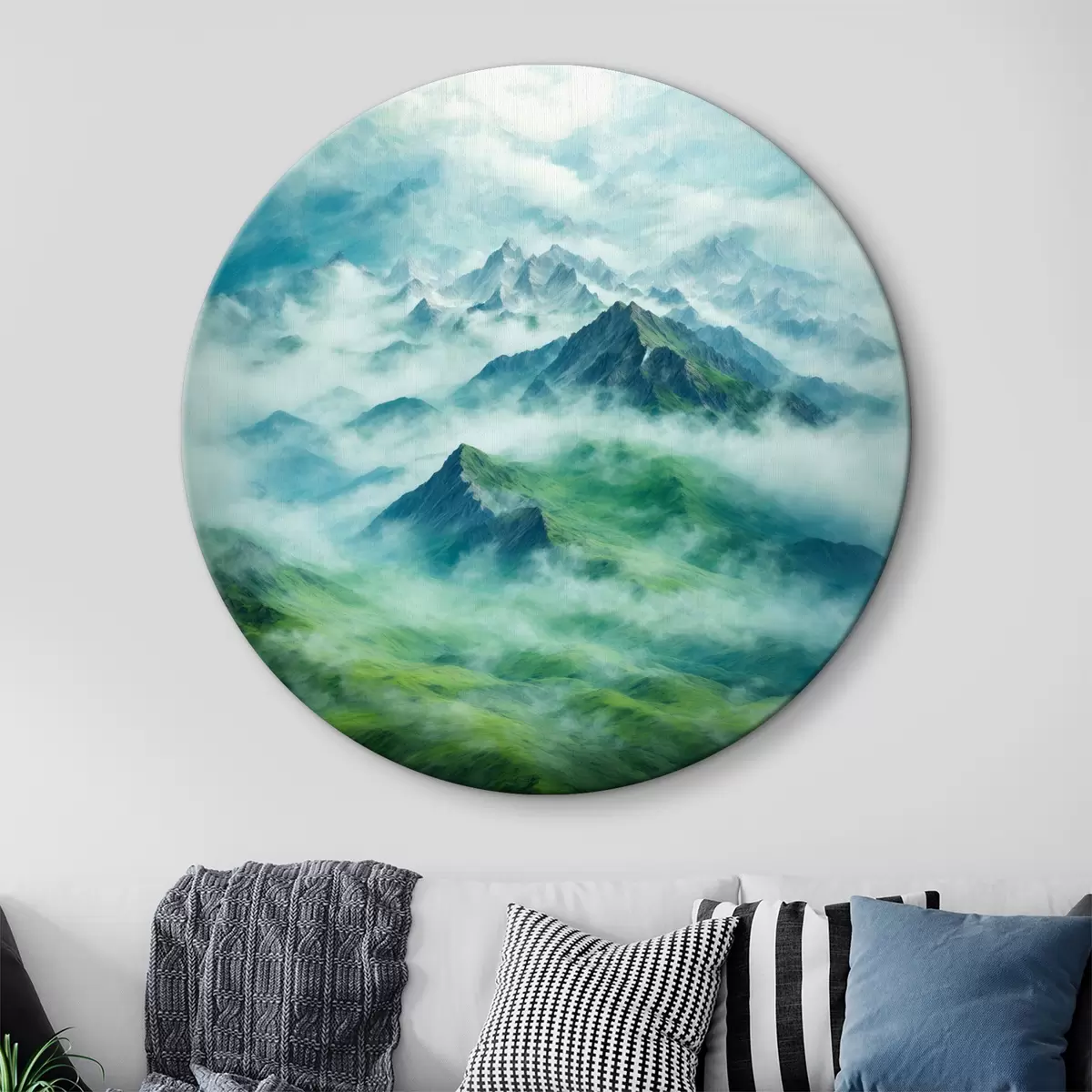 Tableaux ronds Chaîne de montagnes avec nuages r38359