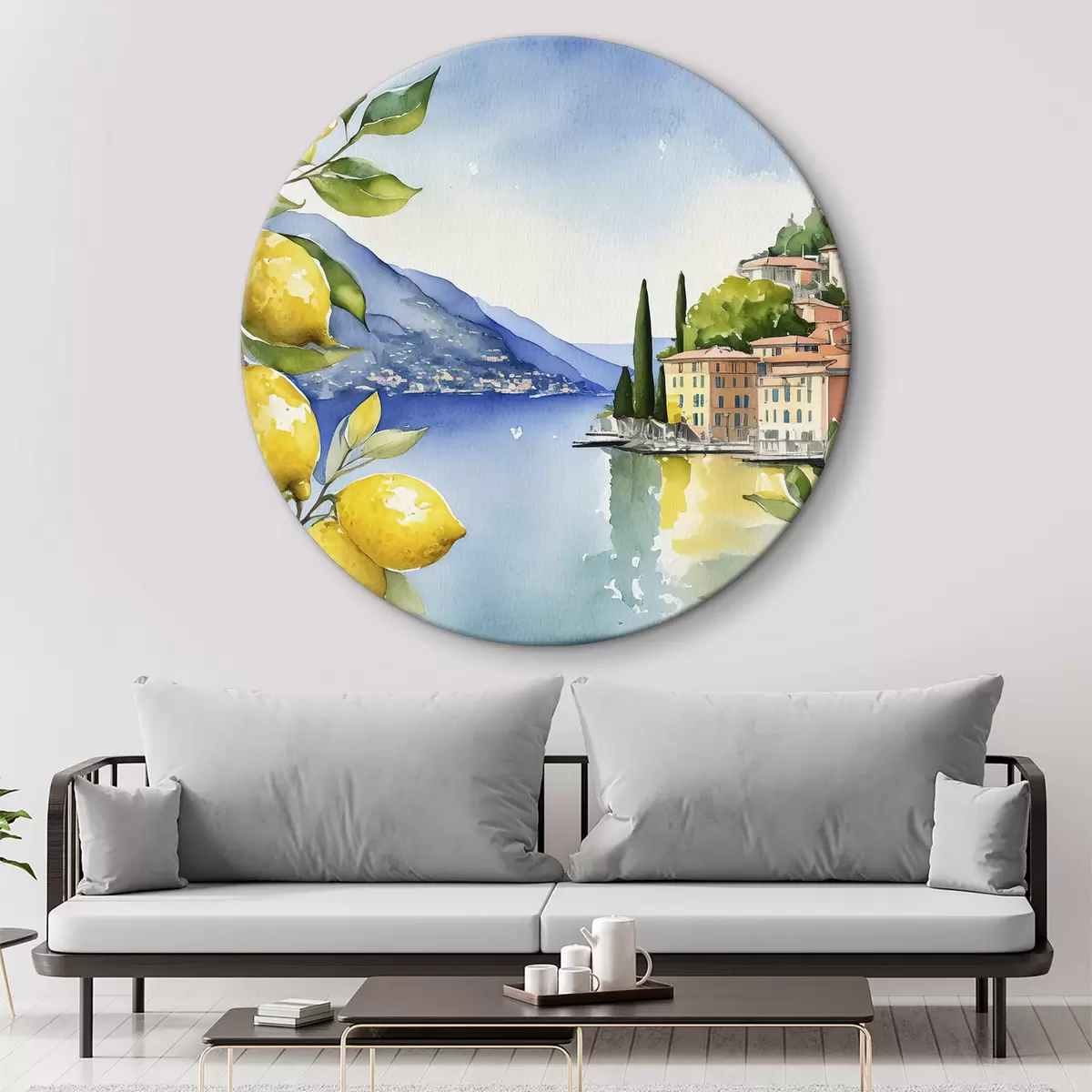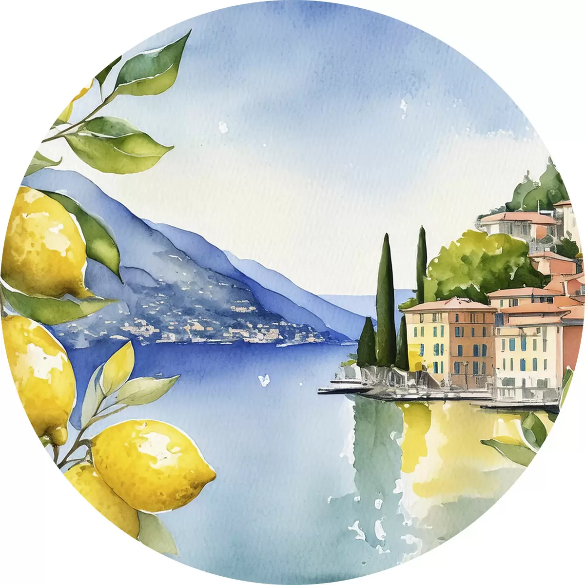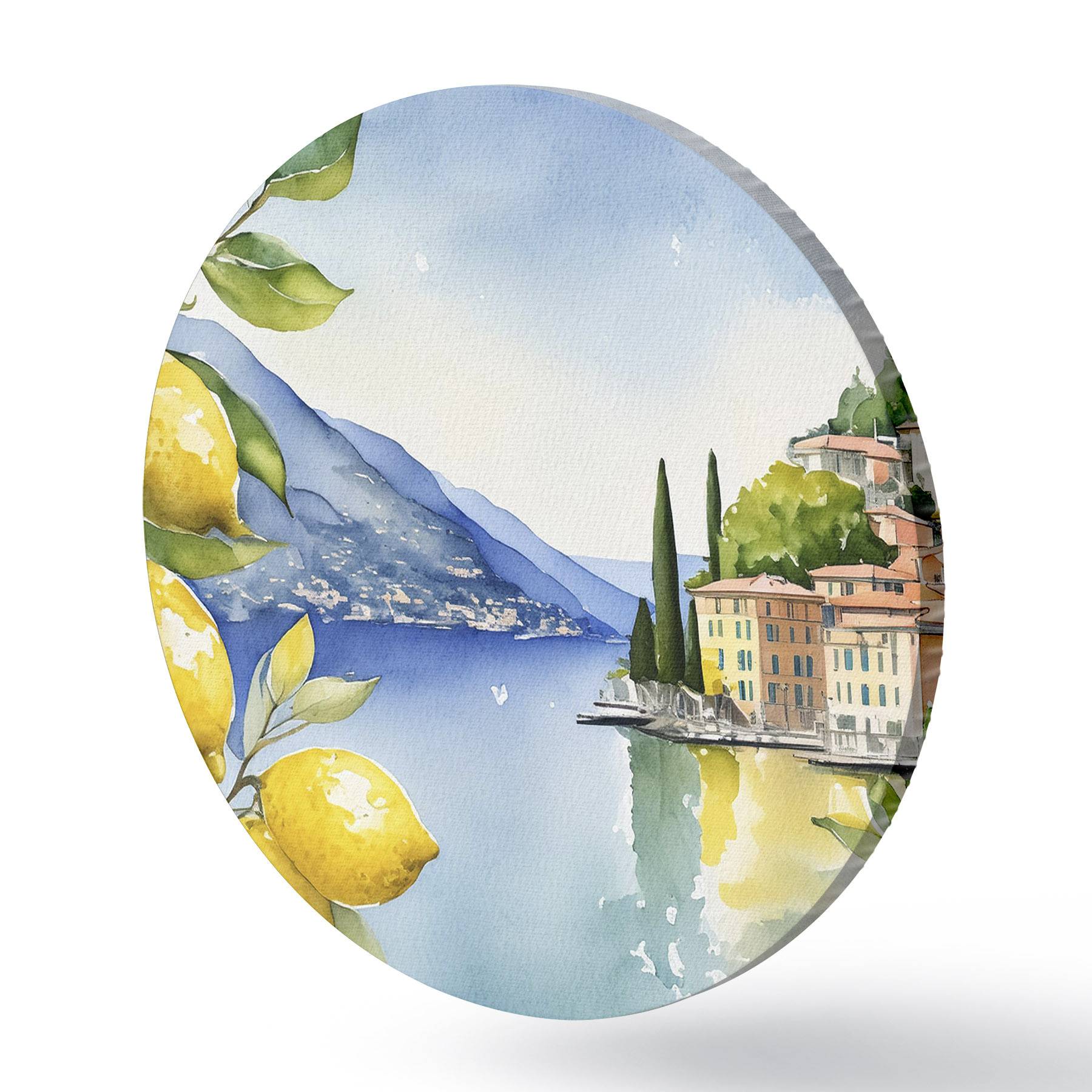 Tableaux ronds Lac italien, été, aquarelle, paysage naturel, citrons, architecture urbaine r38394