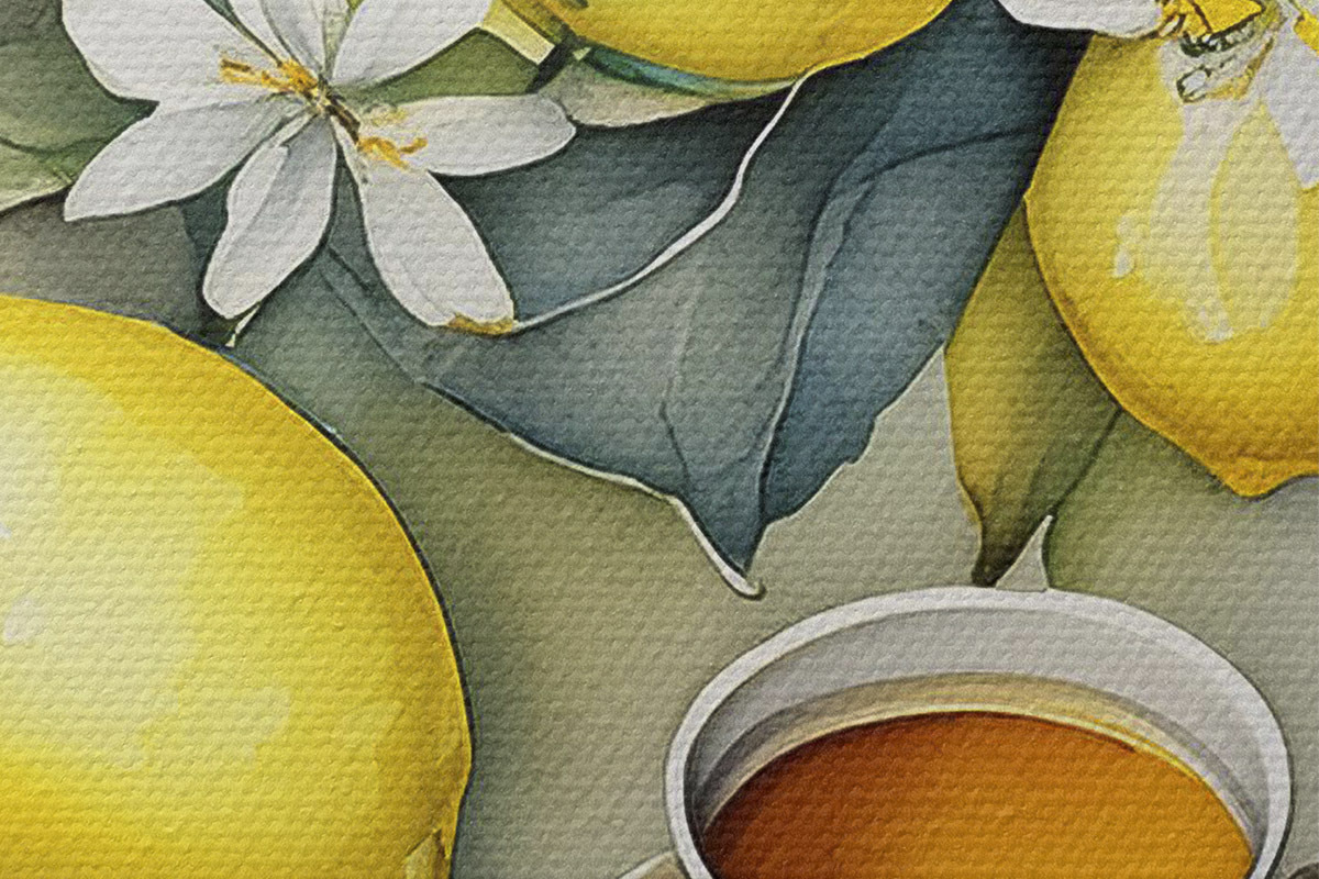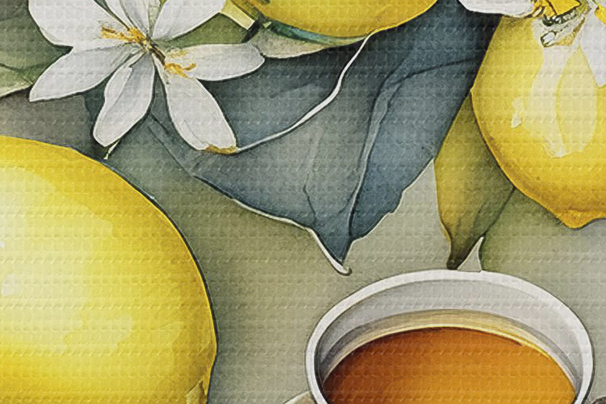 Image Citrons et fleurs, aquarelle, petit déjeuner, tasse de thé, style bohème Nr r38403