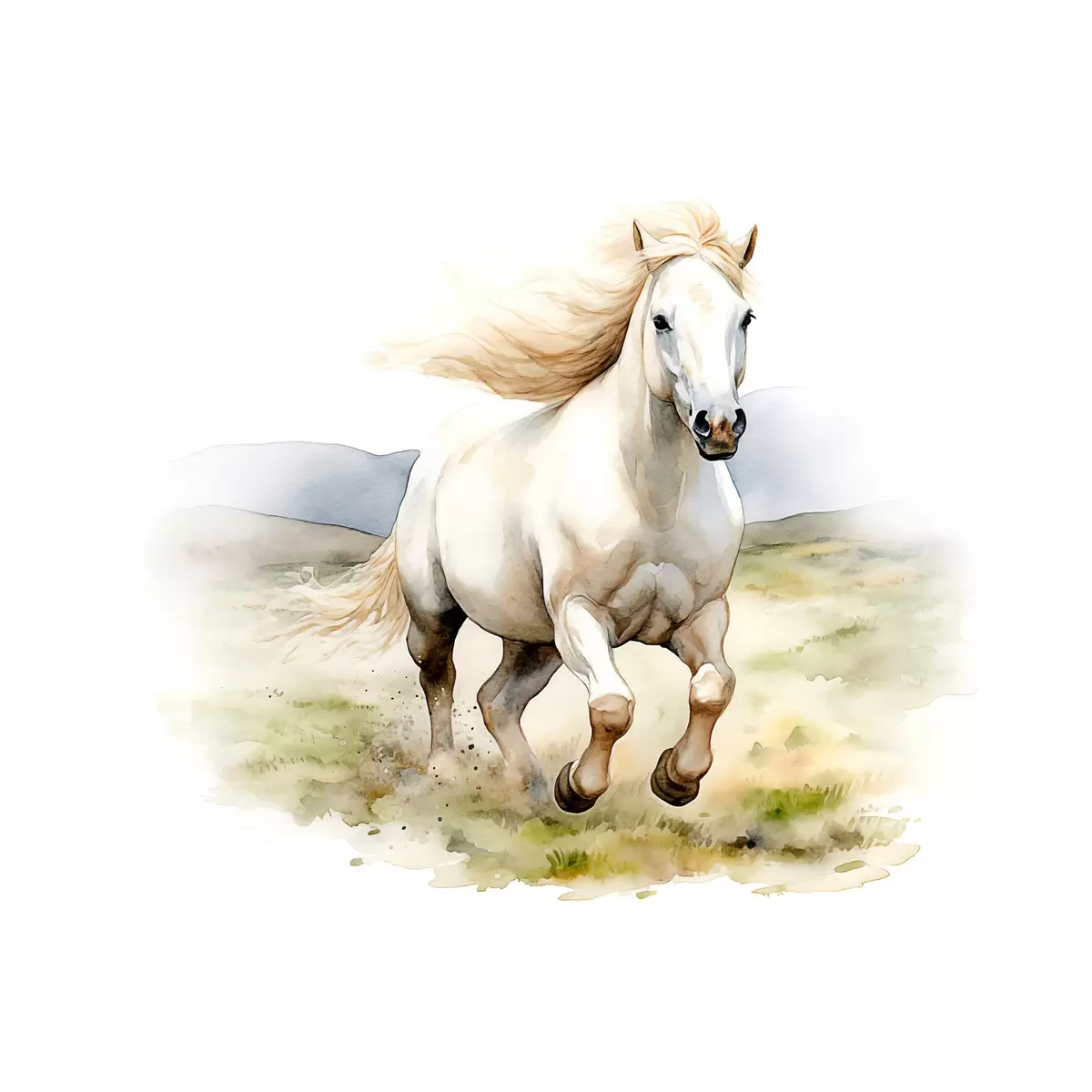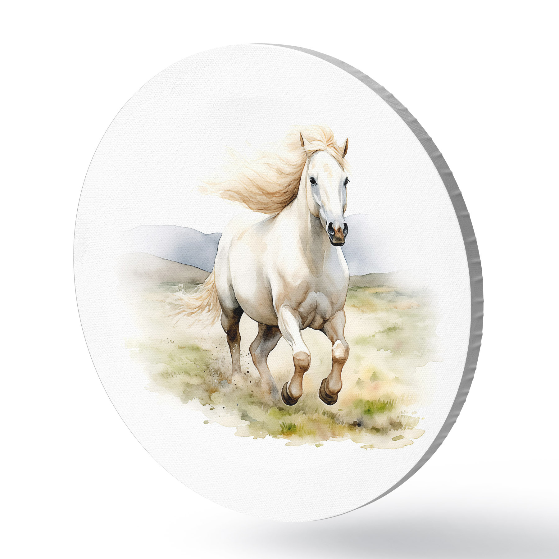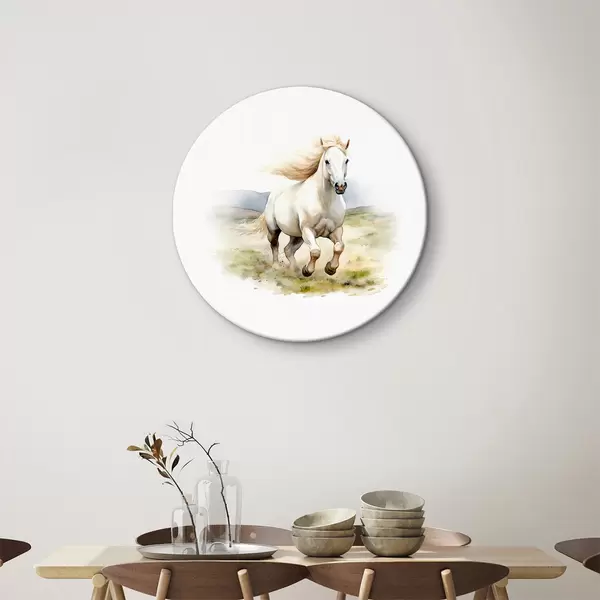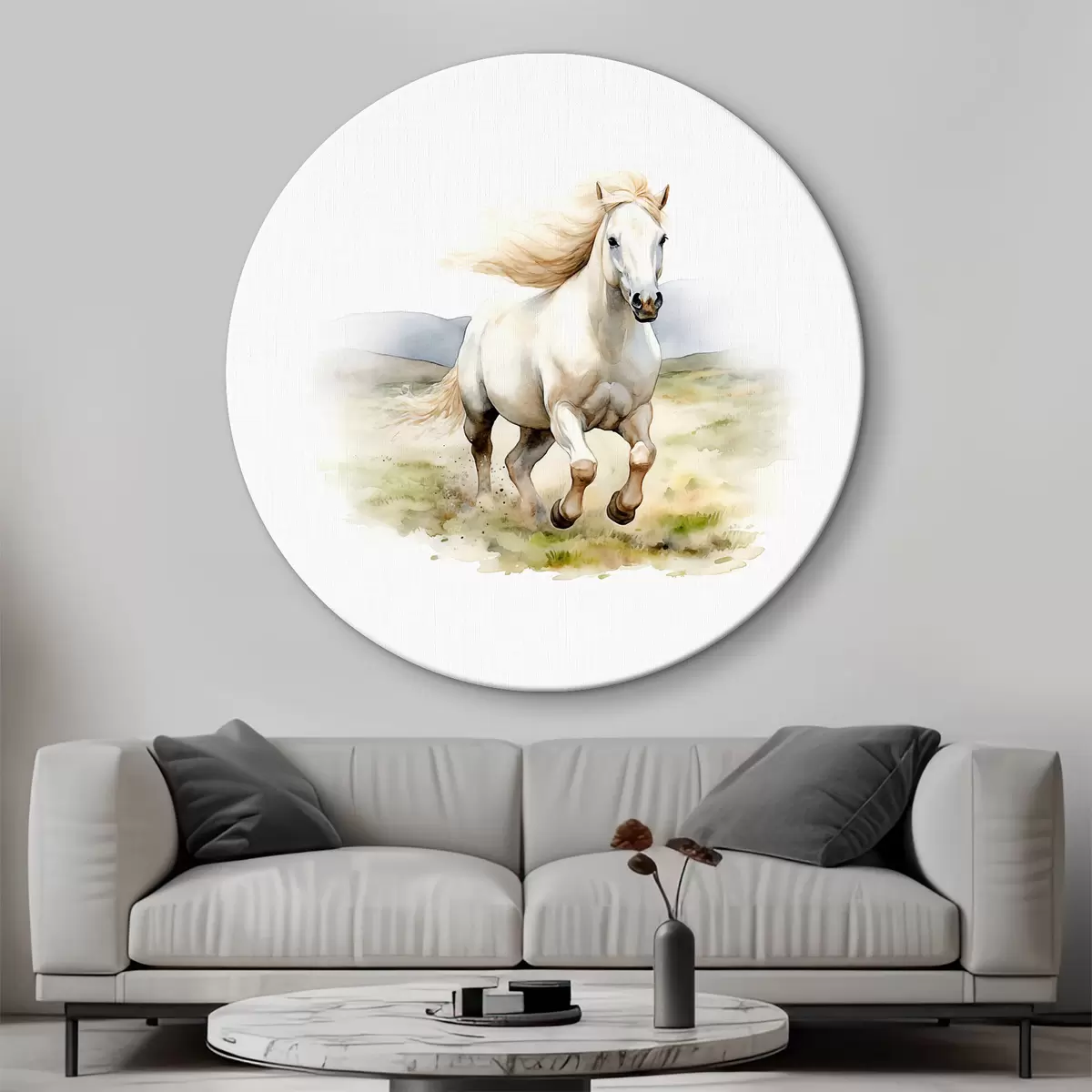 Tableaux ronds Cheval blanc courant dans le champ r38477