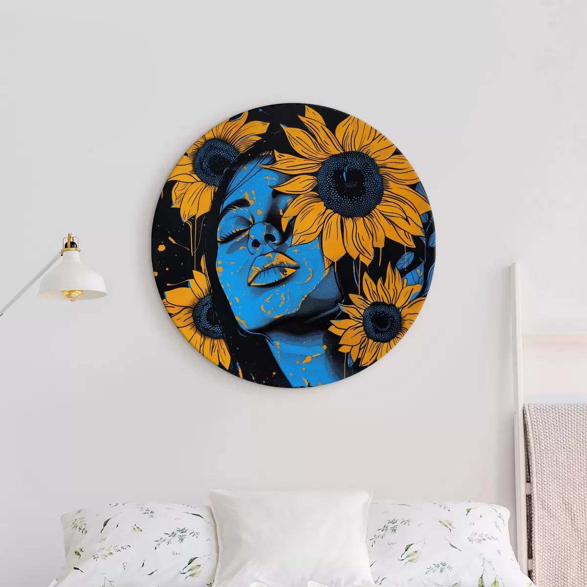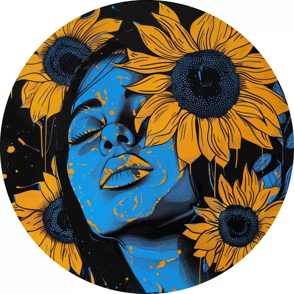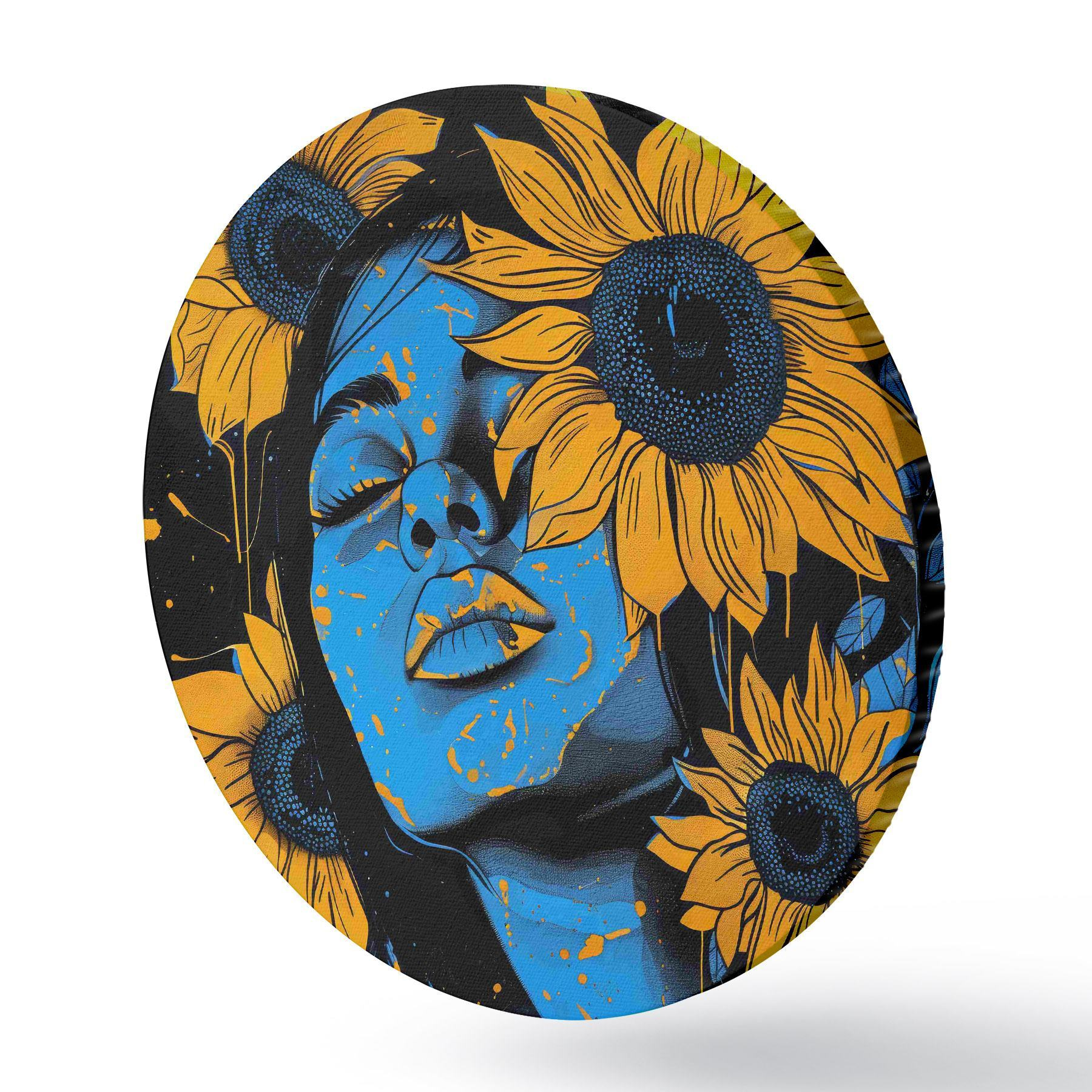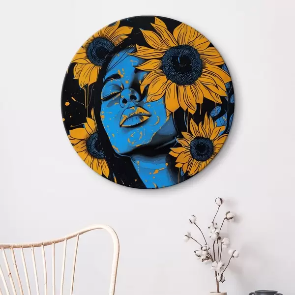 Tableaux ronds Peinture d'une femme avec des tournesols r38505