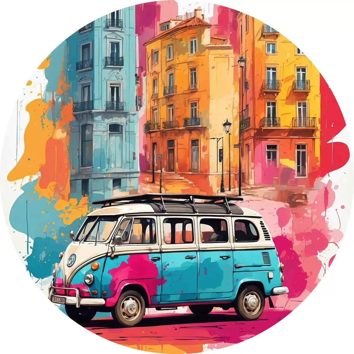 Tableaux ronds Un voyage coloré à travers des lieux urbains r38593