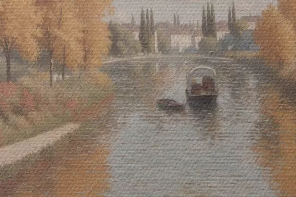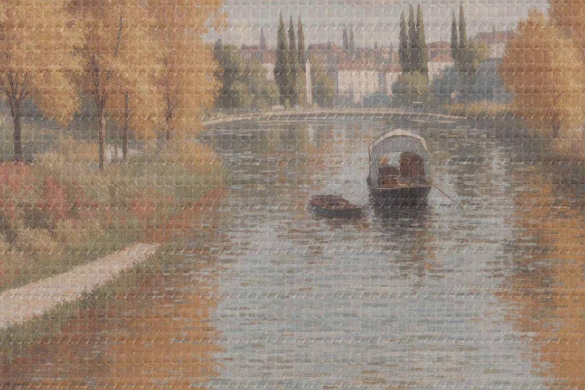 Image Peinture d'une rivière avec des bateaux et des gens Nr r38598