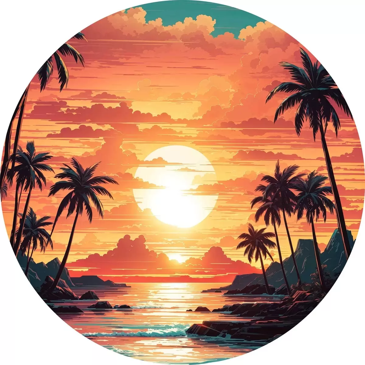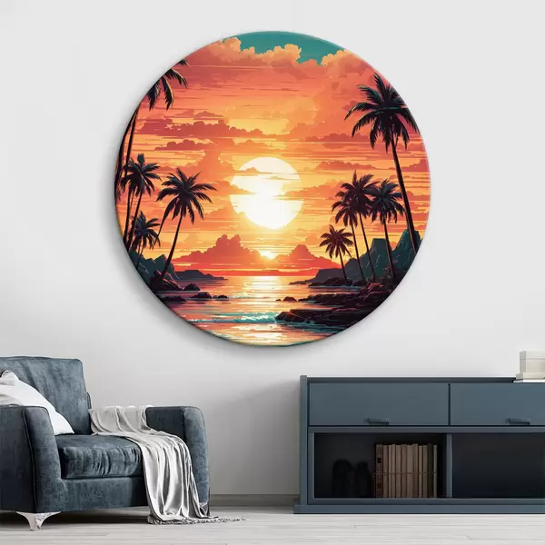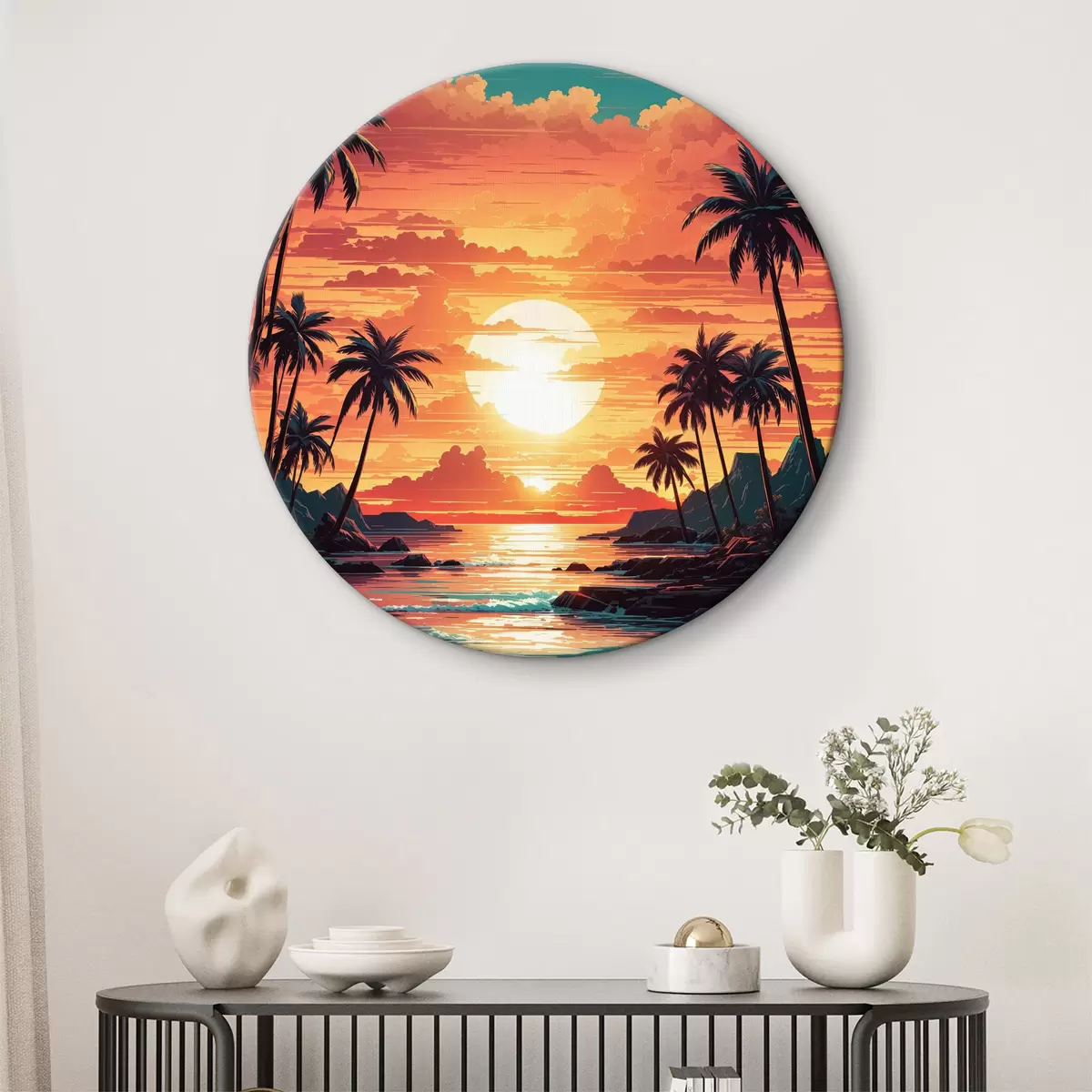 Tableaux ronds Coucher de soleil sur la plage r38599