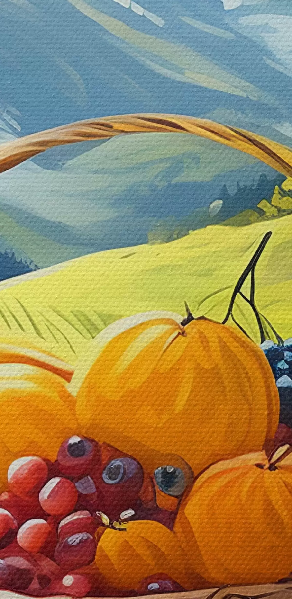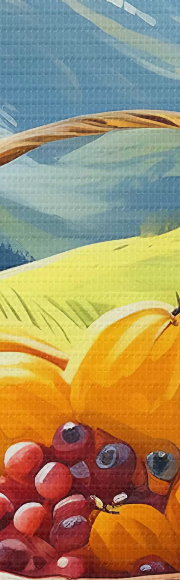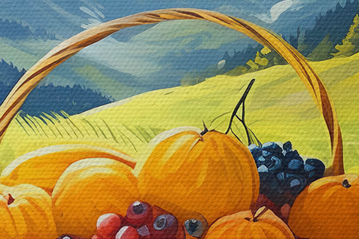 Tableaux ronds une corbeille de fruits sur un pré dans les montagnes r38654