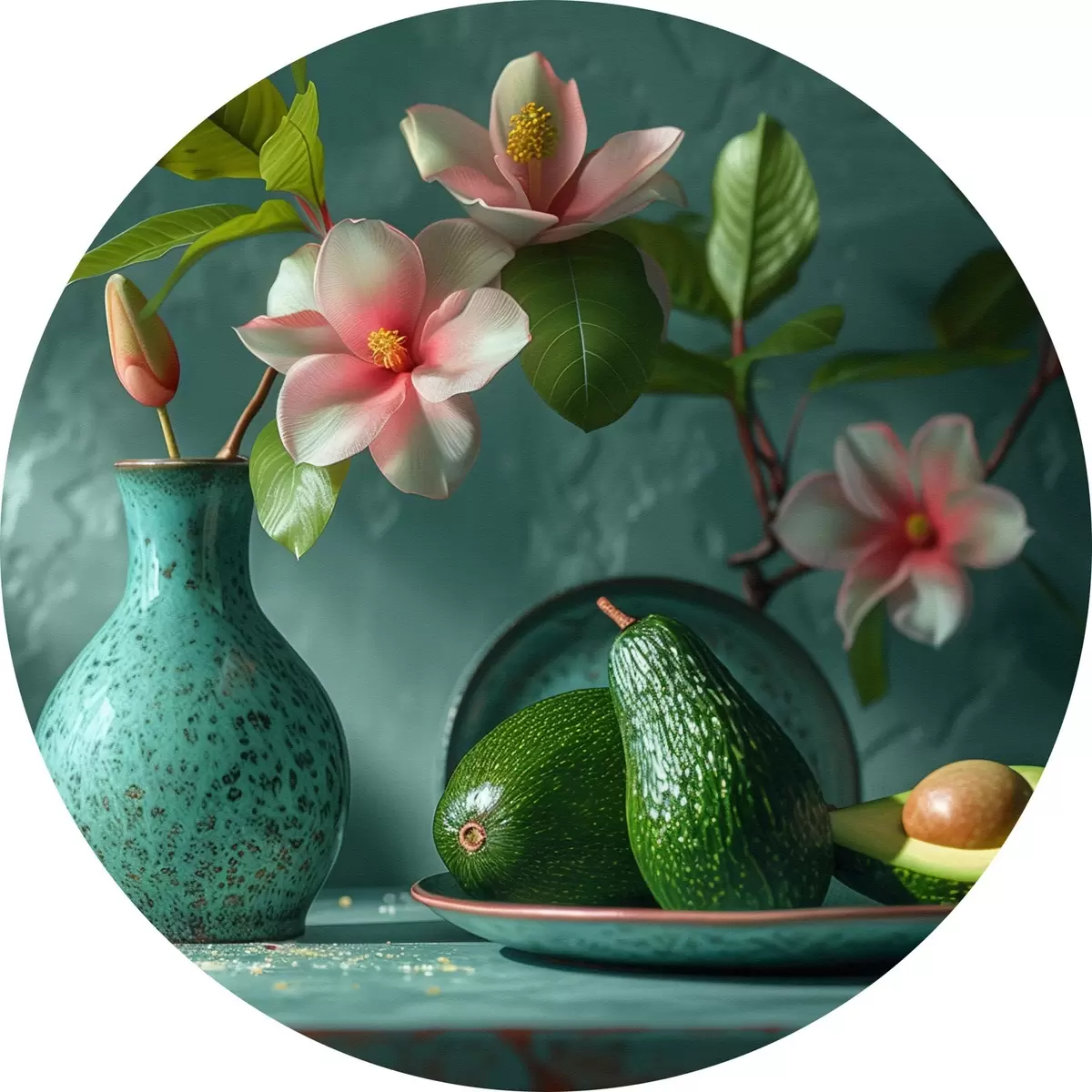 Tableaux ronds Composition d'avocat et de lys r38687