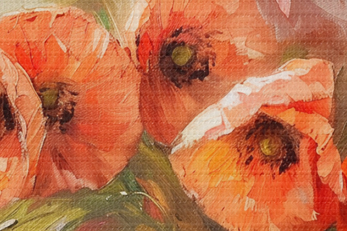 Trois types de matériaux peuvent être commandés : Economic Canvas - matériau dense et durable pour l'impression numérique, identique à la toile de peintre, surface imperméable, reproduction réaliste des détails, matériau à grain moyen. Premium Canvas - la texture ressemble à celle d'une toile de peintre (petits fils entrelacés). Reproduction douce et détaillée de l'image sur une surface mate. Eco-Premium - tissu 100 % coton de haute qualité. Grâce aux fibres naturelles de coton, le matériau est durable et résistant à l'usure. Excellente reproduction des couleurs et des détails.