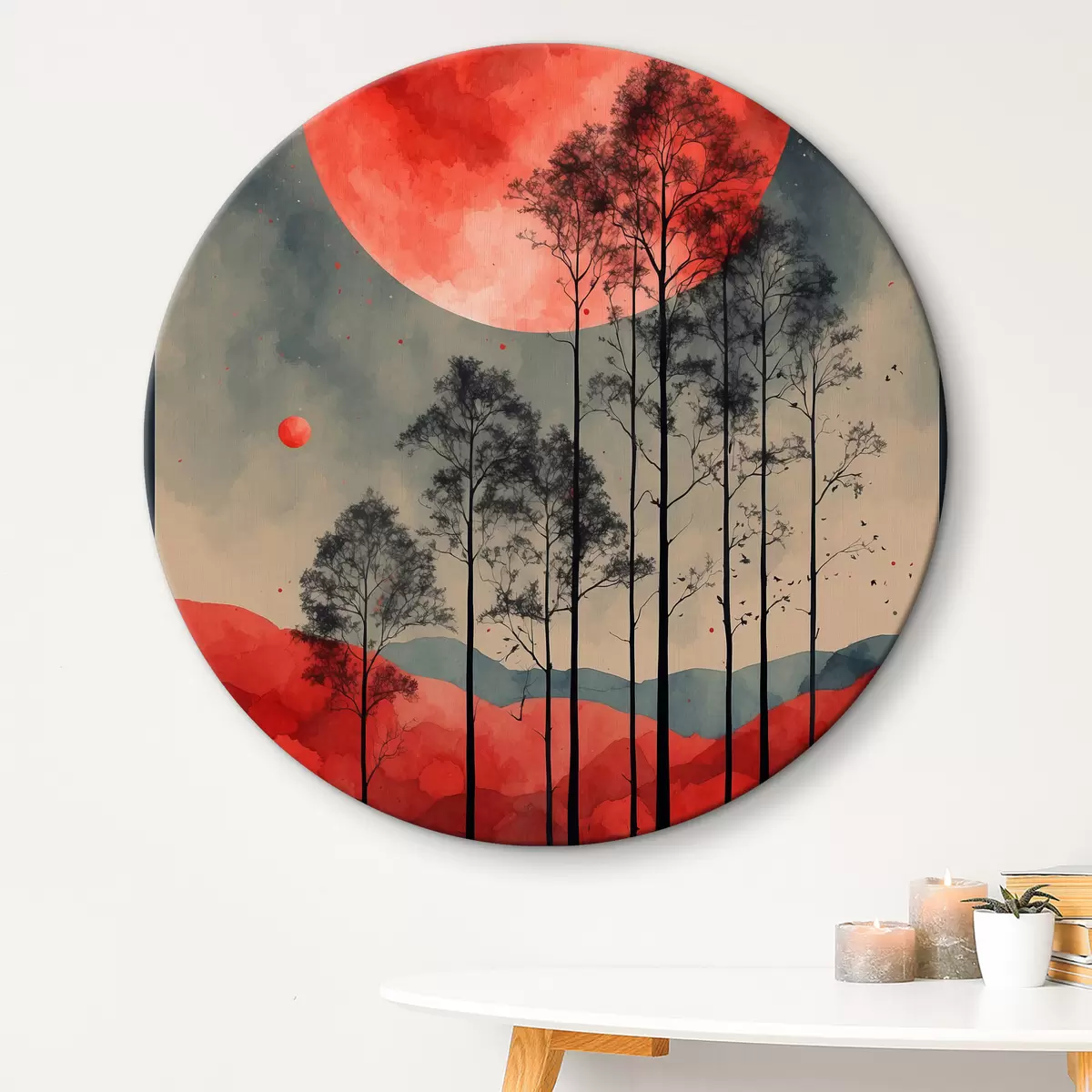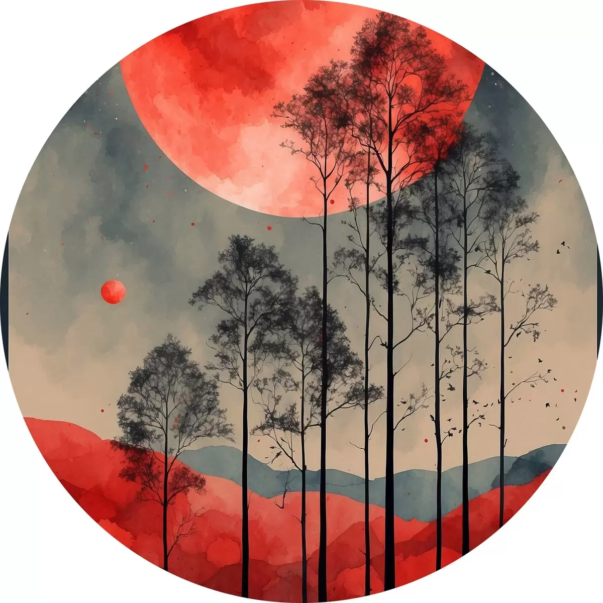 Tableaux ronds Une pleine lune sanglante sur la forêt r38862