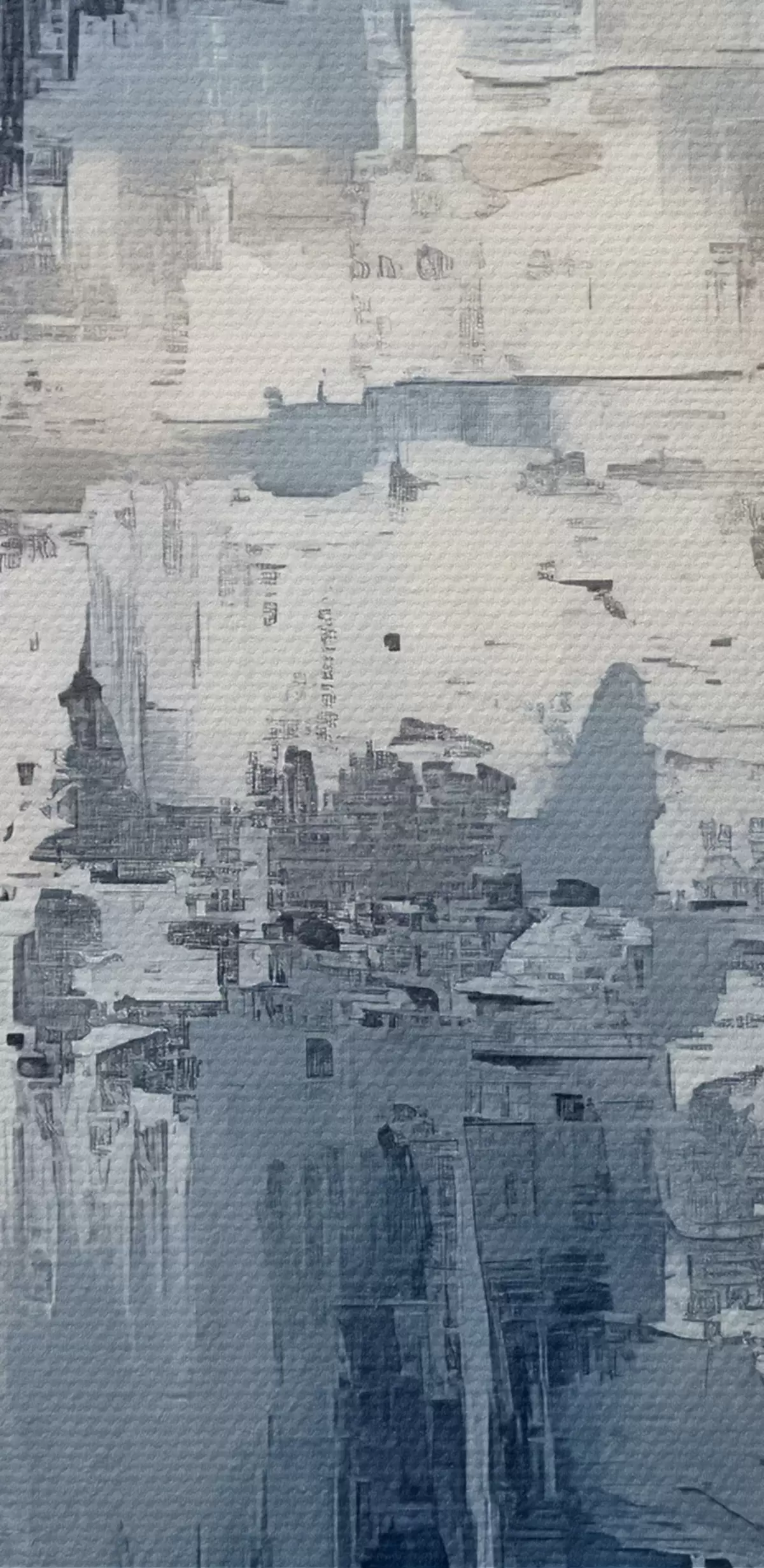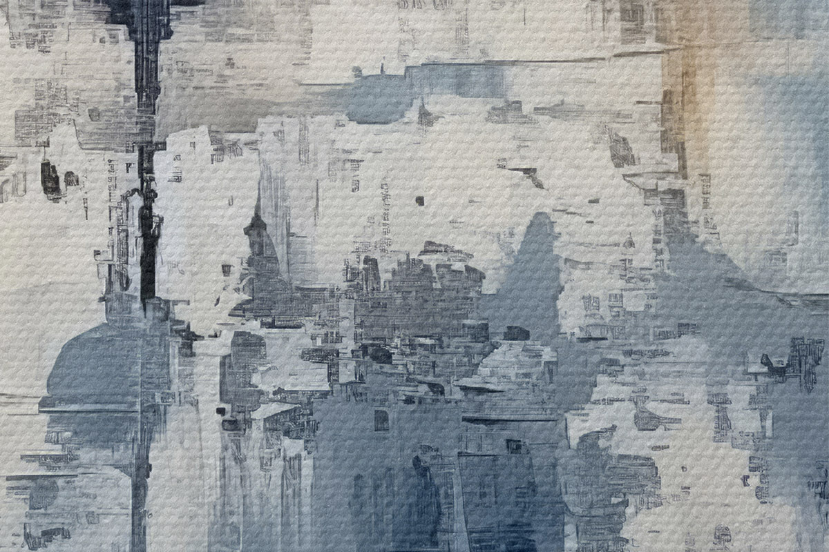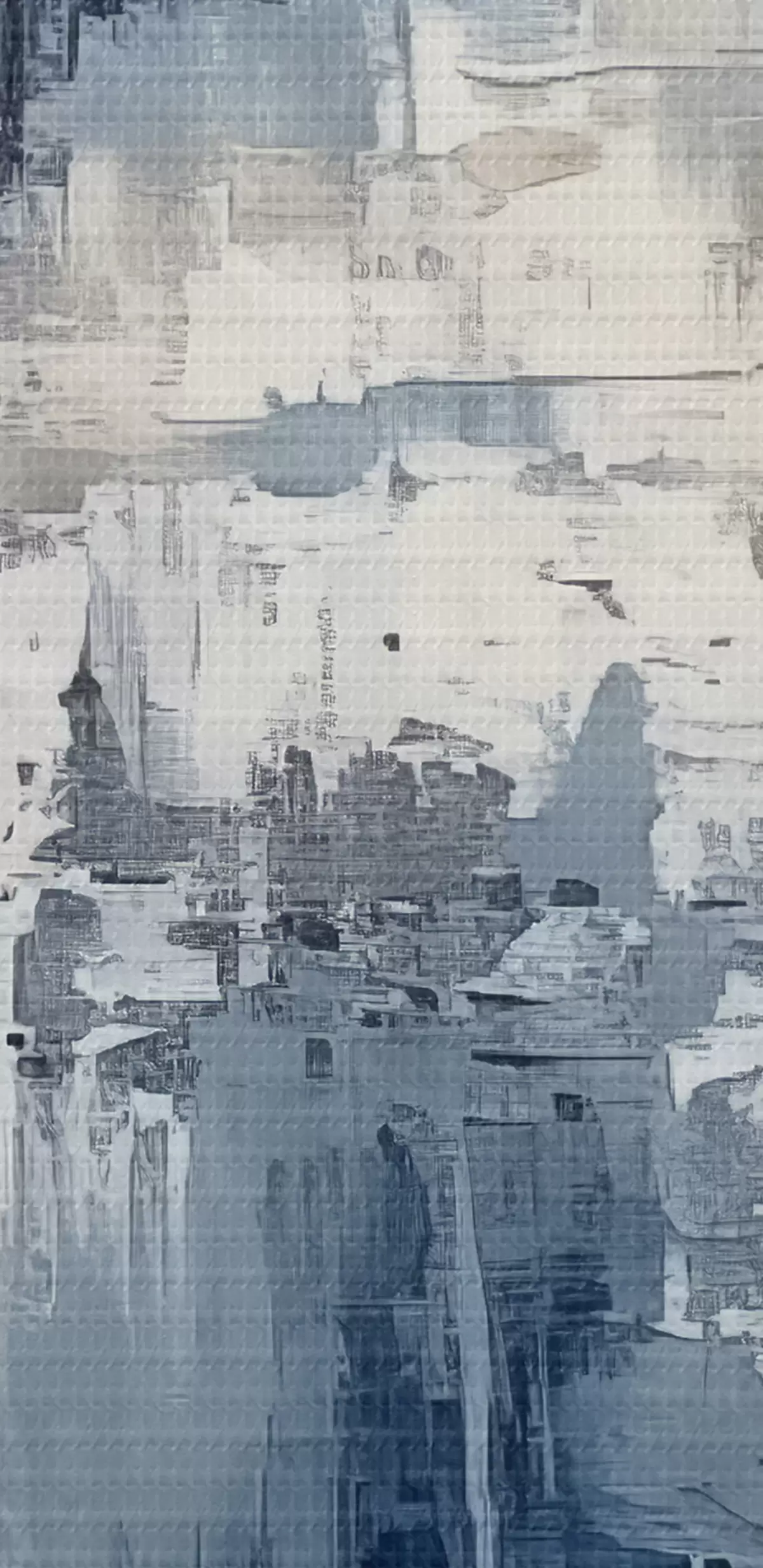 Image Peinture à l'huile abstraite minimaliste, frottée, géométrique, tache, couleur bleu et blanc Nr r38906