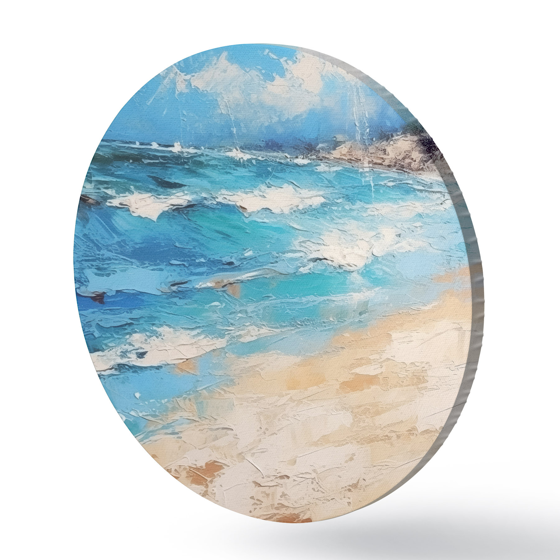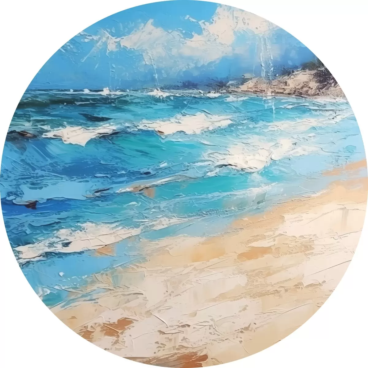 Tableaux ronds Mer, vagues, plage, sable, peinture à l'huile, abstraction, paysage, paysage r38910