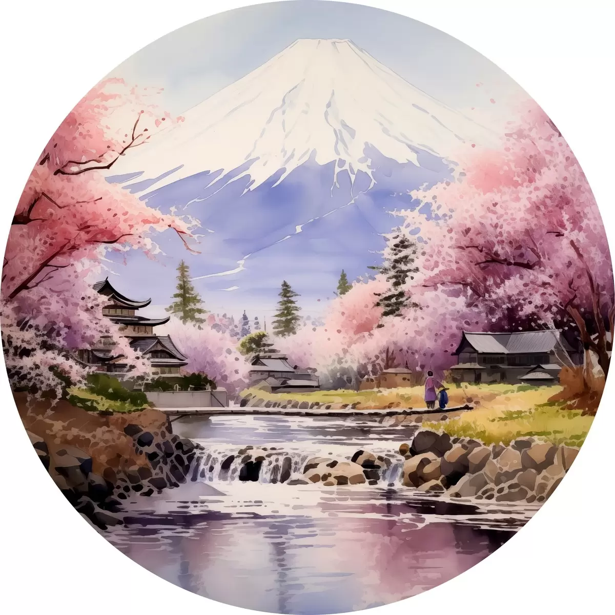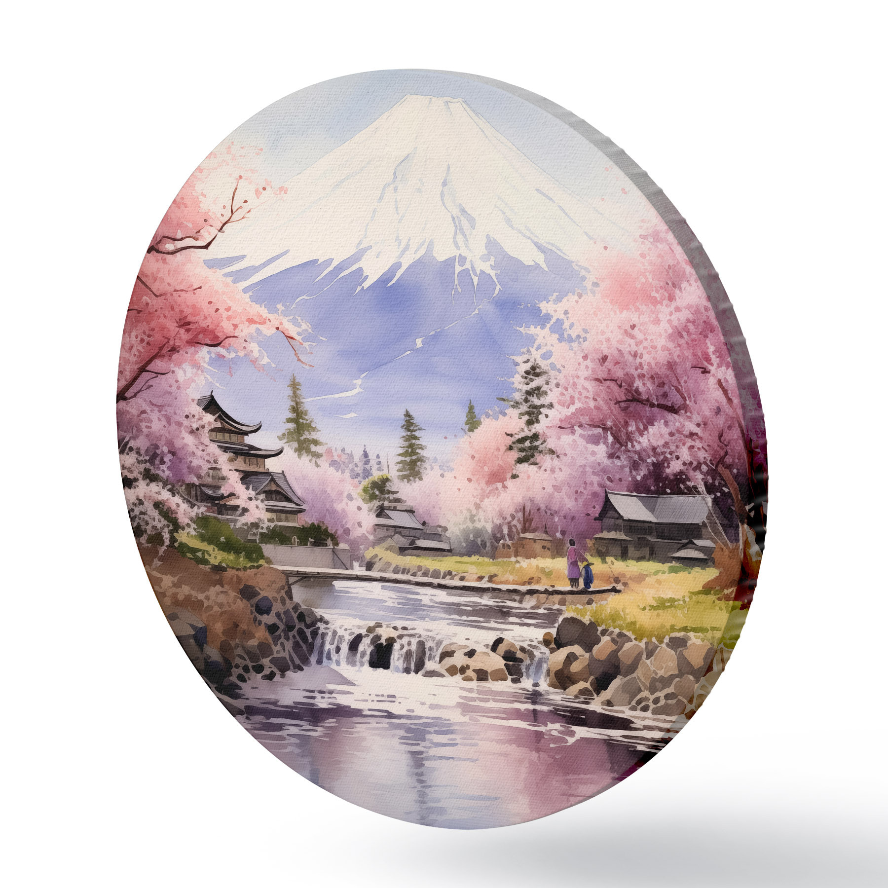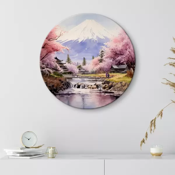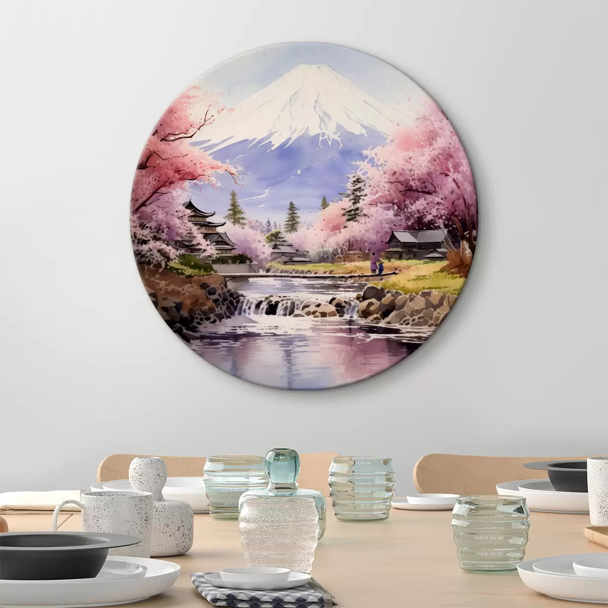 Tableaux ronds Les fleurs de sakura encadrent la sérénité du Fuji r38948