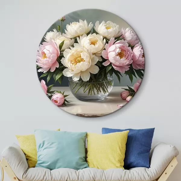 Tableaux ronds Vase avec pivoines blanches et roses r38967