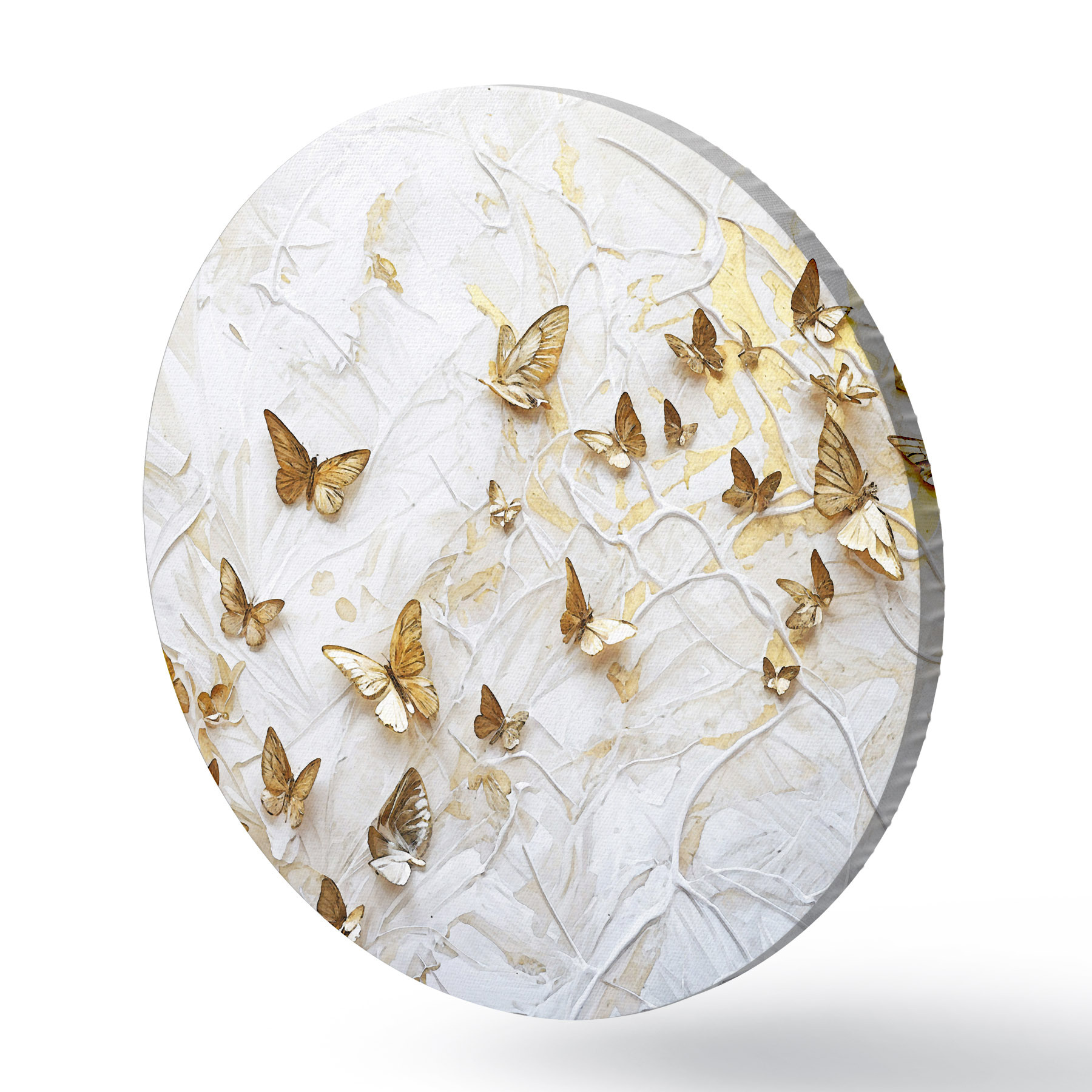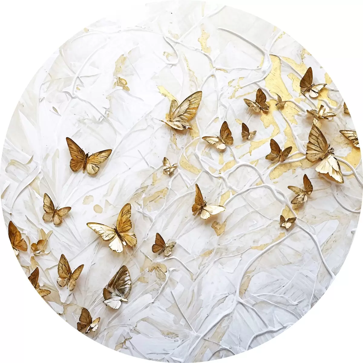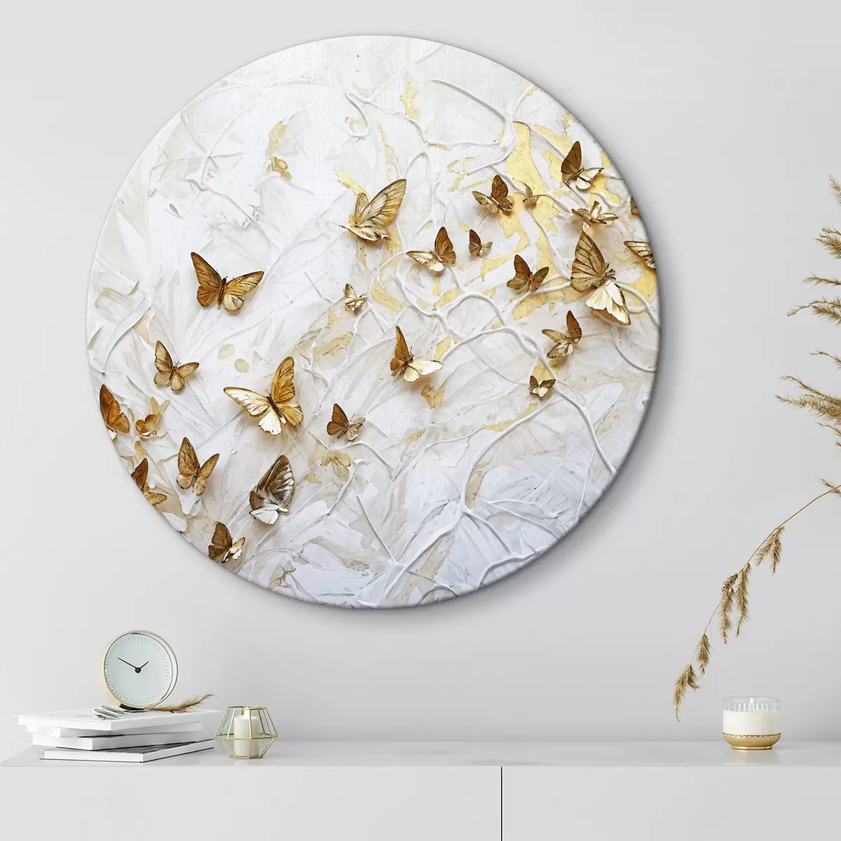 Tableaux ronds Un grand groupe de papillons sur un fond blanc, créant un motif magnifique et complexe r38970