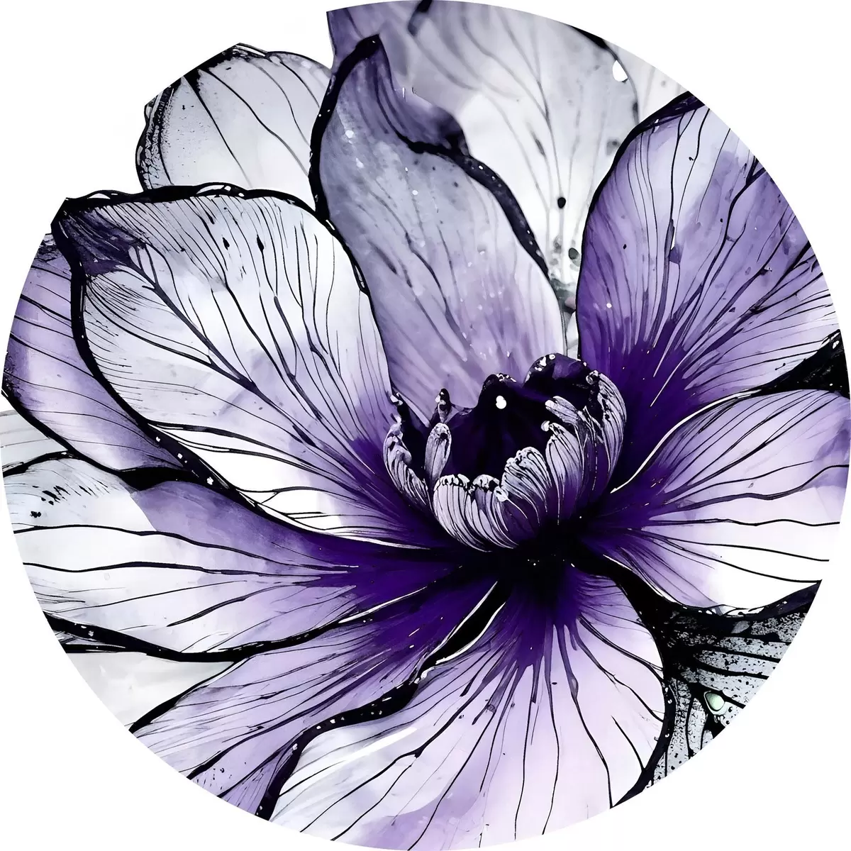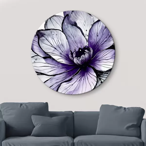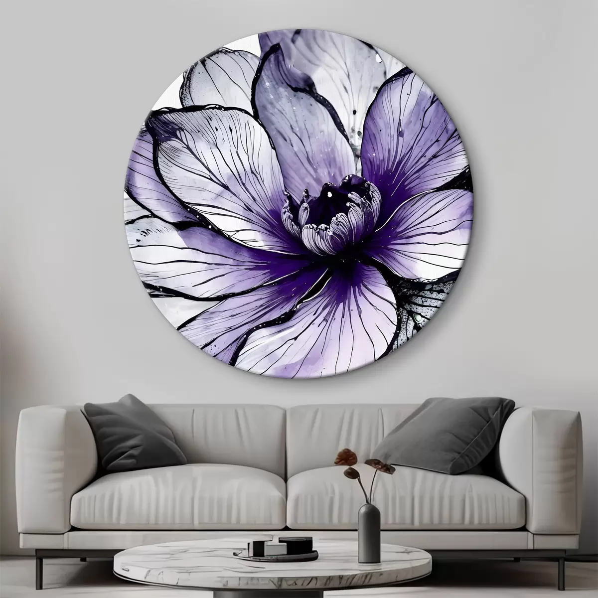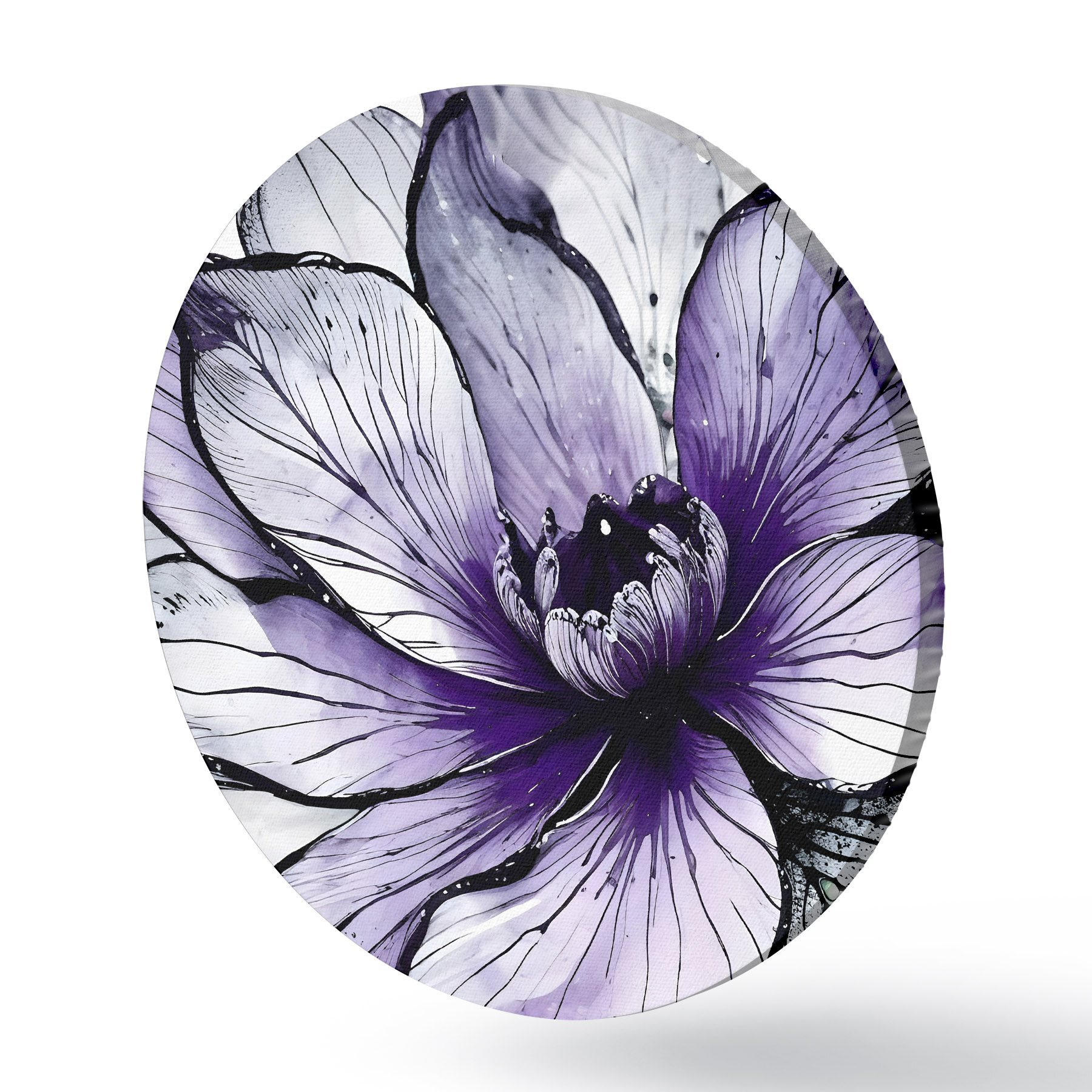 Tableaux ronds Une grande fleur violette vibrante avec des pétales délicats et complexes sur un fond sombre r38982