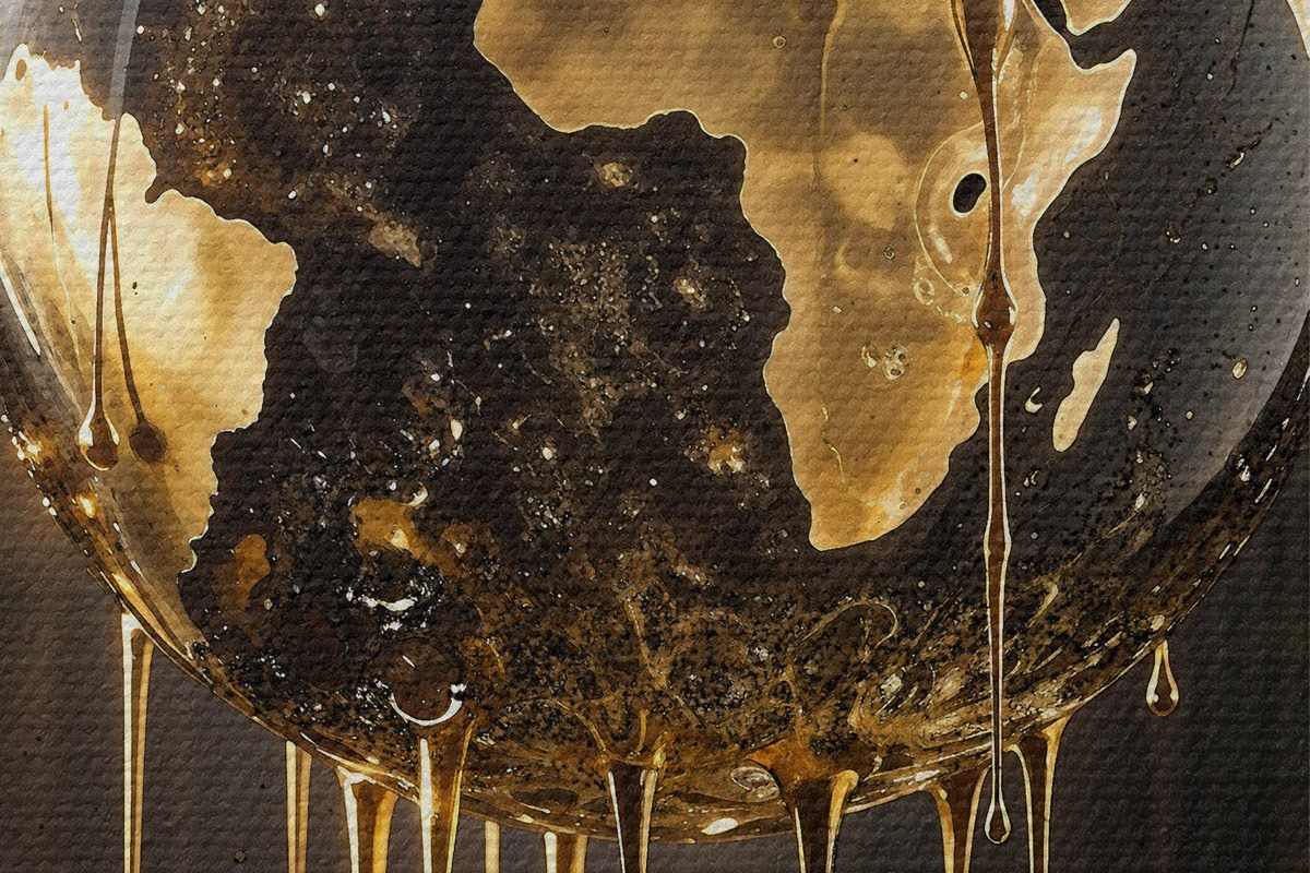 Image Un globe lumineux représentant la Terre entourée d'un liquide qui coule sur un fond sombre Nr r38983