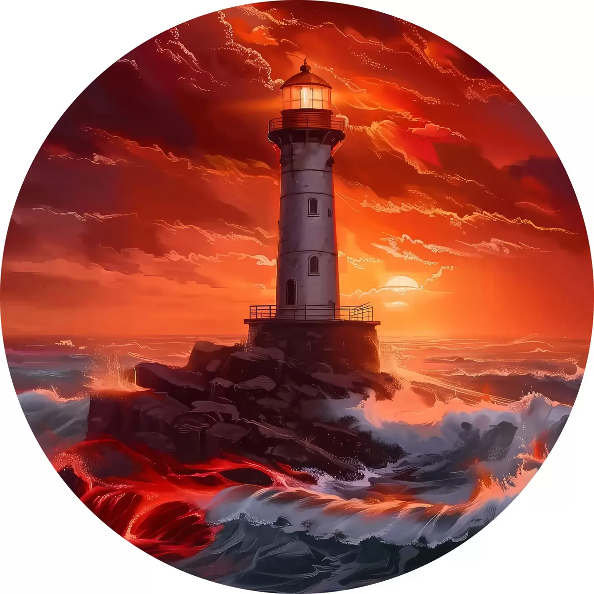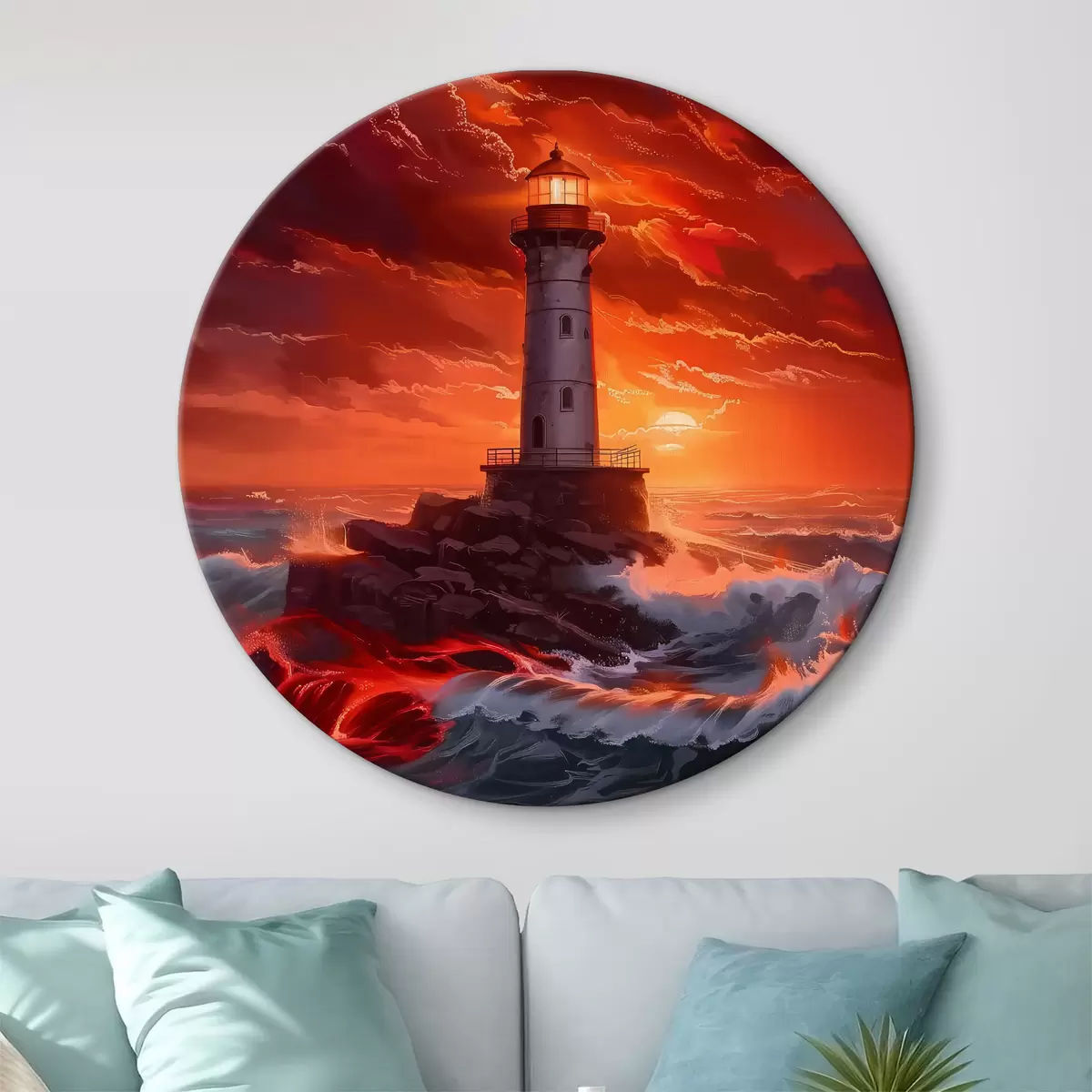 Tableaux ronds Tempête autour du phare r39050