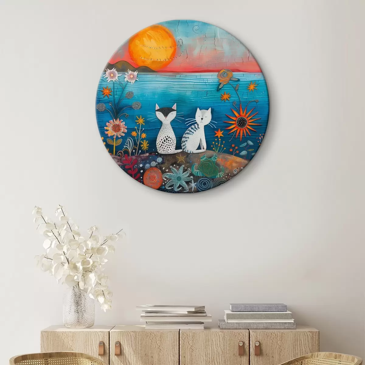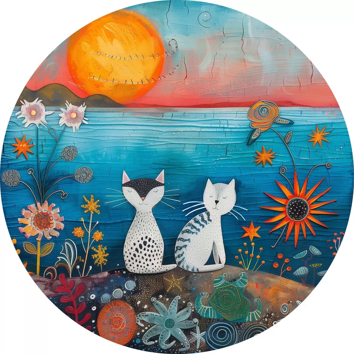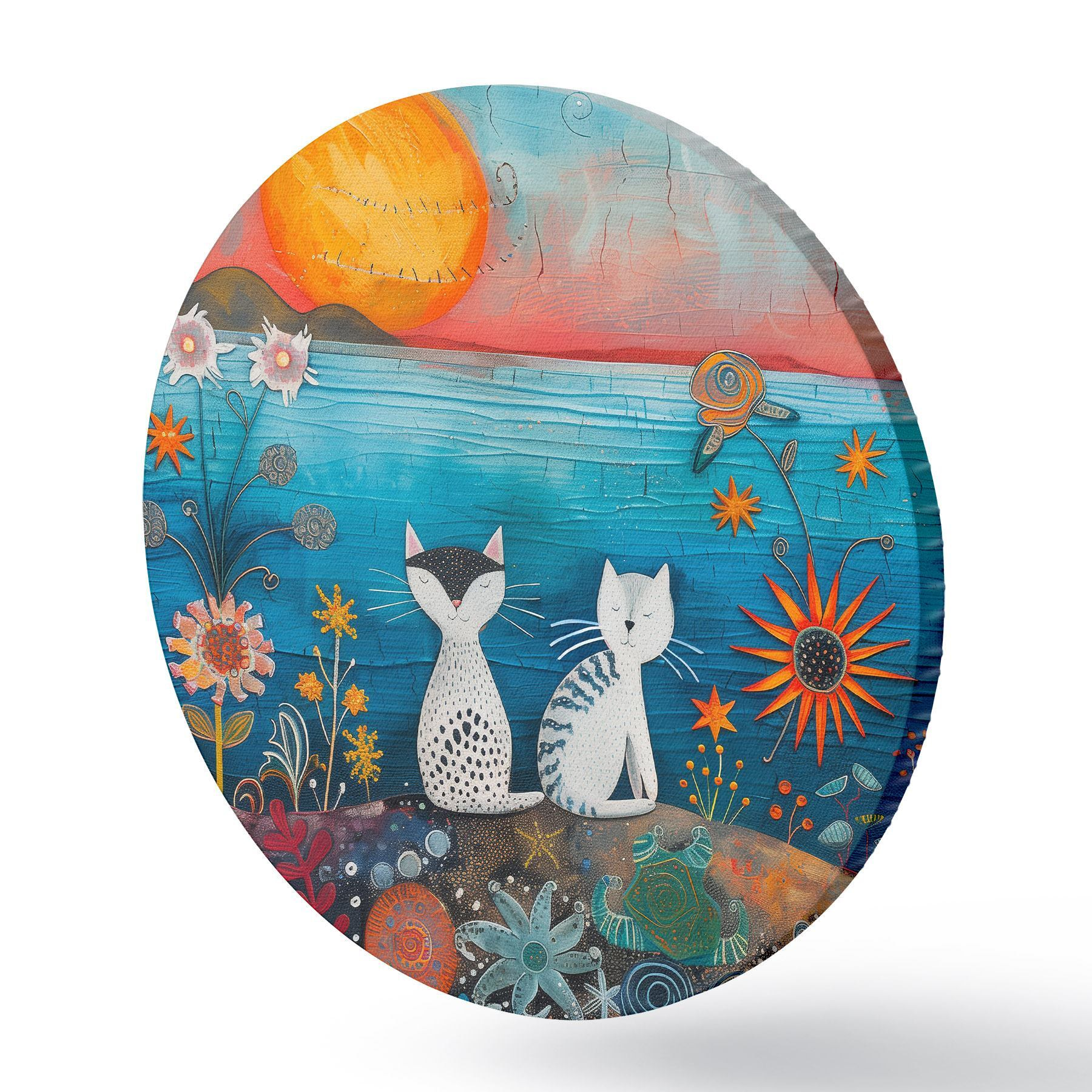Tableaux ronds Deux chats regardant le lever du soleil r39085