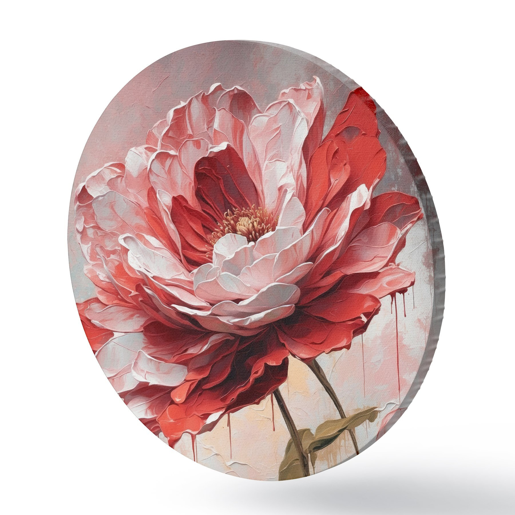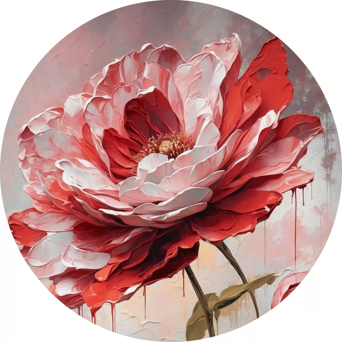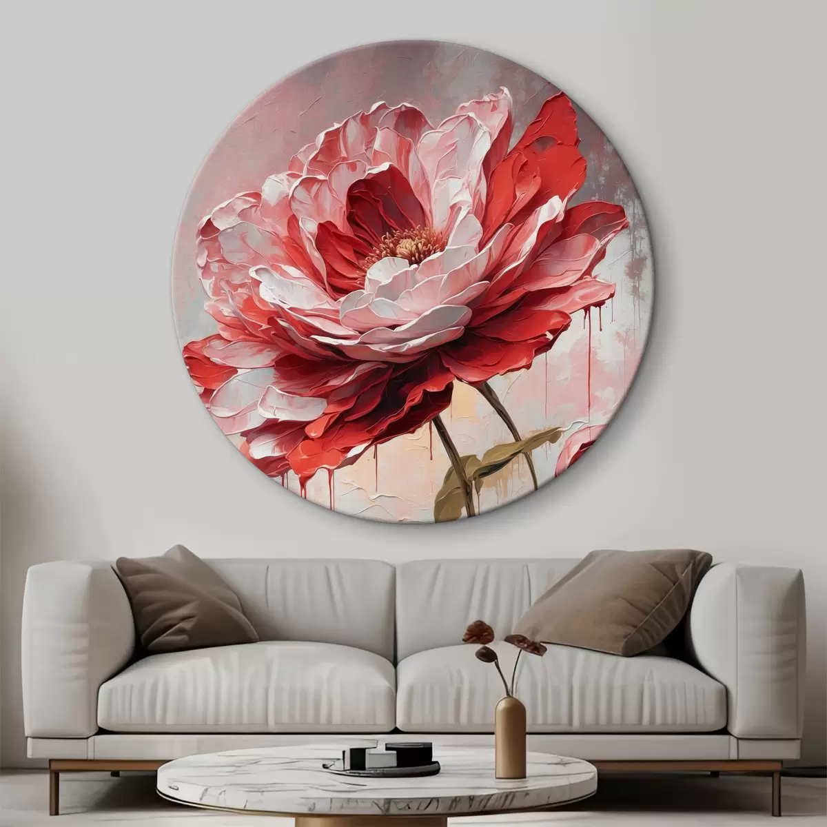 Tableaux ronds Fleur rouge sur fond blanc-gris r39173