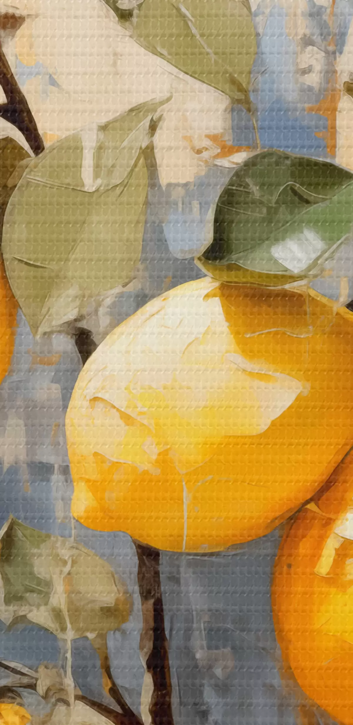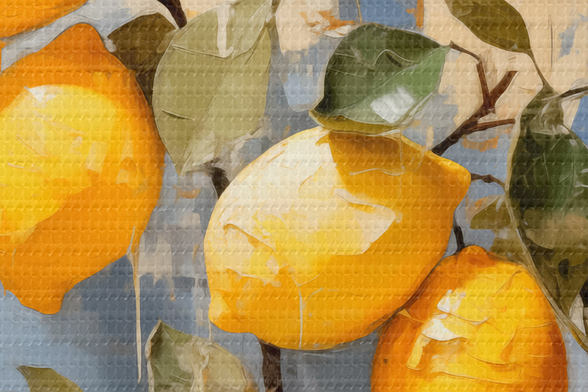 Image Branche avec des citrons mûrs peinture à l'huile art abstrait, couleur jaune, bleue et verte Nr r39186
