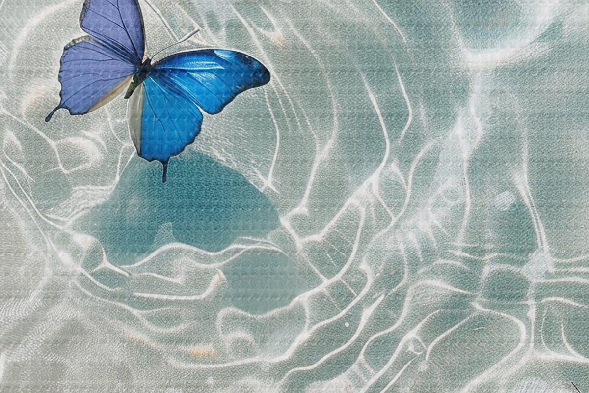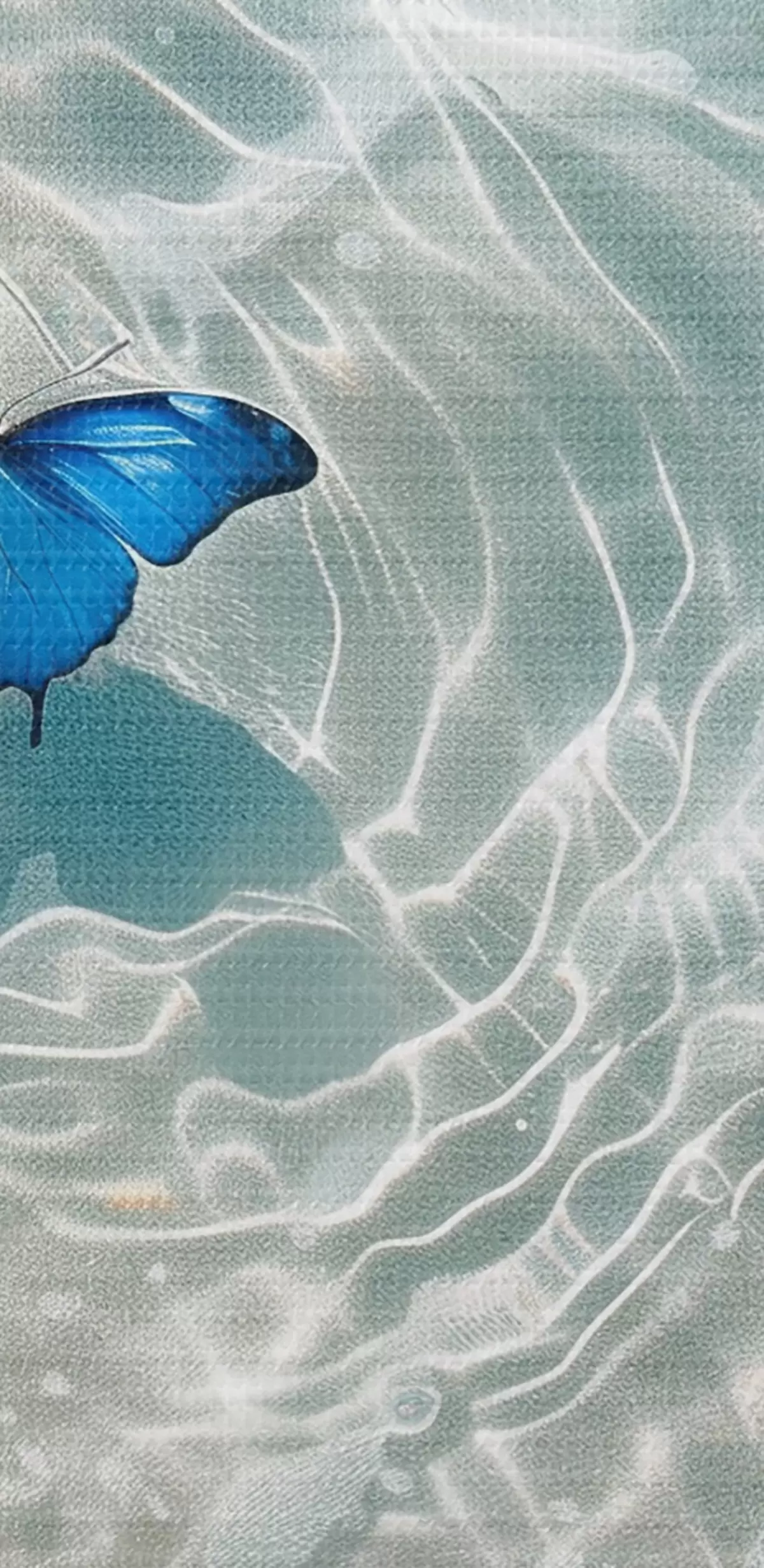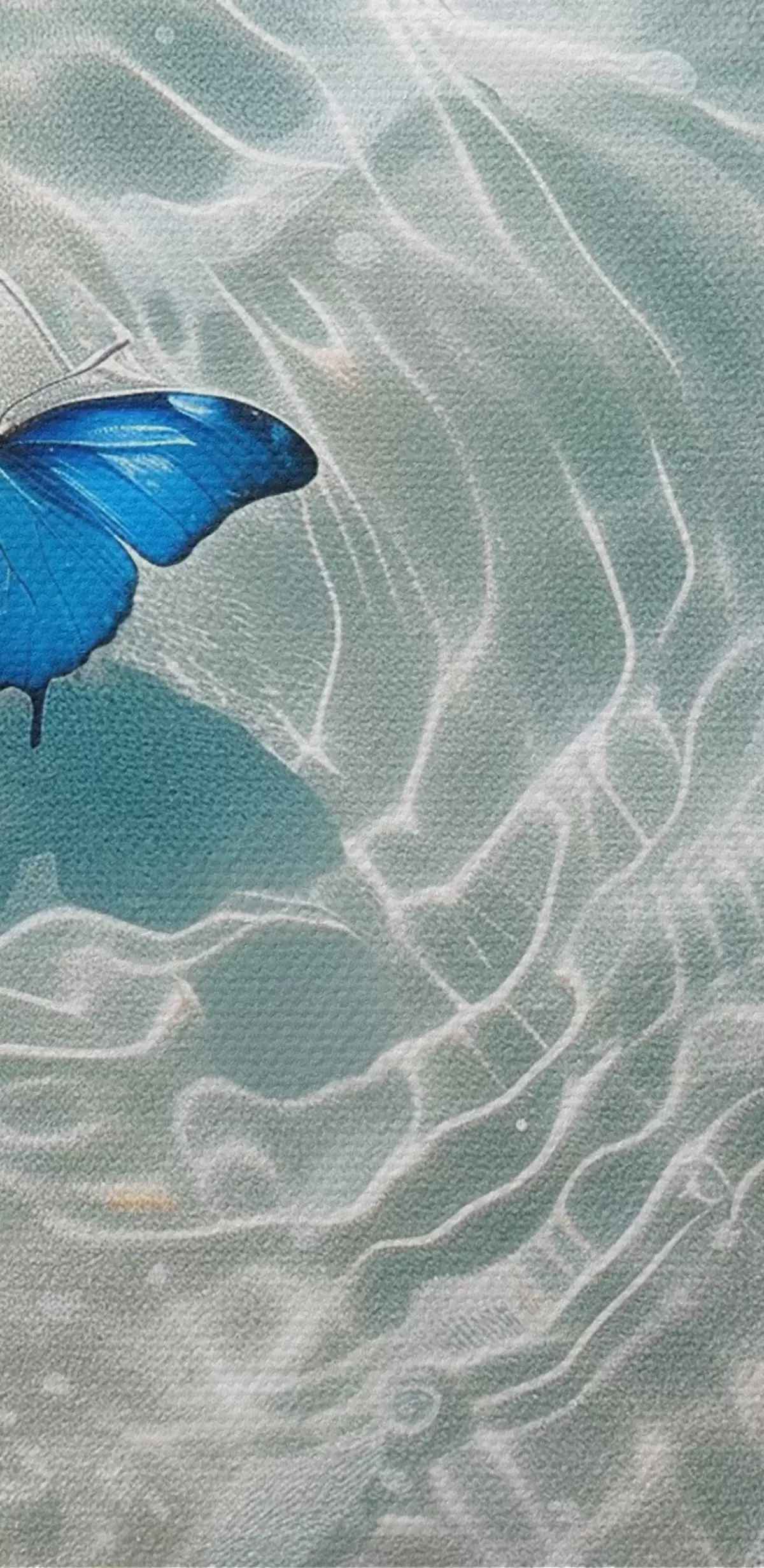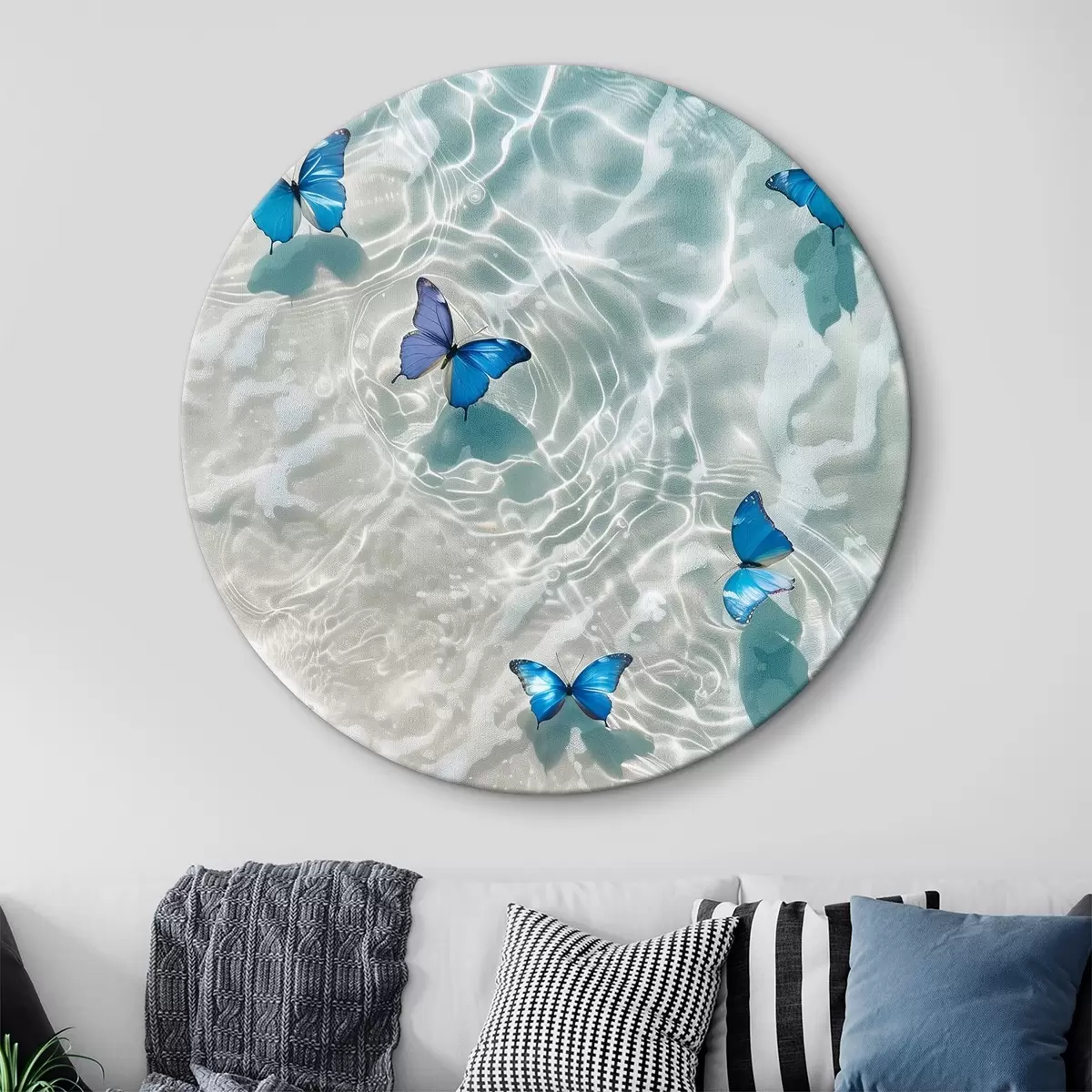 Tableaux ronds Papillons bleus sur une vague de mer r39228