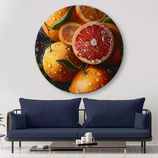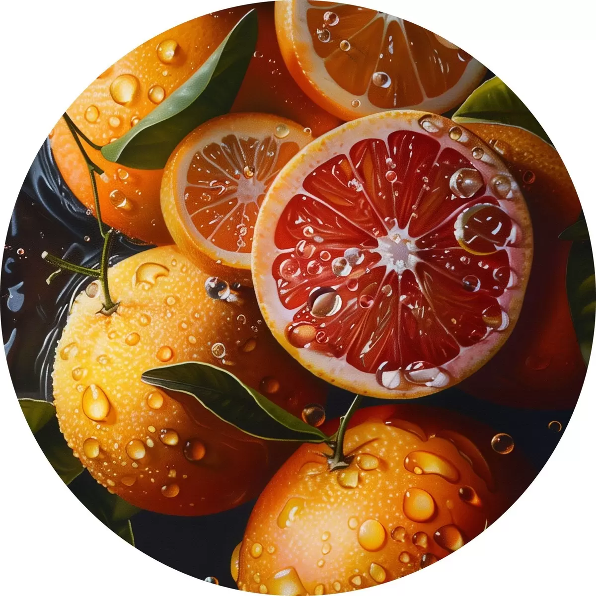 Tableaux ronds Oranges et pamplemousses sur fond sombre r39238