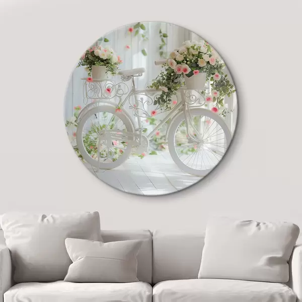 Tableaux ronds Vélo blanc avec un panier de fleurs de style provençal r39243