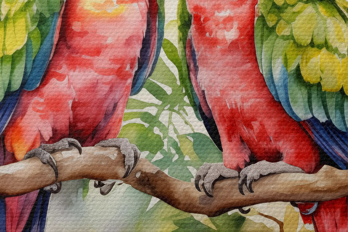 Image Deux perroquets aras brillants assis sur une aquarelle de branche Nr r39333