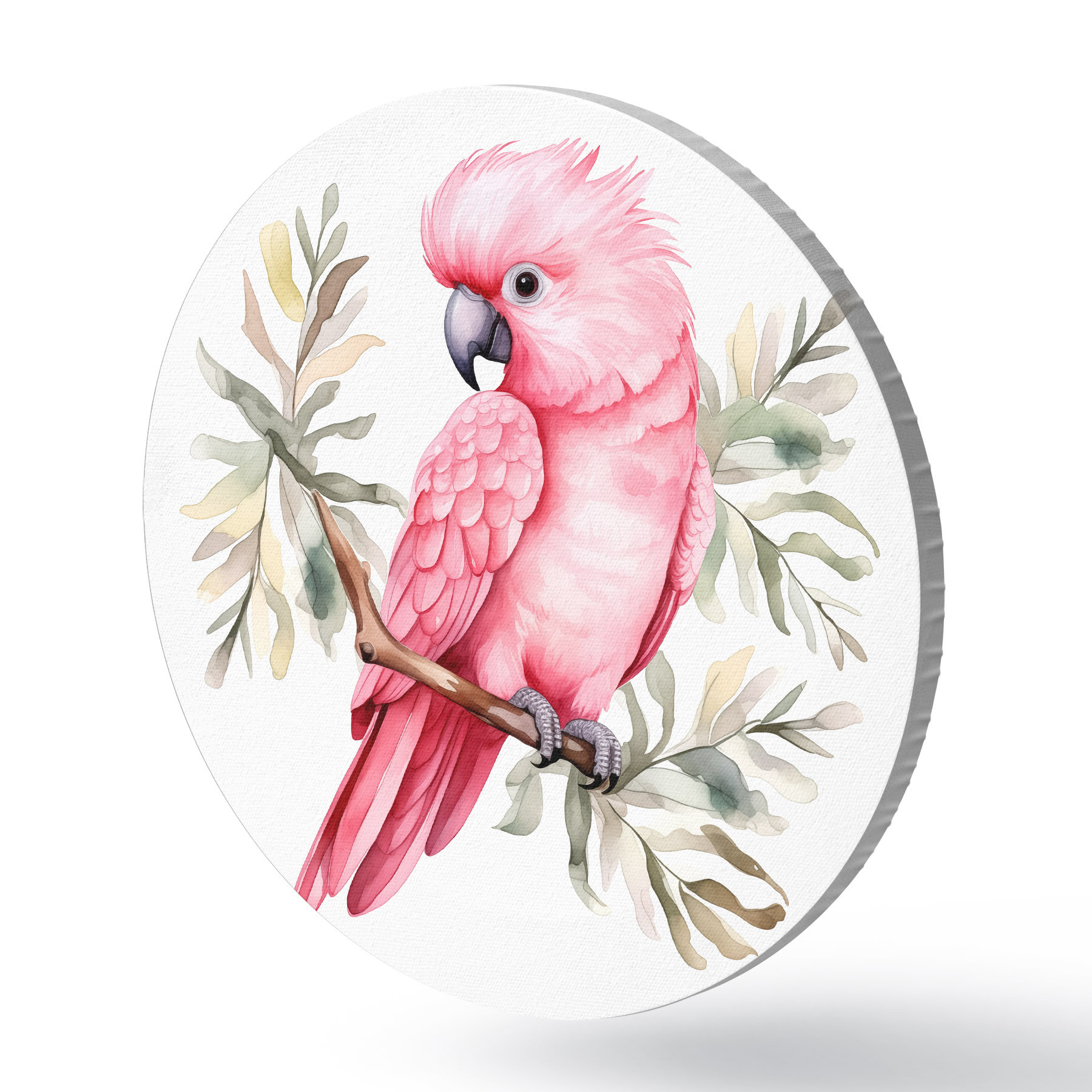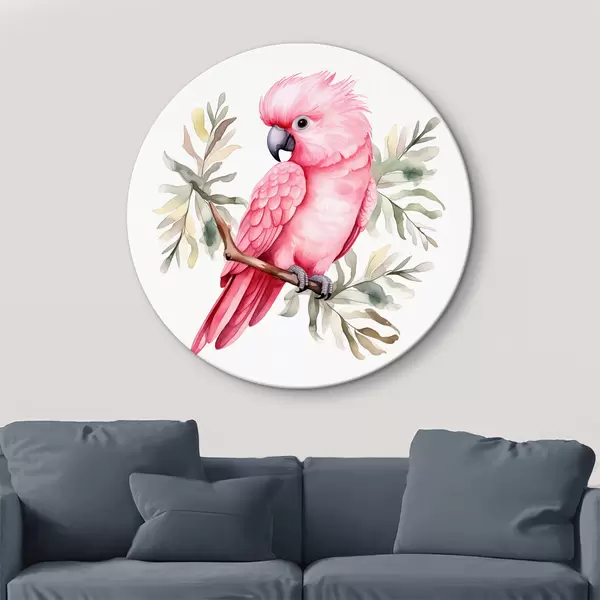 Tableaux ronds Perroquet cacatoès rose assis sur une aquarelle de branche r39334