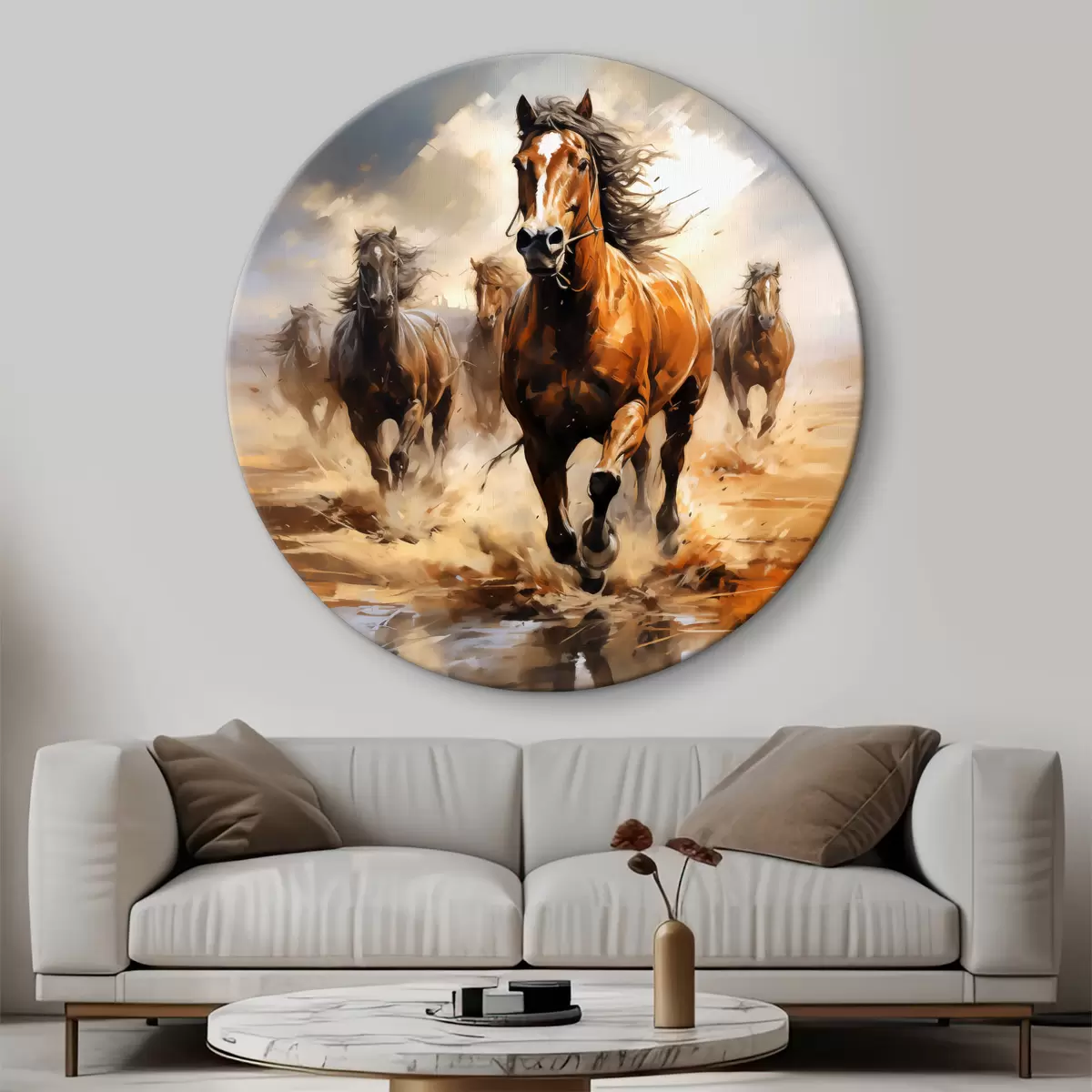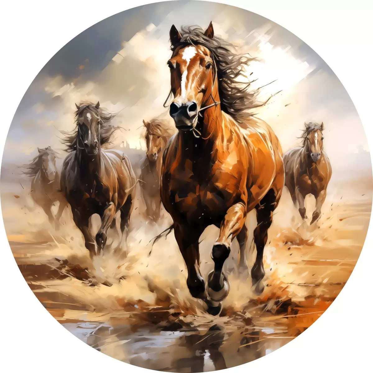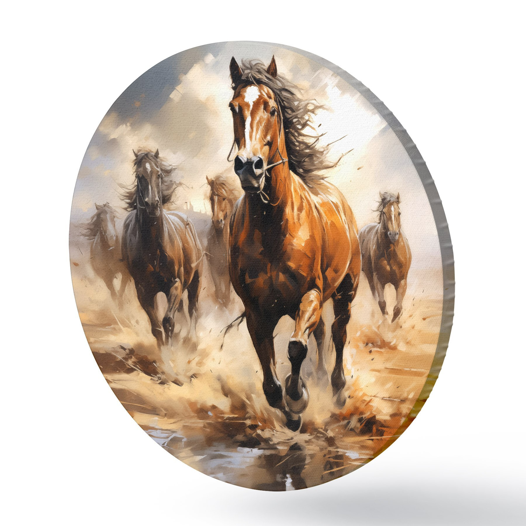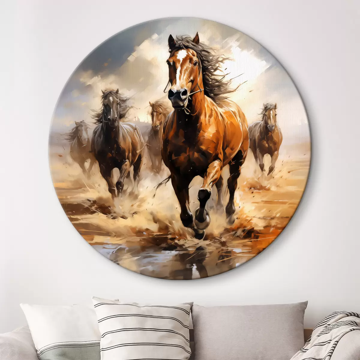 Tableaux ronds Chevaux galopant à travers une peinture à l’huile de prairie r39436