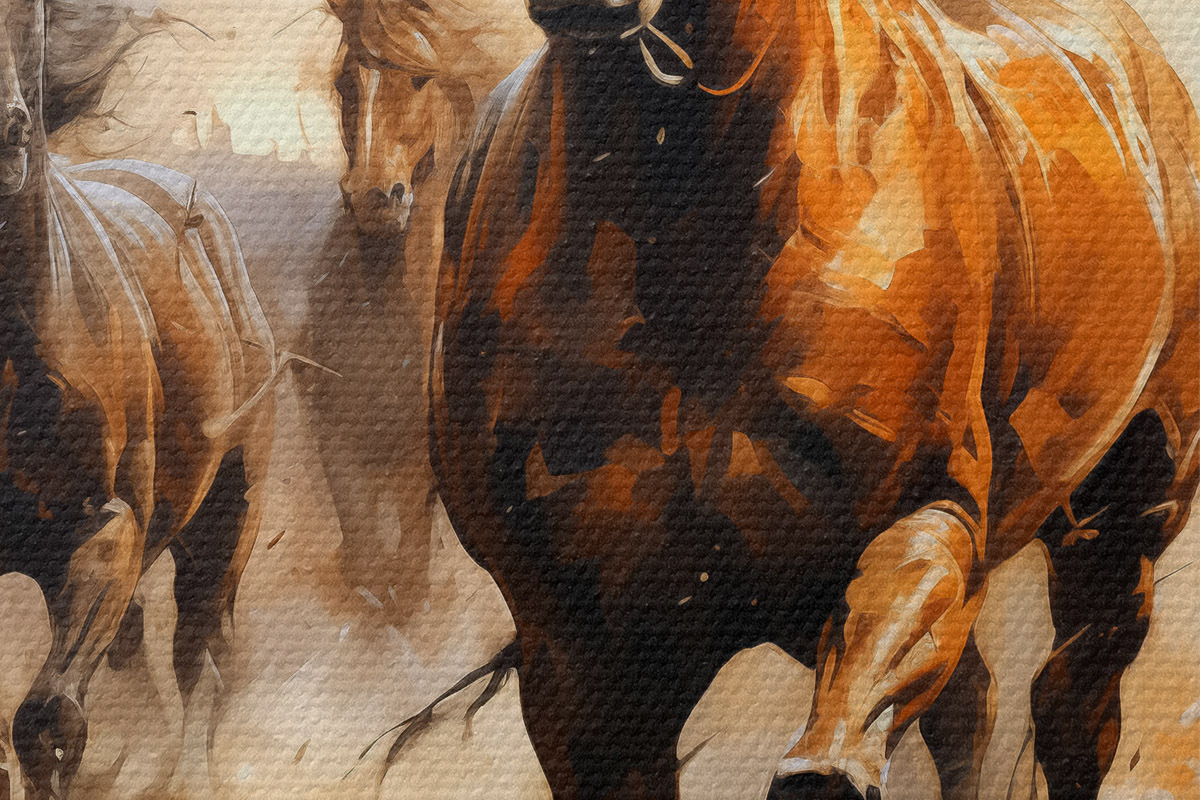 Image Chevaux galopant à travers une peinture à l’huile de prairie Nr r39436