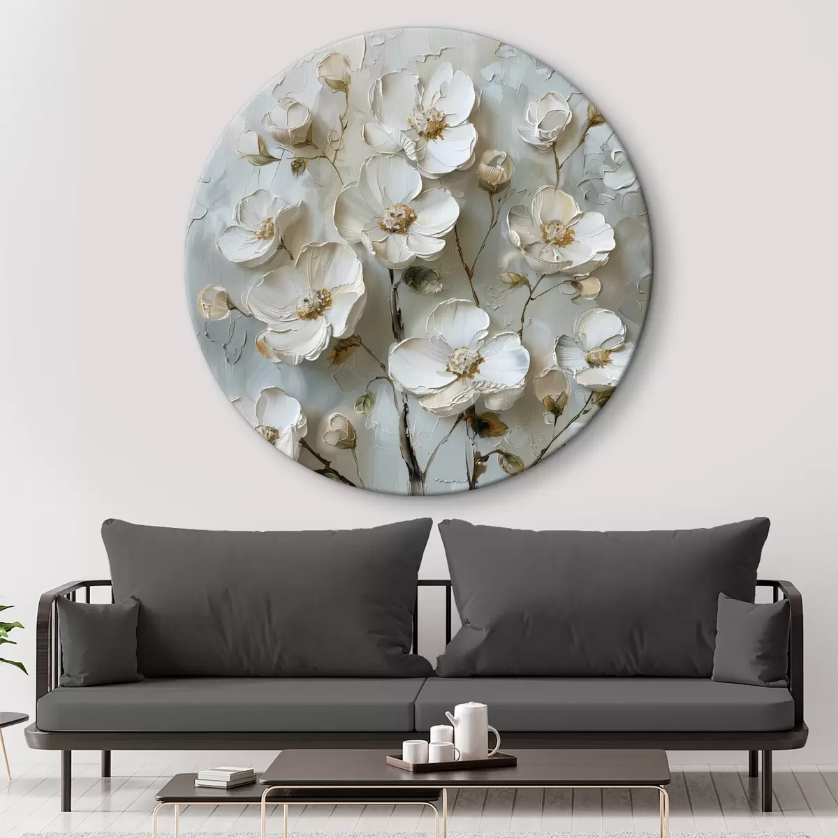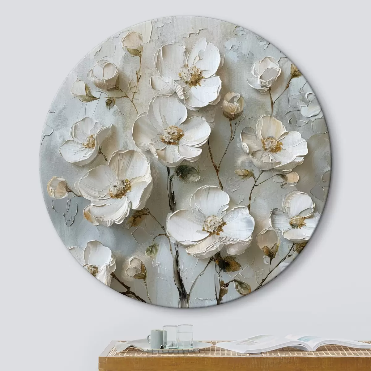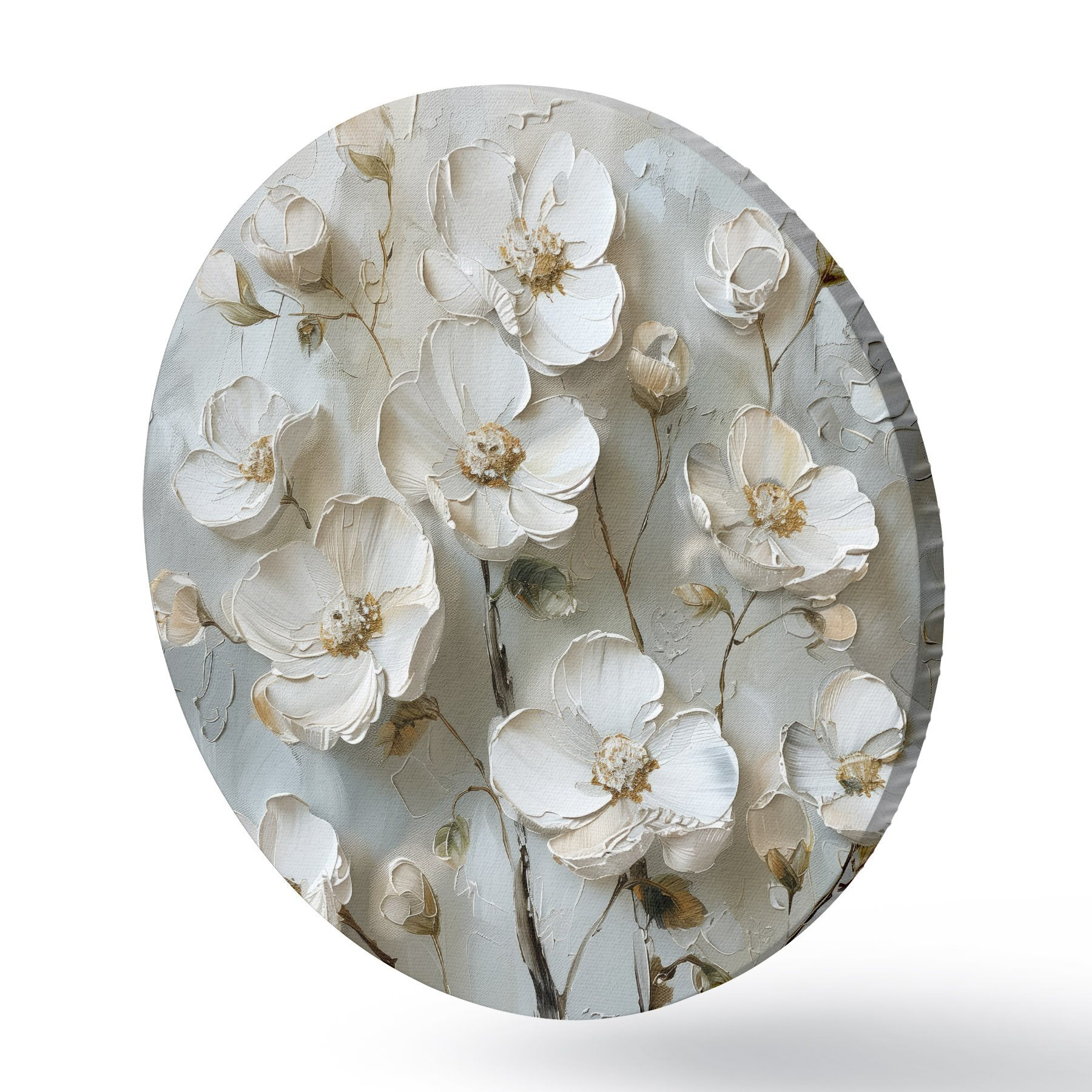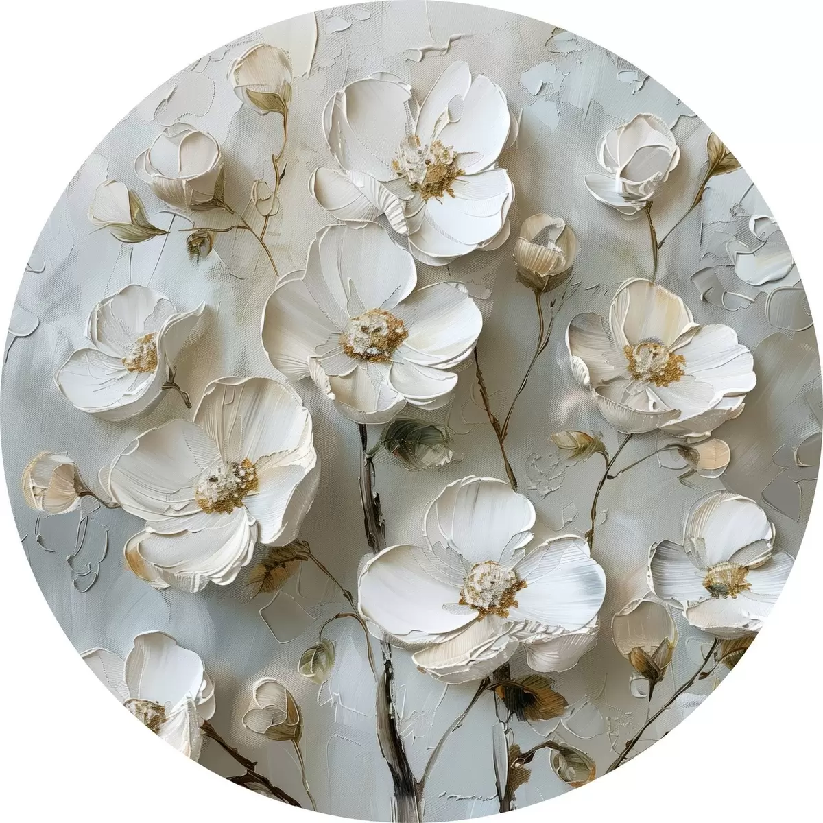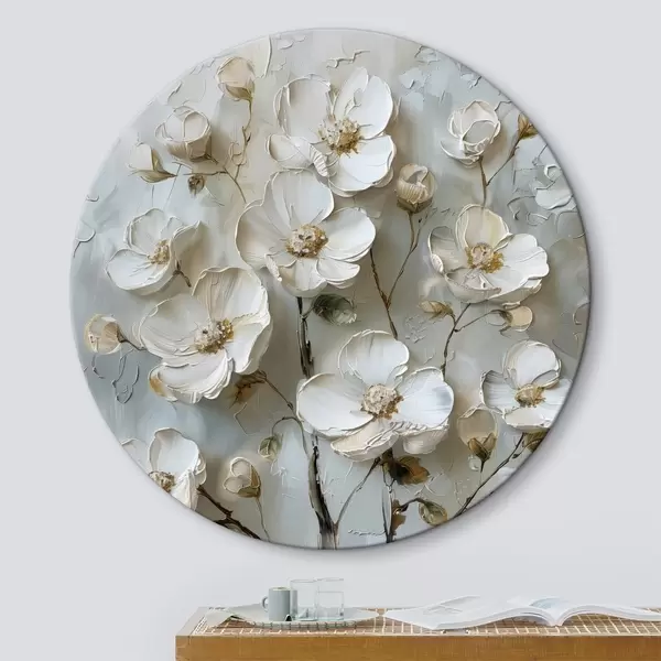 Tableaux ronds fleurs blanches r39442