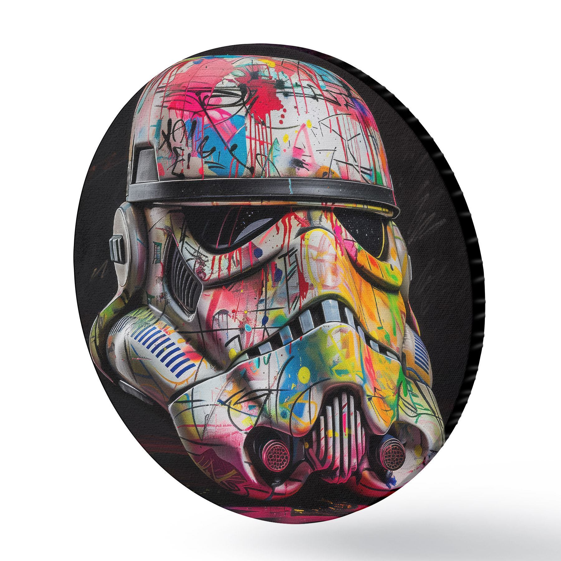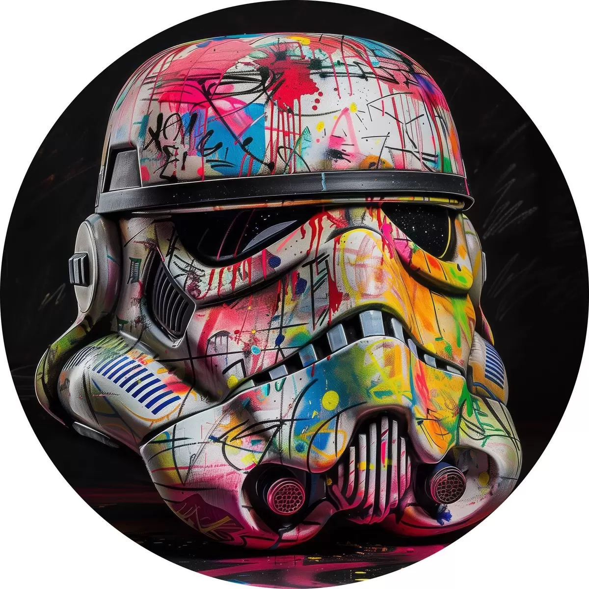 Tableaux ronds Un casque de stormtrooper Star Wars couvert de street art et de graffitis vibrants r39453