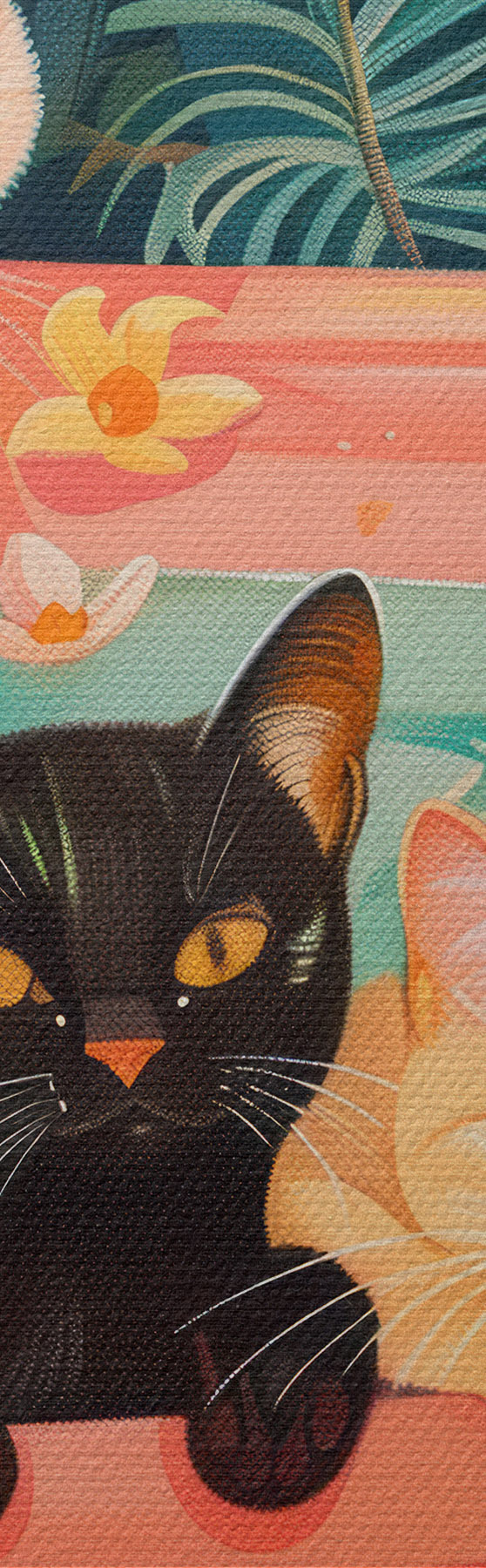 Trois types de matériaux peuvent être commandés : Economic Canvas - matériau dense et durable pour l'impression numérique, identique à la toile de peintre, surface imperméable, reproduction réaliste des détails, matériau à grain moyen. Premium Canvas - la texture ressemble à celle d'une toile de peintre (petits fils entrelacés). Reproduction douce et détaillée de l'image sur une surface mate. Eco-Premium - tissu 100 % coton de haute qualité. Grâce aux fibres naturelles de coton, le matériau est durable et résistant à l'usure. Excellente reproduction des couleurs et des détails.